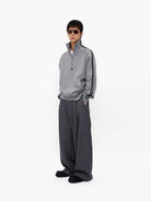Elevate your everyday style with these classic men's high-waisted trousers. Featuring pleated detailing and a wide-leg, curved silhouette, these trousers offer a relaxed and contemporary fit. Crafted from structured fabric, they provide a smooth drape that extends over the shoes, creating a clean, elongated look.
