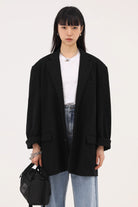 Elevate your seasonal wardrobe with this men's lightweight knitted blazer, designed for spring and autumn wear. Featuring a relaxed, draped silhouette and a loose fit, this versatile blazer offers both comfort and modern style. The notched lapel and front flap pockets add a classic touch, while the soft knit fabric ensures all-day ease. Perfect for casual yet polished looks.
