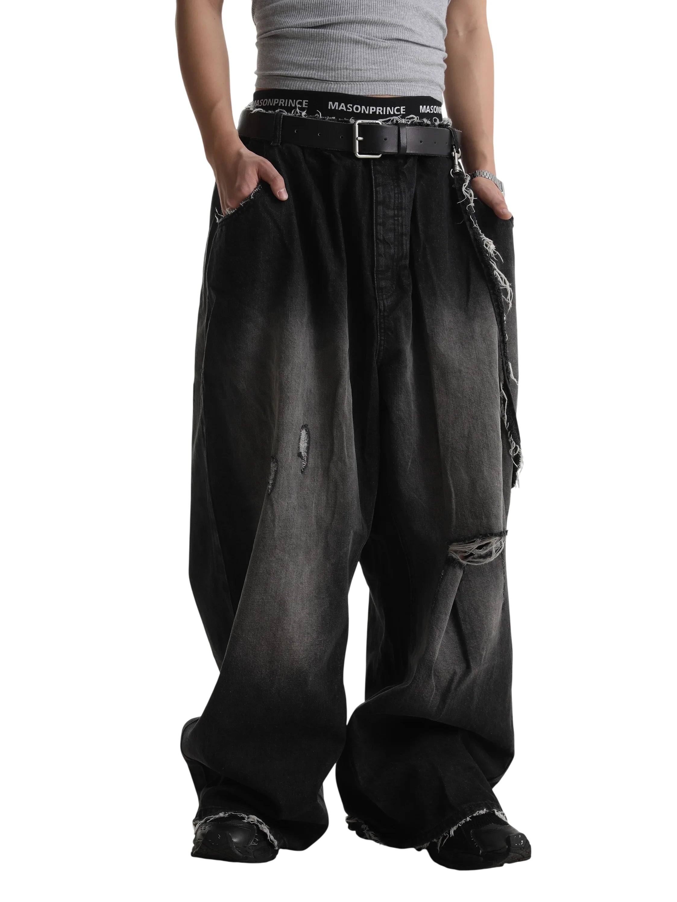 MASONPRINCE Men's Loose Fit Ripped Jeans with Elastic Waist – Lightweight for Spring and Summer