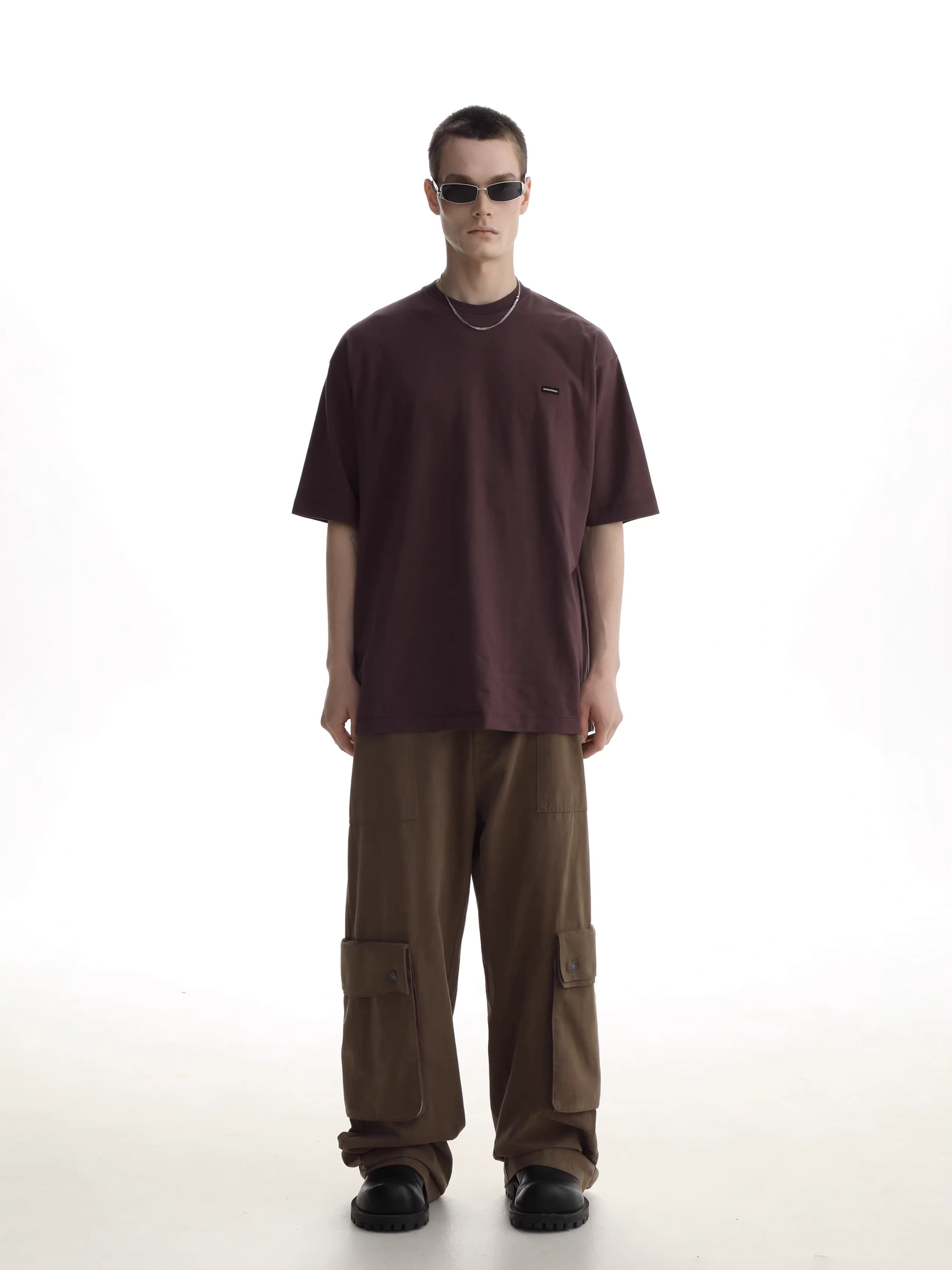 Stay comfortable and stylish with this men's loose fit short sleeve T-shirt, crafted from soft, breathable cotton. Designed in a solid muted gray tone, it features a subtle red chest logo for a touch of casual flair. Ideal for warm weather, its relaxed silhouette ensures all-day ease and versatility, whether worn solo or layered. Perfect for everyday streetwear or laid-back summer outings.