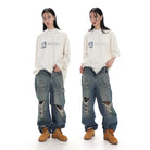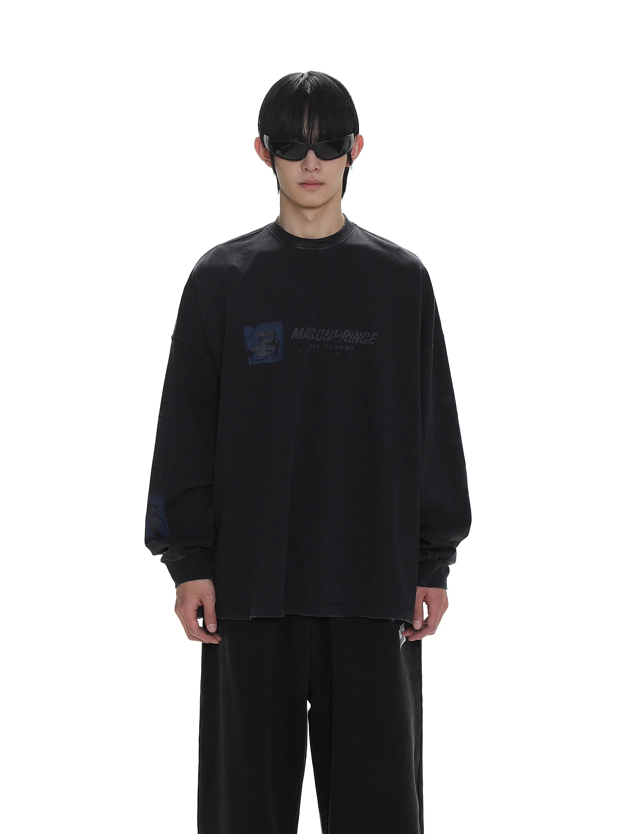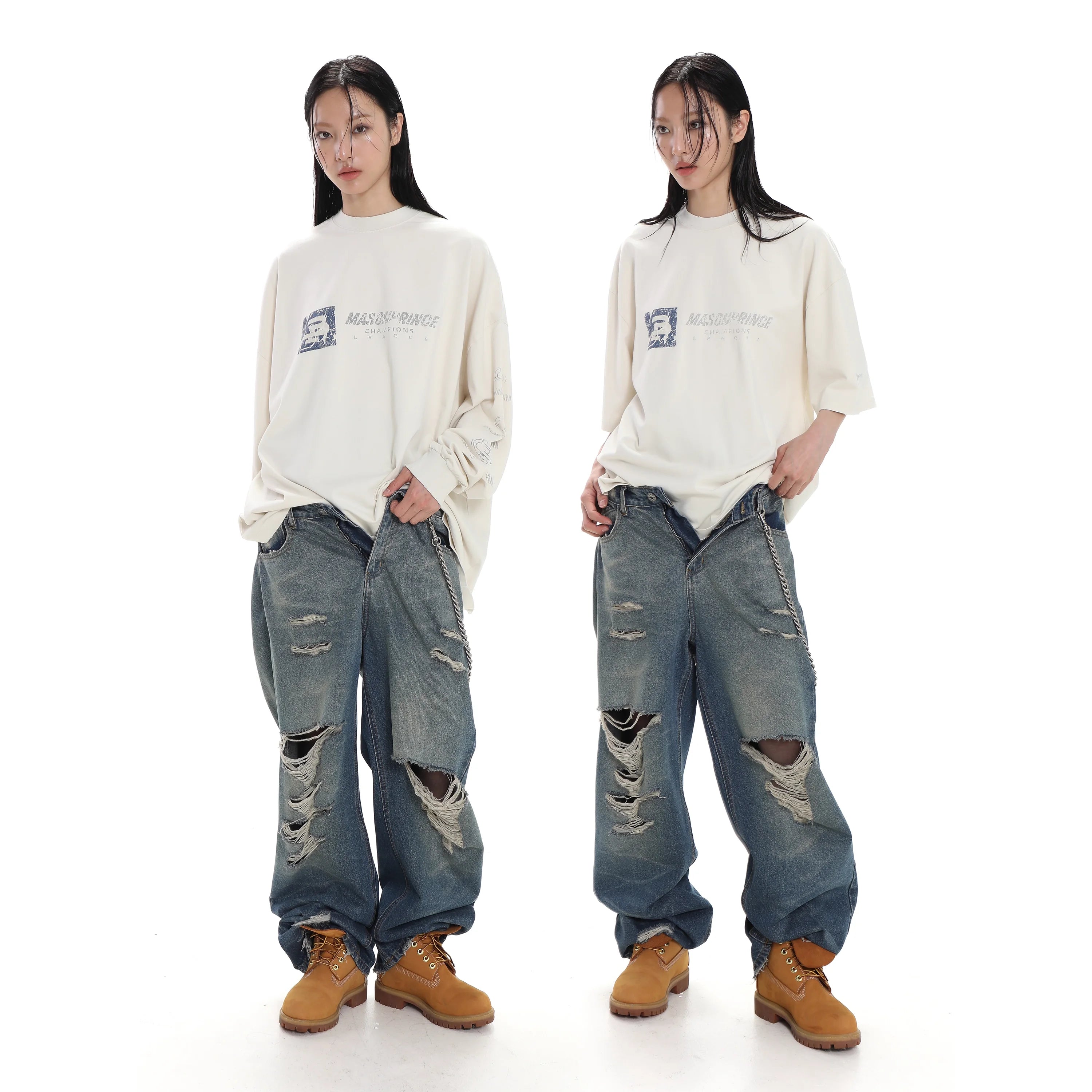 Make a bold streetwear statement with this men's oversized T-shirt featuring a distinctive crack print and barcode-inspired graphic design. Available in both short and long sleeve options, this casual piece delivers a relaxed fit perfect for everyday wear. Styled here with distressed denim, a chain accessory, and rugged boots, it captures an edgy urban aesthetic suited for contemporary fashion.