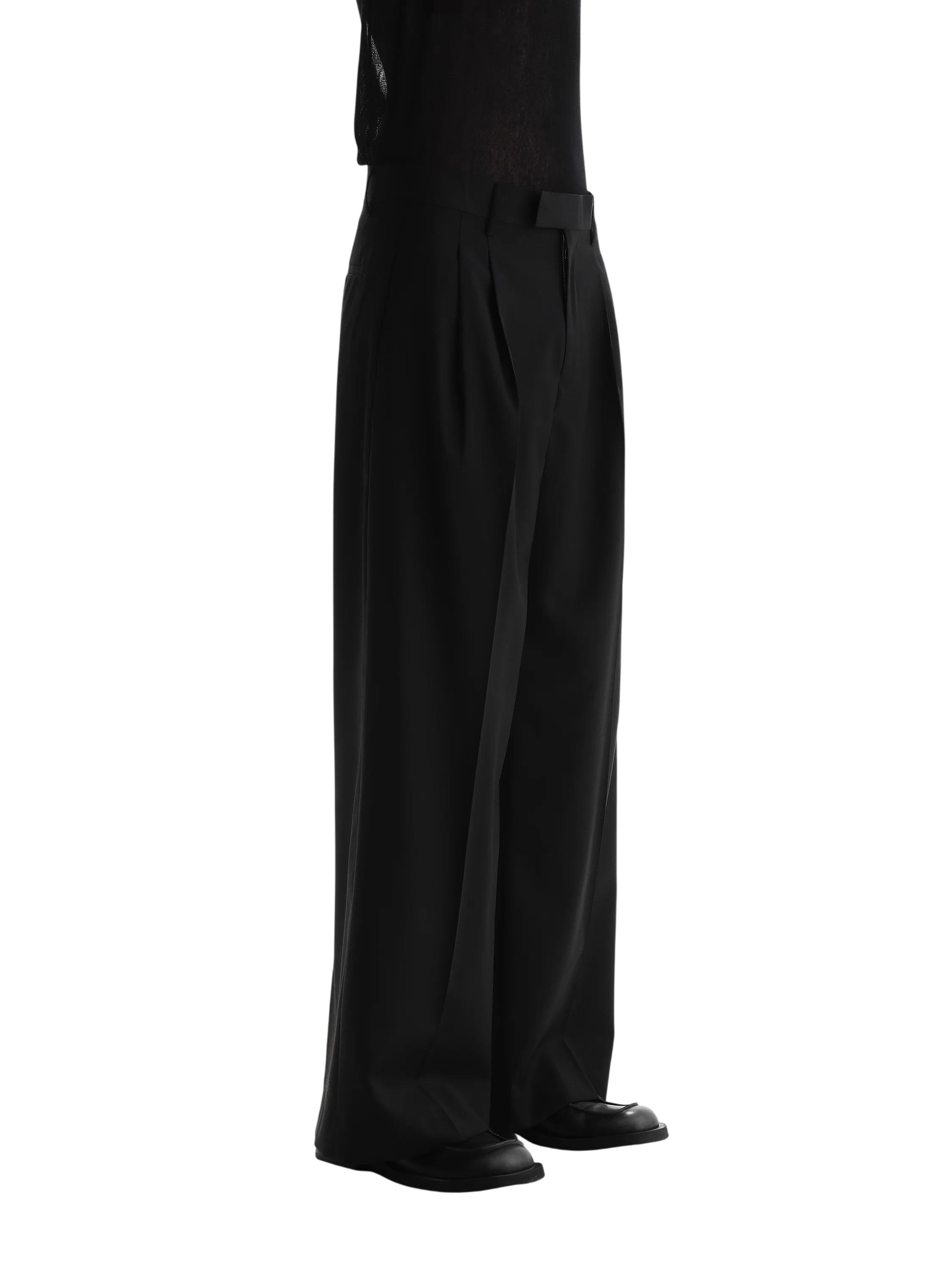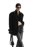 Elevate your wardrobe with this contemporary two-piece suit set designed for men. The ensemble features a high-end oversized blazer paired with matching wide-legged trousers, offering a bold and fashion-forward silhouette. A black shirt with visible branding adds a streetwear edge, while dark sunglasses and a chunky metallic necklace enhance the modern appeal. Completed with sleek black shoes, this outfit is ideal for those seeking a minimalist yet impactful look. Perfect for high-fashion occasions or editorial styling.