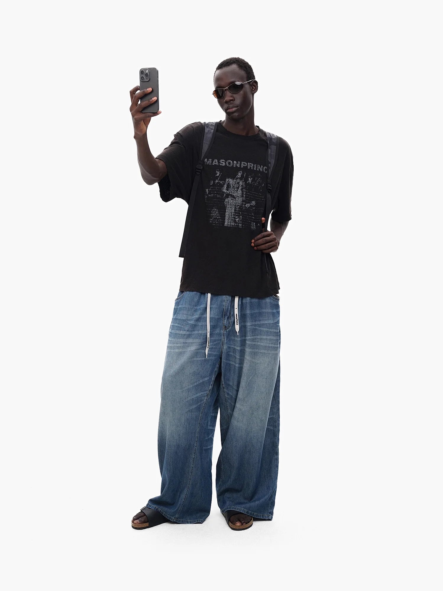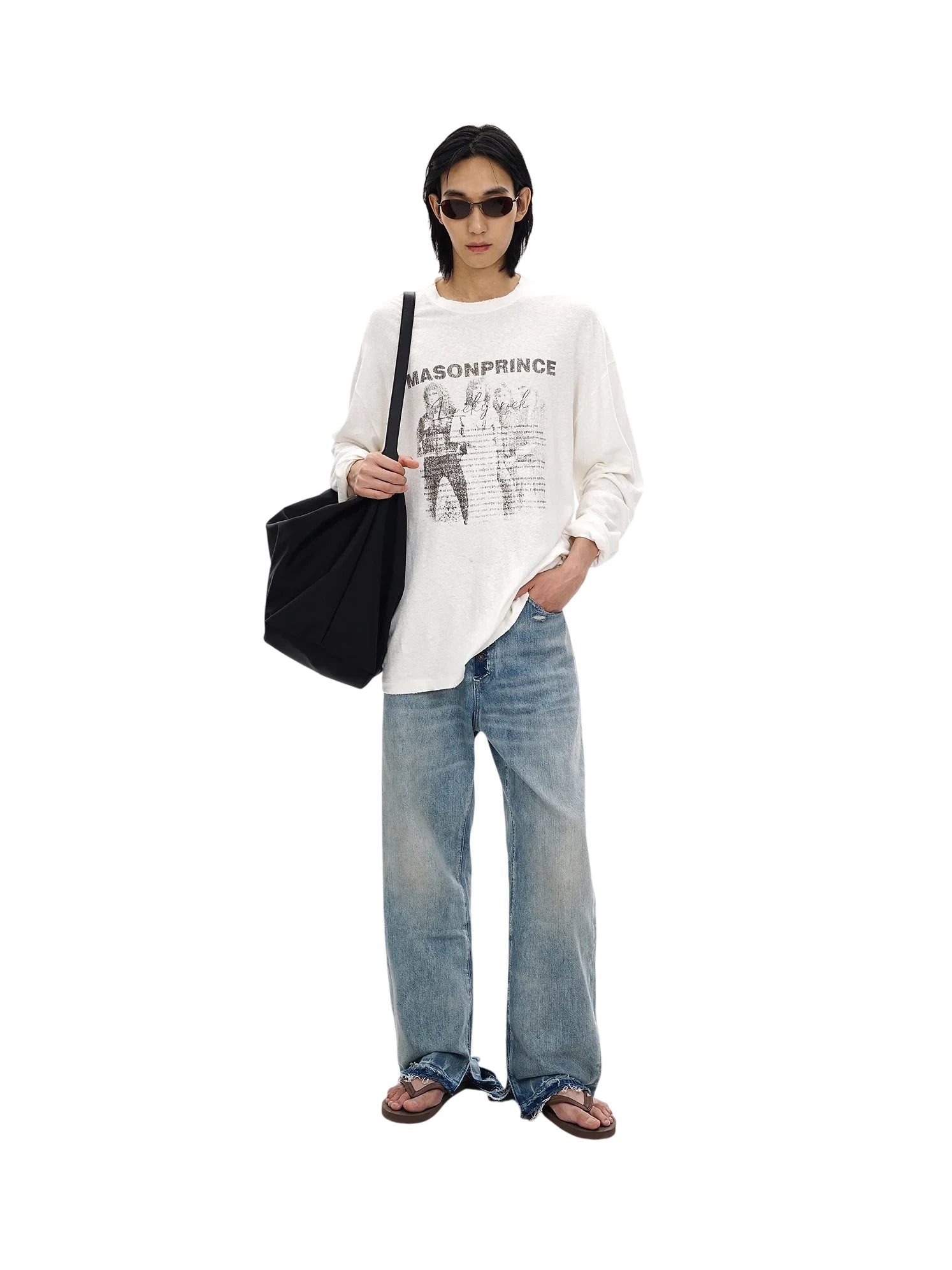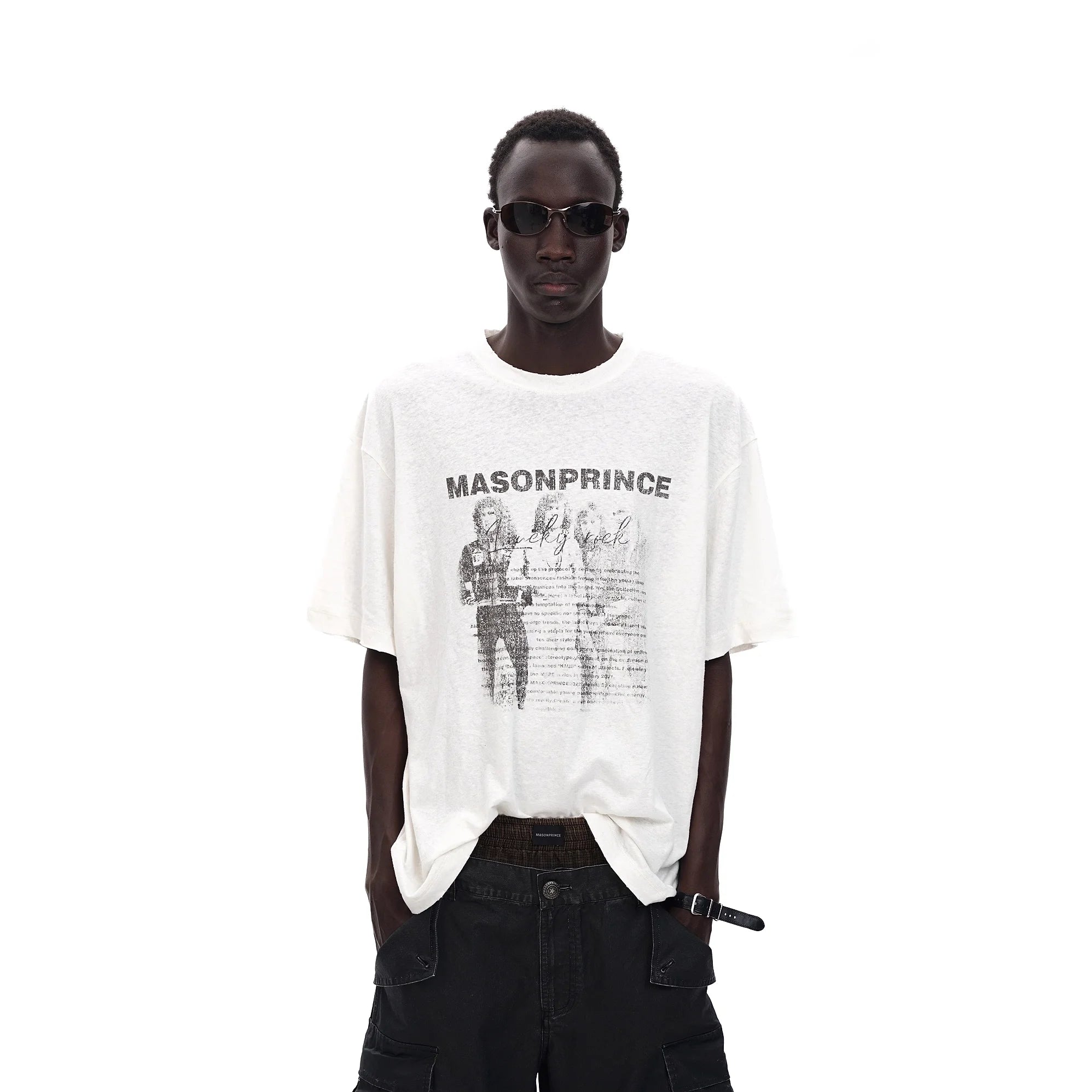 MASONPRINCE Men's Oversized Rock Print Linen Cotton T-Shirt