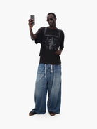 Elevate your streetwear style with this men's oversized T-shirt, crafted from a breathable blend of linen and cotton for ultimate comfort. Featuring a washed texture and a bold artistic rock-inspired graphic, the shirt offers a relaxed fit and short sleeves for a laid-back, contemporary look. Perfectly paired with cargo pants or street-style accessories, this versatile tee adds edge to any casual wardrobe.