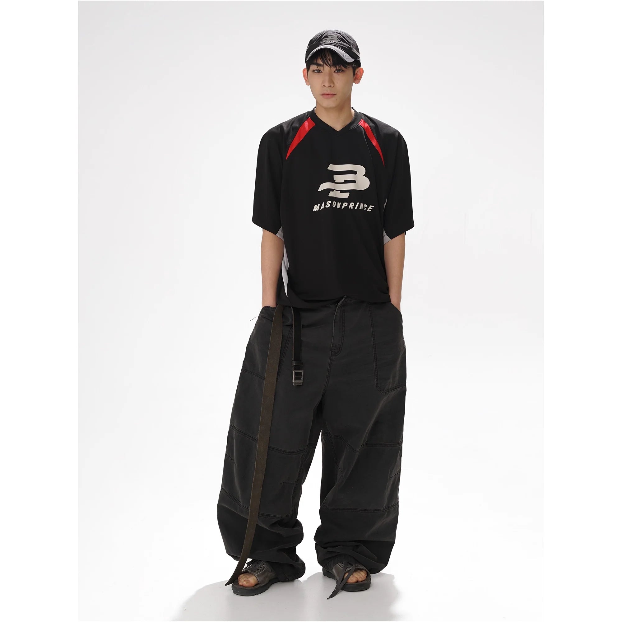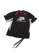 Elevate your athletic wardrobe with this lightweight, quick-dry sports tee designed for men. Featuring a structured V-neck and dynamic colorblock detailing along the shoulders, this shirt blends performance with modern streetwear style. The bold front graphic adds standout appeal, while the short sleeves ensure comfort and breathability—perfect for workouts or casual everyday wear.
