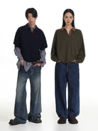 Elevate your wardrobe with this ultra-soft men's retro knit polo sweater, featuring a timeless long-sleeve design. Each sweater showcases a rich color pairing, with contrasting classic collars for a vintage-inspired look. Available in multiple color combinations, these sweaters include ribbed cuffs and a subtle embroidered 'M' logo on the chest for added detail. Stylish and versatile, it's a refined essential for cooler seasons.