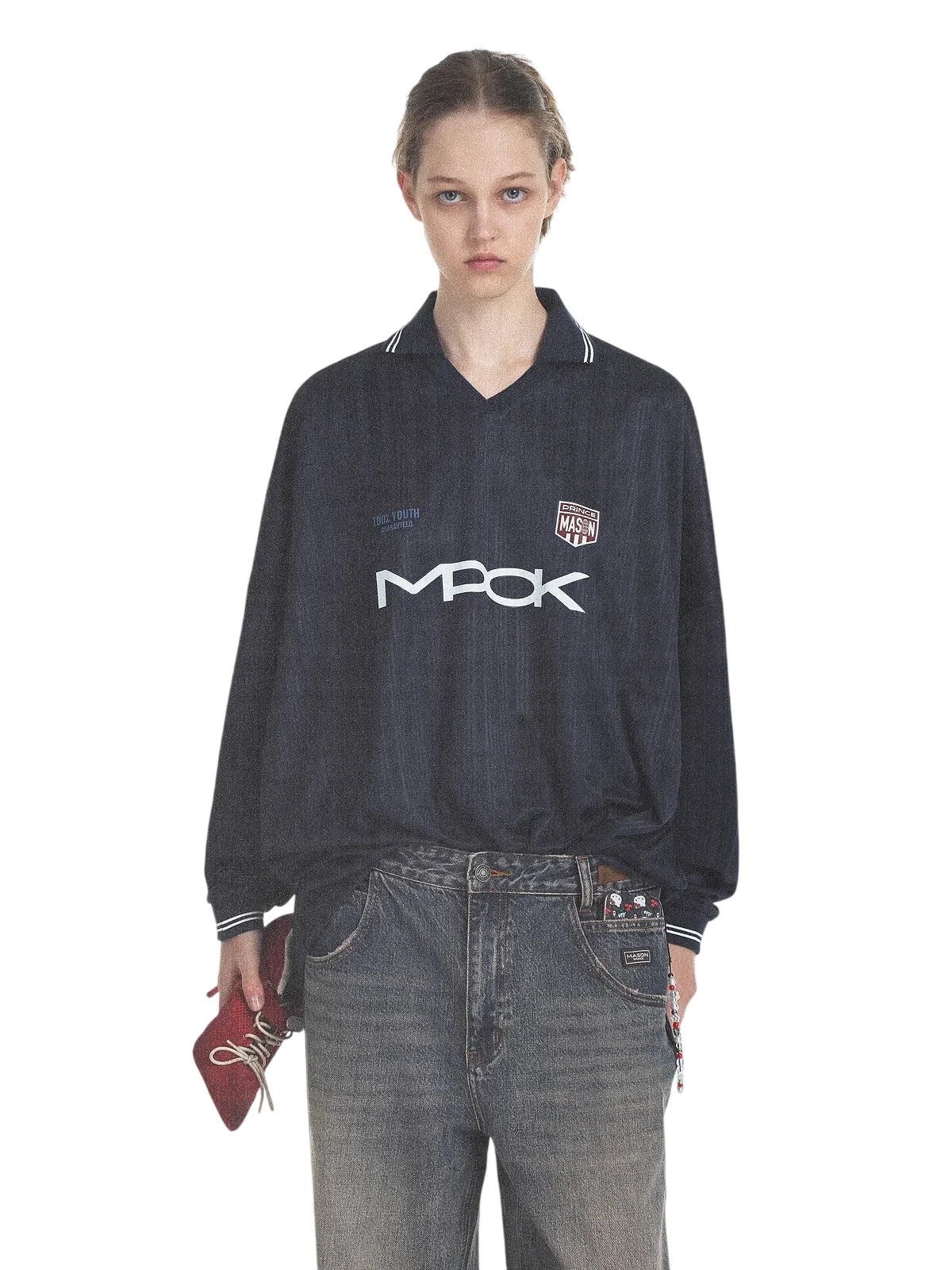 MASONPRINCE Men's Retro Polo Tracksuit with Long Sleeves and Loose Pants