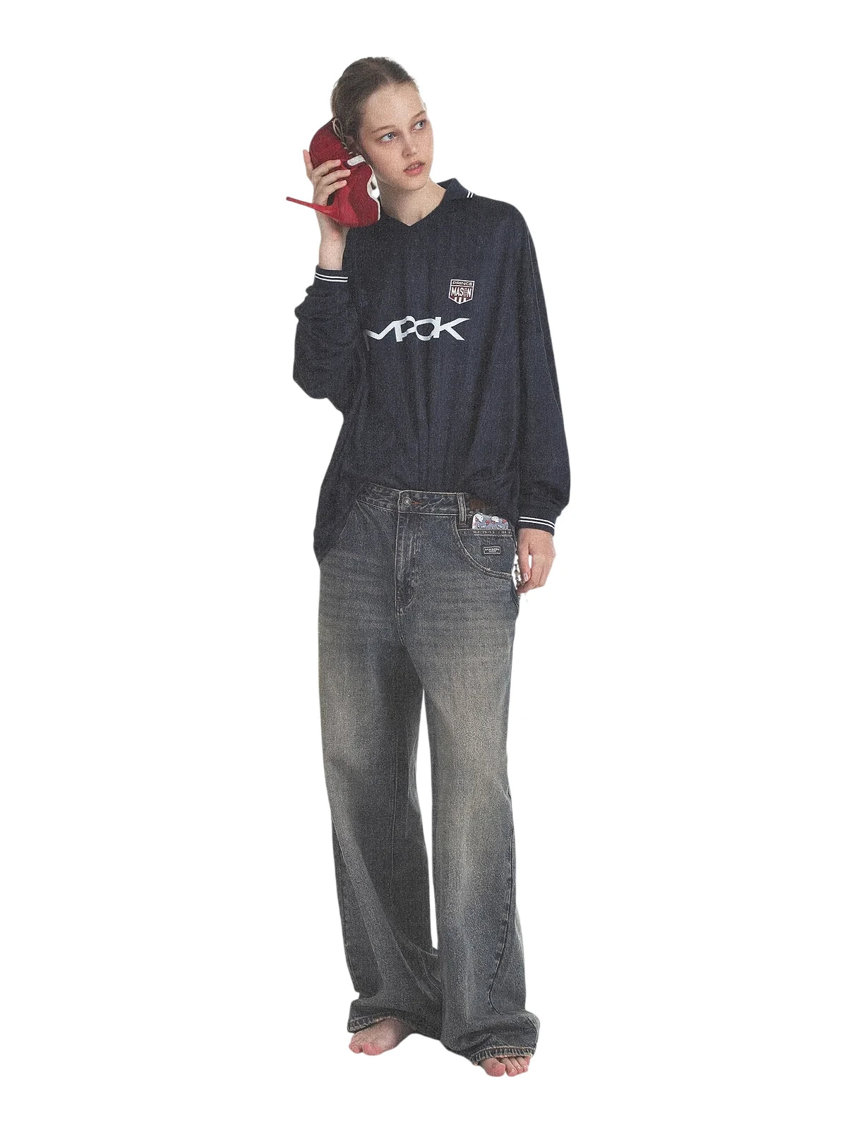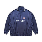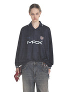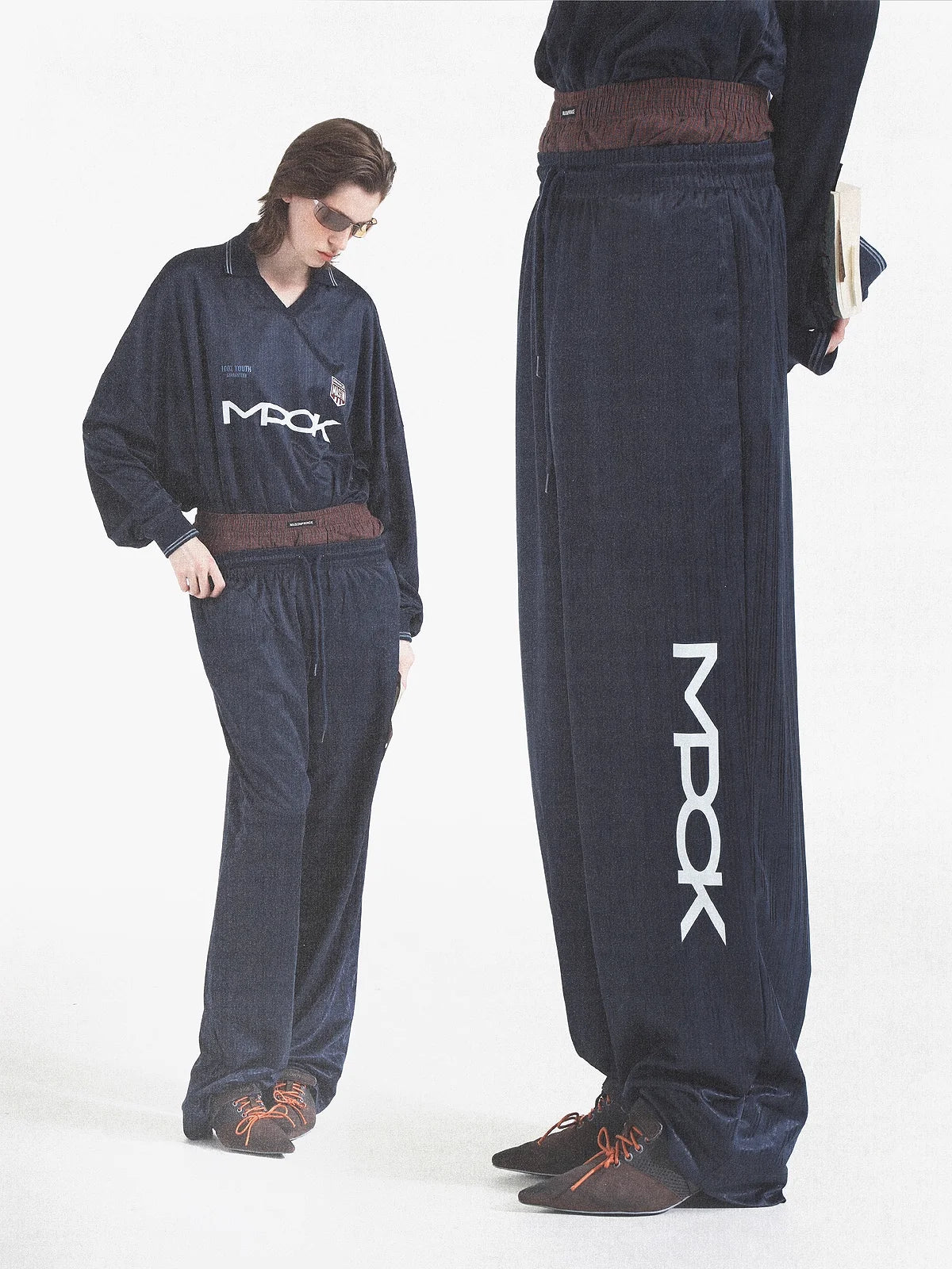 Elevate your casual look with this men's retro-inspired tracksuit set. Featuring a long-sleeved top with a classic polo collar and bold chest graphics, the outfit combines vintage flair with modern comfort. The matching wide-leg pants offer a relaxed fit with an elasticated waistband for easy wear. Coordinated branding details and a clean navy blue design add visual appeal, making this set ideal for laid-back outings or light sports activities.
