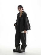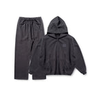 Upgrade your casualwear with this sustainable men's two-piece sports set, featuring a zip-up hoodie and relaxed-fit sweatpants. Crafted from soft fleece fabric, the charcoal black ensemble offers stylish comfort for everyday wear.