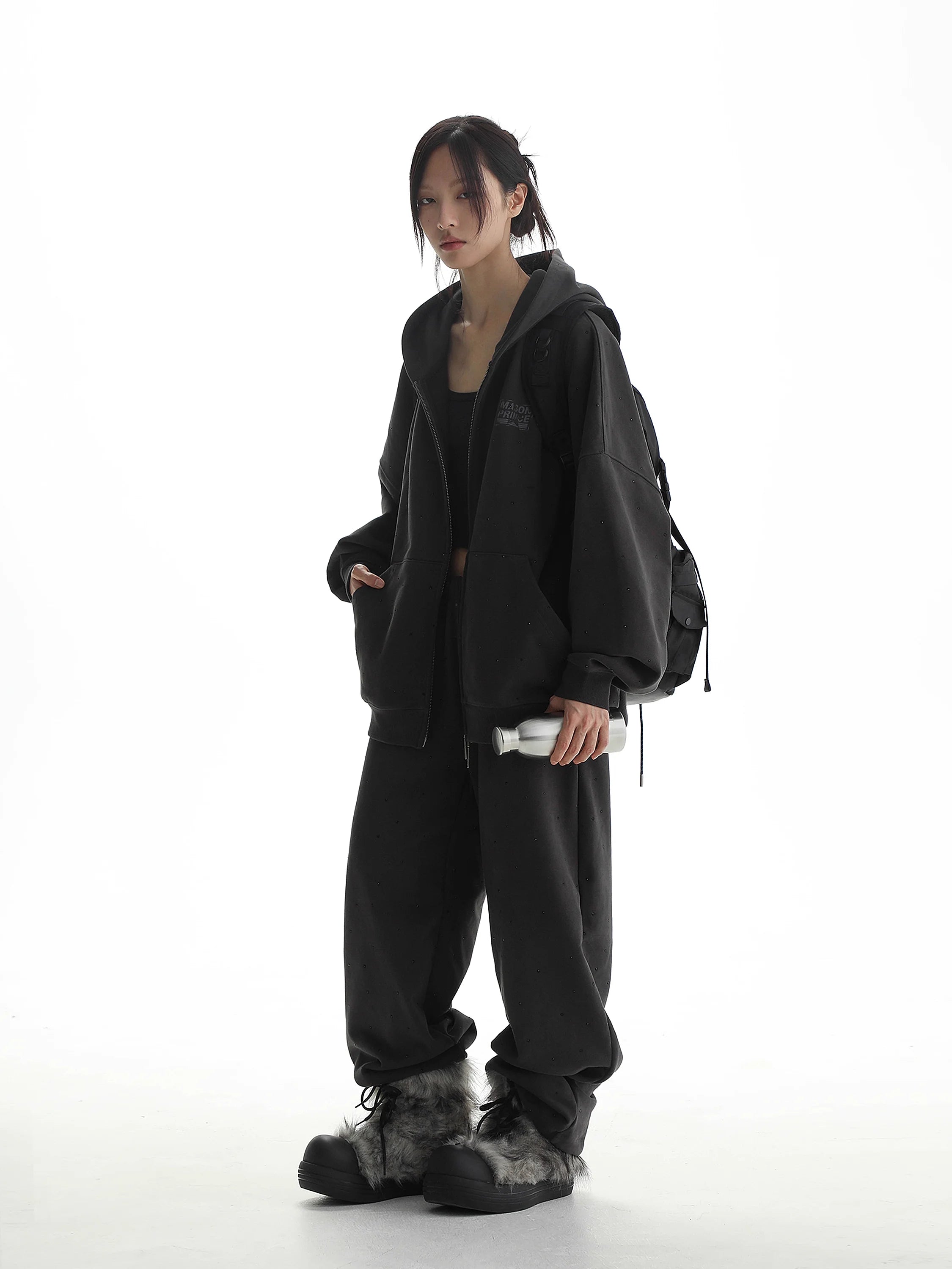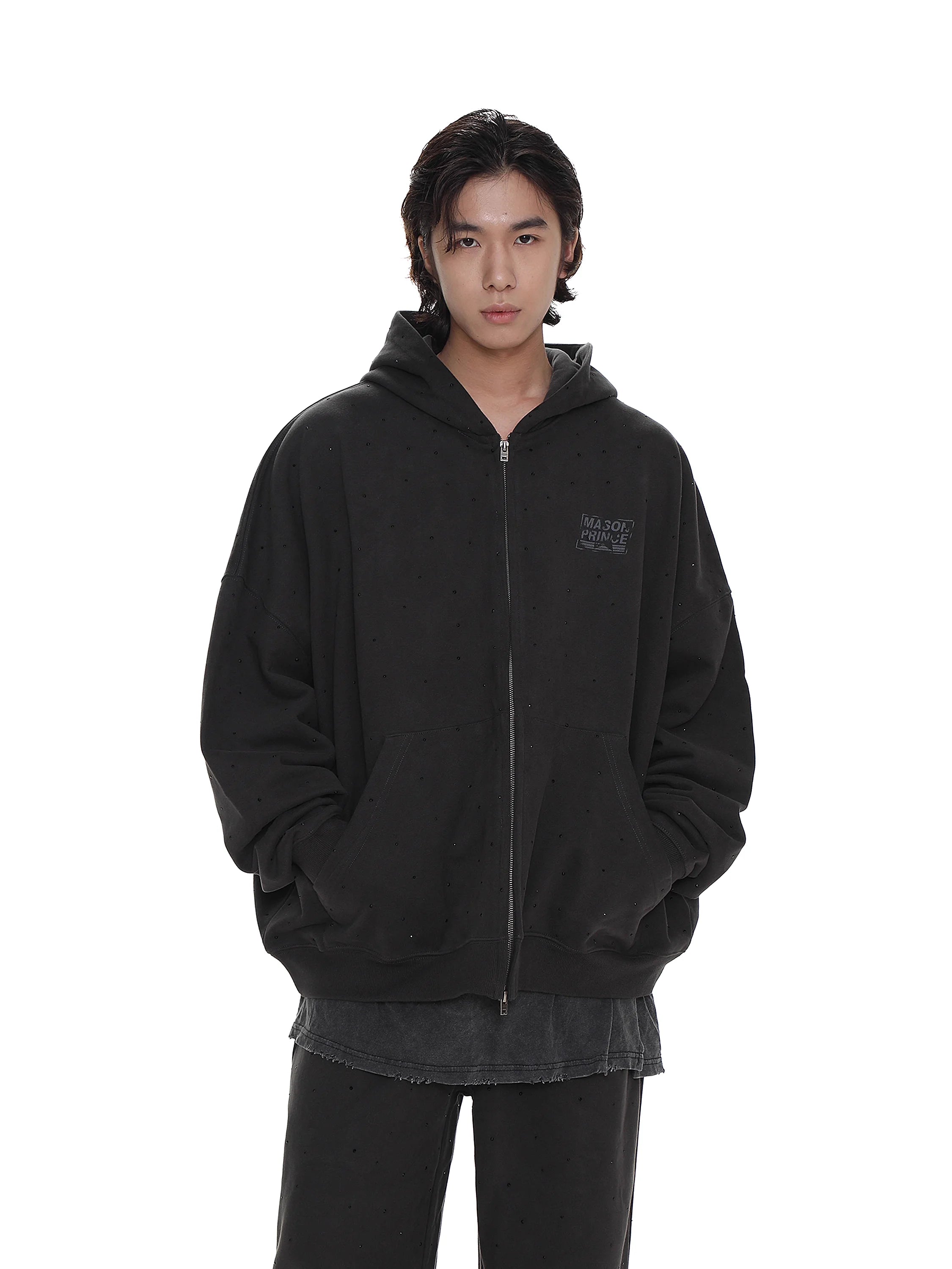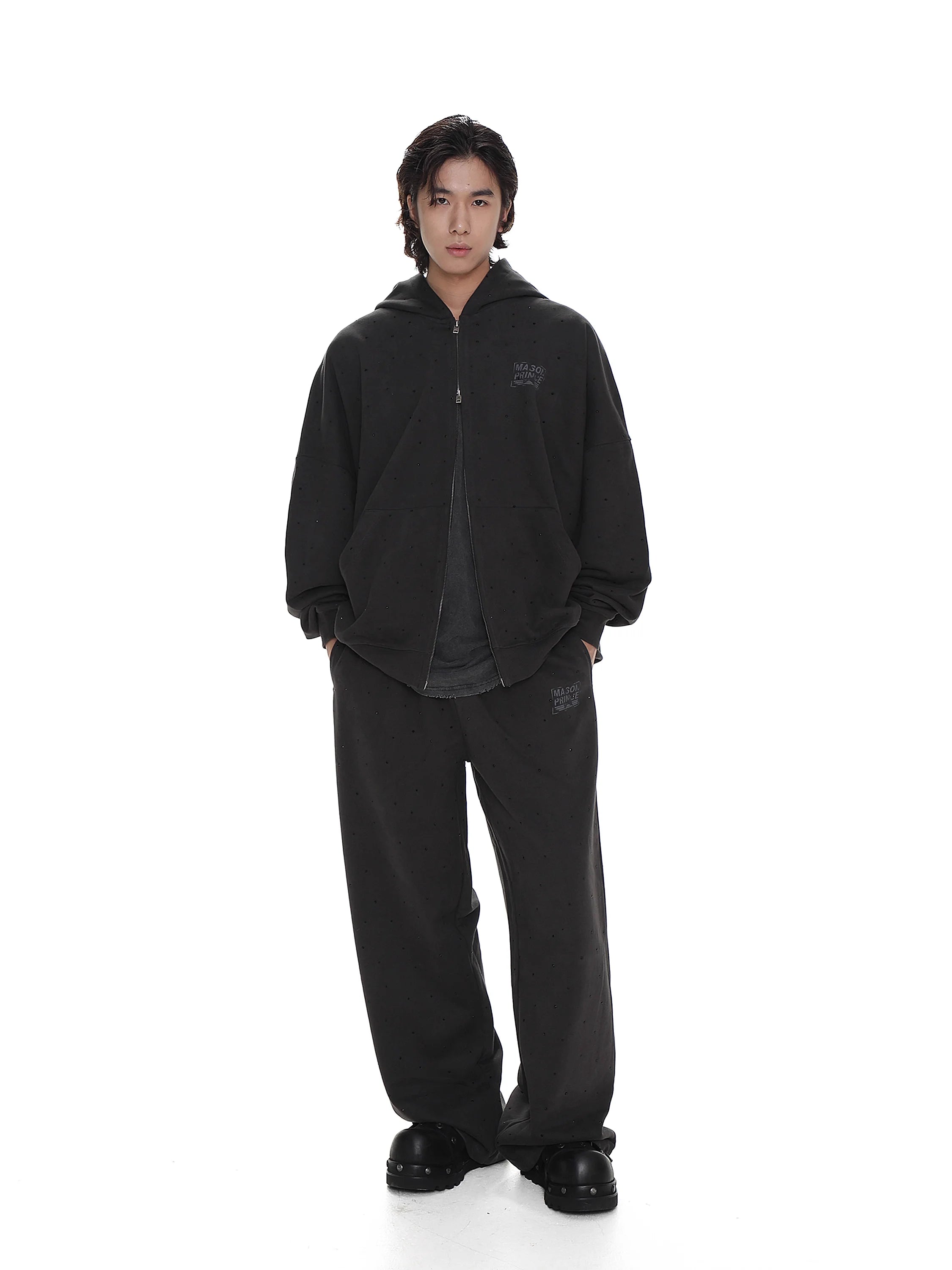 MASONPRINCE Men's Sustainable Rhinestone Zip Hoodie and Sweatpants Set
