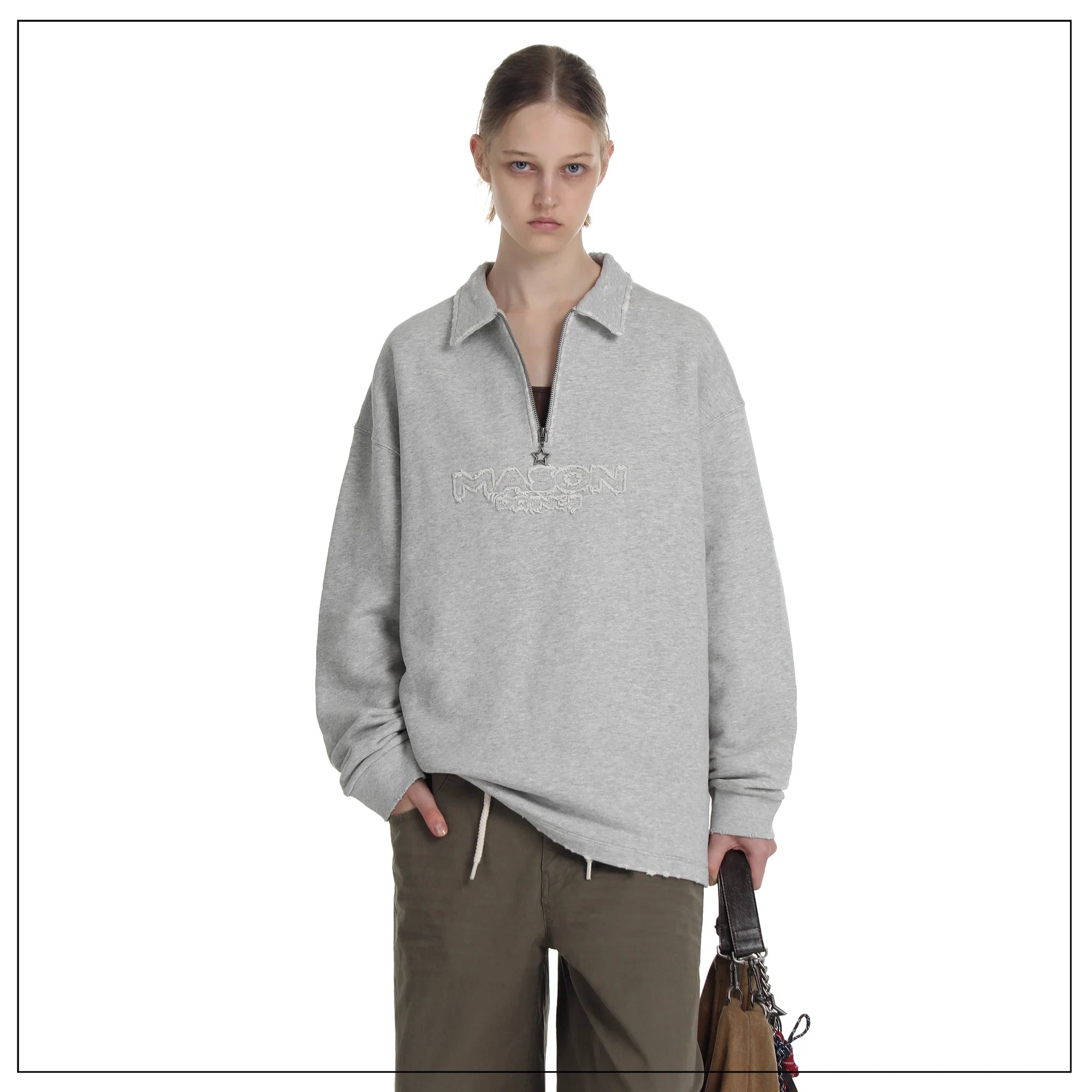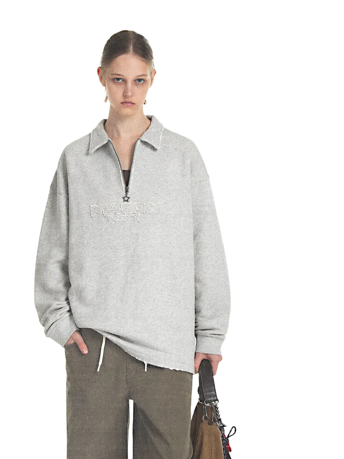 MASONPRINCE Men's Terry Knit Half-Zip Polo Sweatshirt