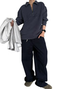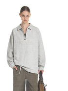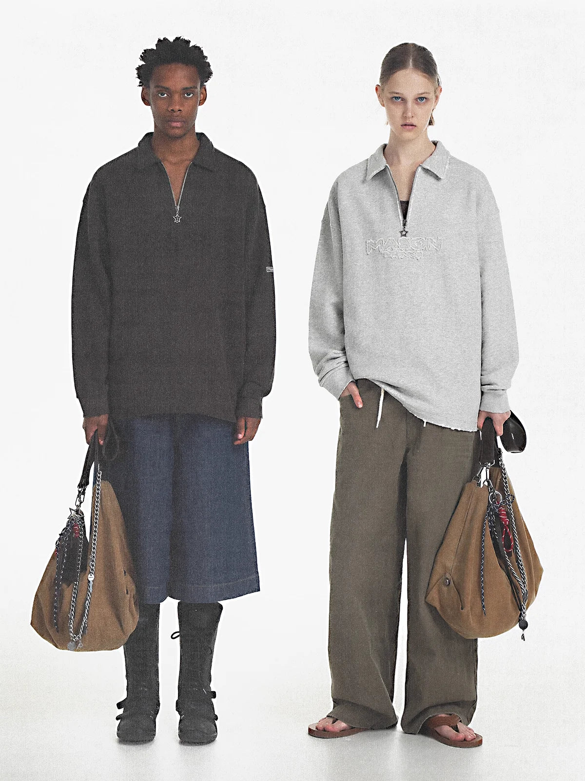 Elevate your casual wardrobe with this men's terry knit half-zip polo sweatshirt. Featuring a relaxed fit and soft fabric, it offers all-day comfort with a laid-back style. A subtle chest appliqué adds a touch of unique character to the minimalist design. The collared neckline and zip closure provide a modern twist on a classic pullover, making it perfect for versatile styling from weekend lounging to casual outings.