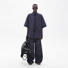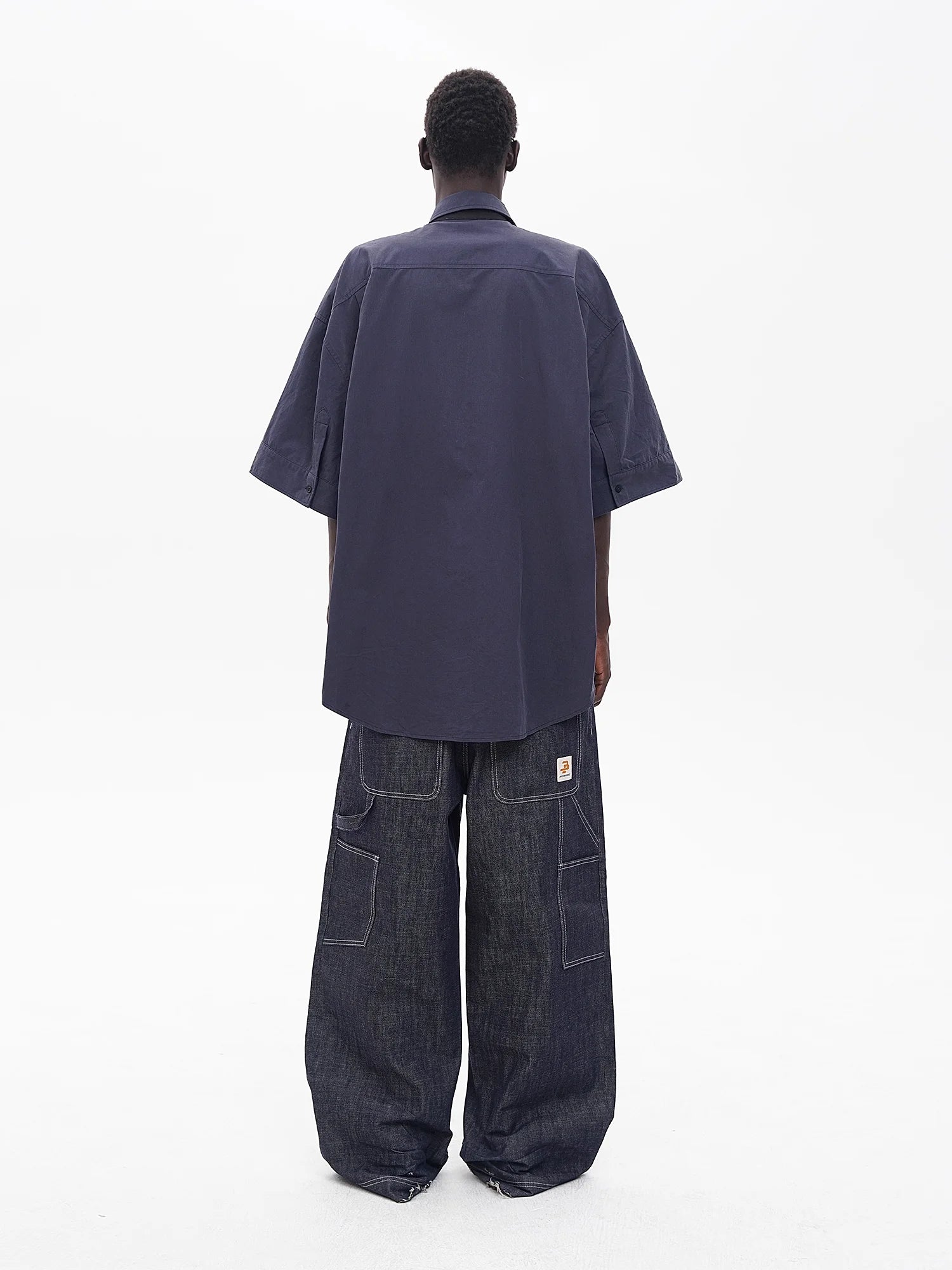 Elevate your streetwear style with this men's two-in-one short-sleeve button-up shirt, crafted from 100% cotton for all-day comfort. Designed with a loose fit and a modern urban flair, the shirt features a pointed collar, single chest pocket, and a sleek black tie for a polished contrast. Pair it effortlessly with wide-leg denim or casual trousers for a bold, fashion-forward look.