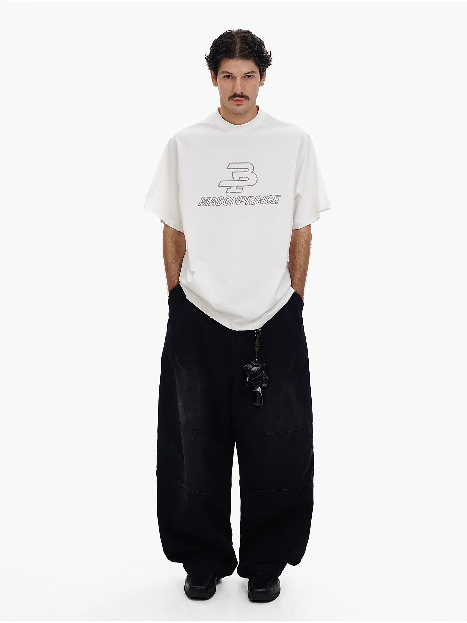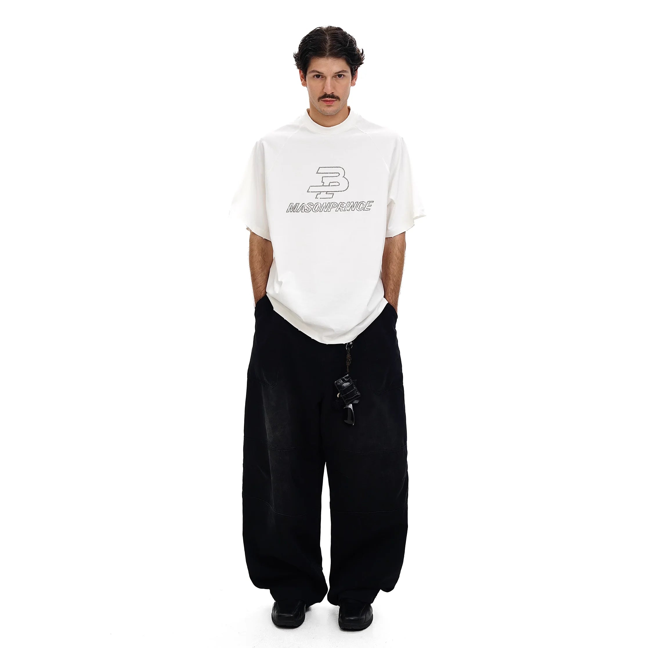 Elevate your casual wardrobe with this men's retro-style T-shirt, featuring a loose fit and raglan short sleeves for a relaxed, streetwear-inspired look. Designed with a bold two-tone color scheme and embroidered front graphic, this tee is perfect for the spring and summer seasons. Pair it effortlessly with wide-leg pants or your favorite casual bottoms for a clean, contemporary outfit.