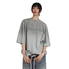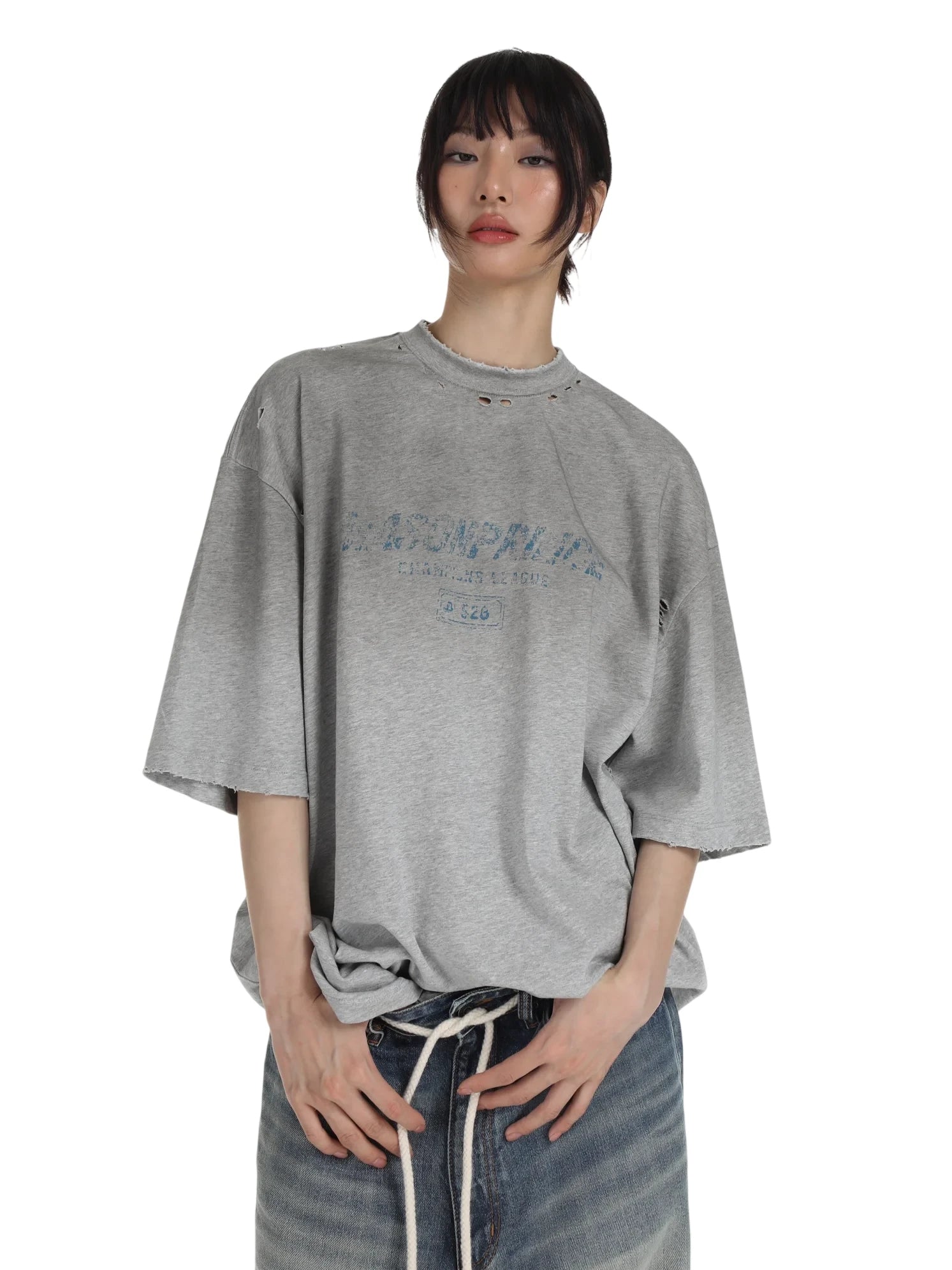 This men's short-sleeve t-shirt features a relaxed, loose fit with a washed vintage aesthetic. The distressed detailing includes subtle fraying and holes around the neckline and shoulders, offering a casual, worn-in look. A bold blue "U.S. SPORTS LEAGUE" graphic across the chest adds a retro athletic vibe. Crafted for comfort and everyday wear, this versatile tee effortlessly complements jeans or shorts for a laid-back, stylish appearance.