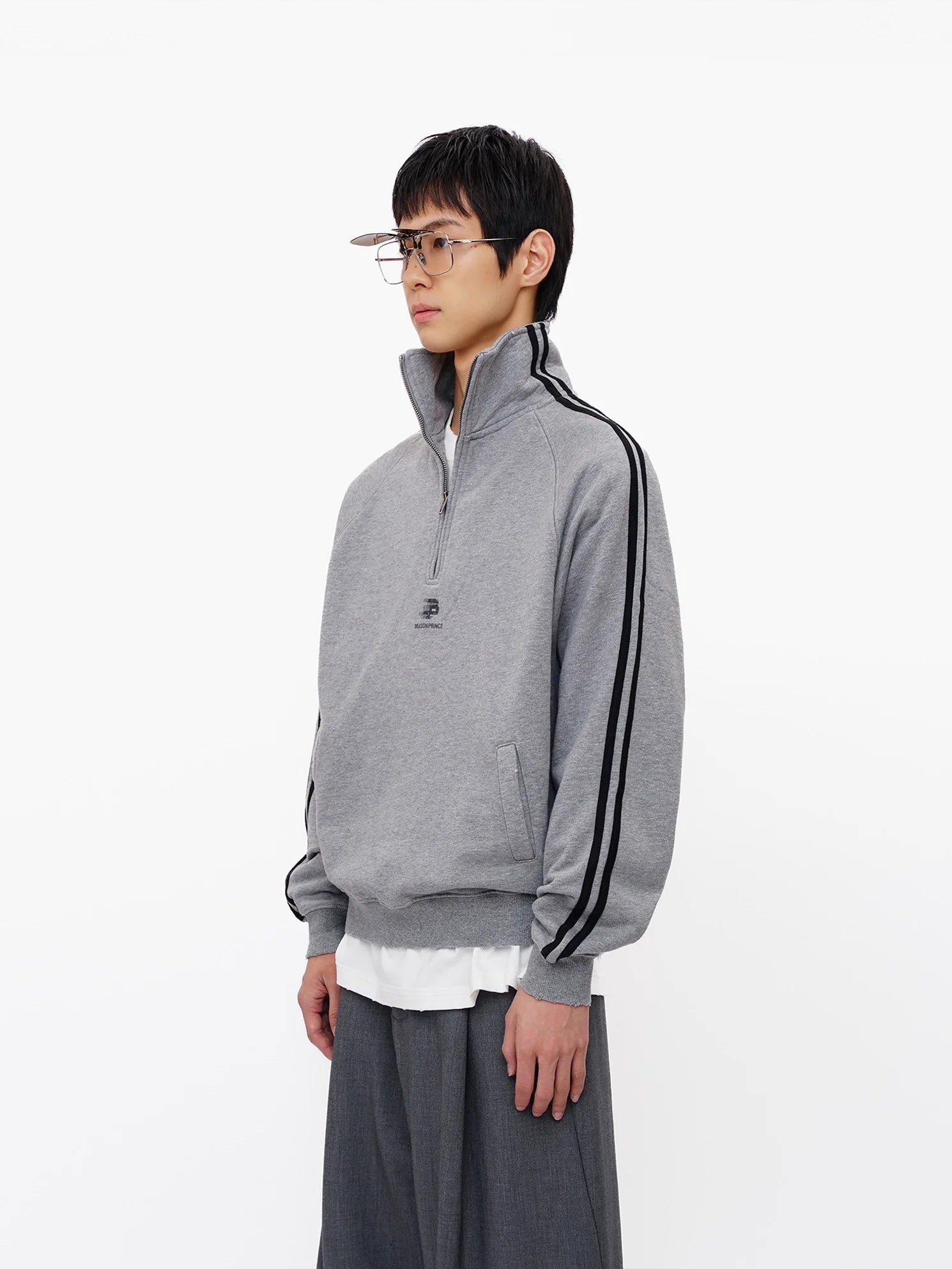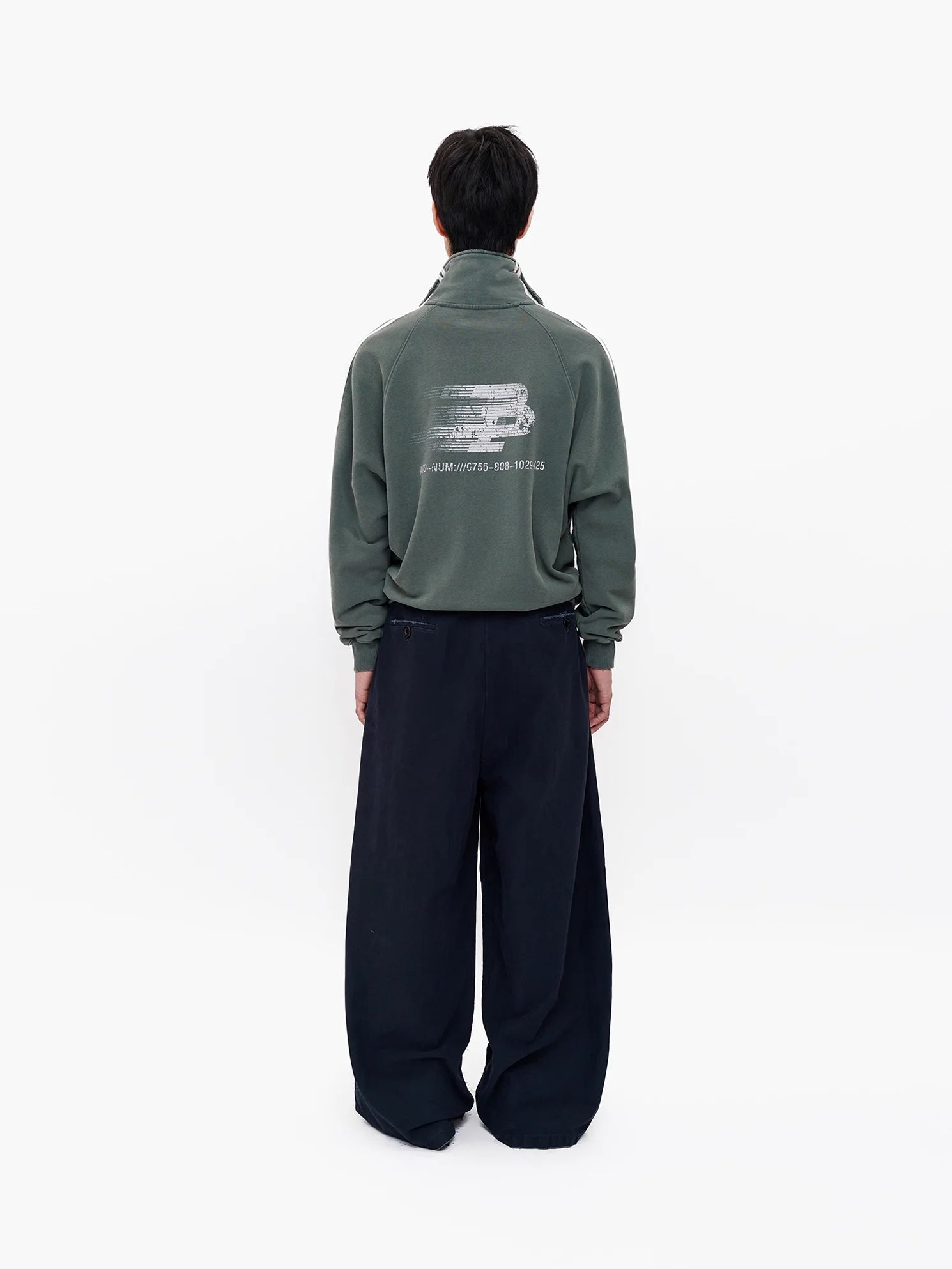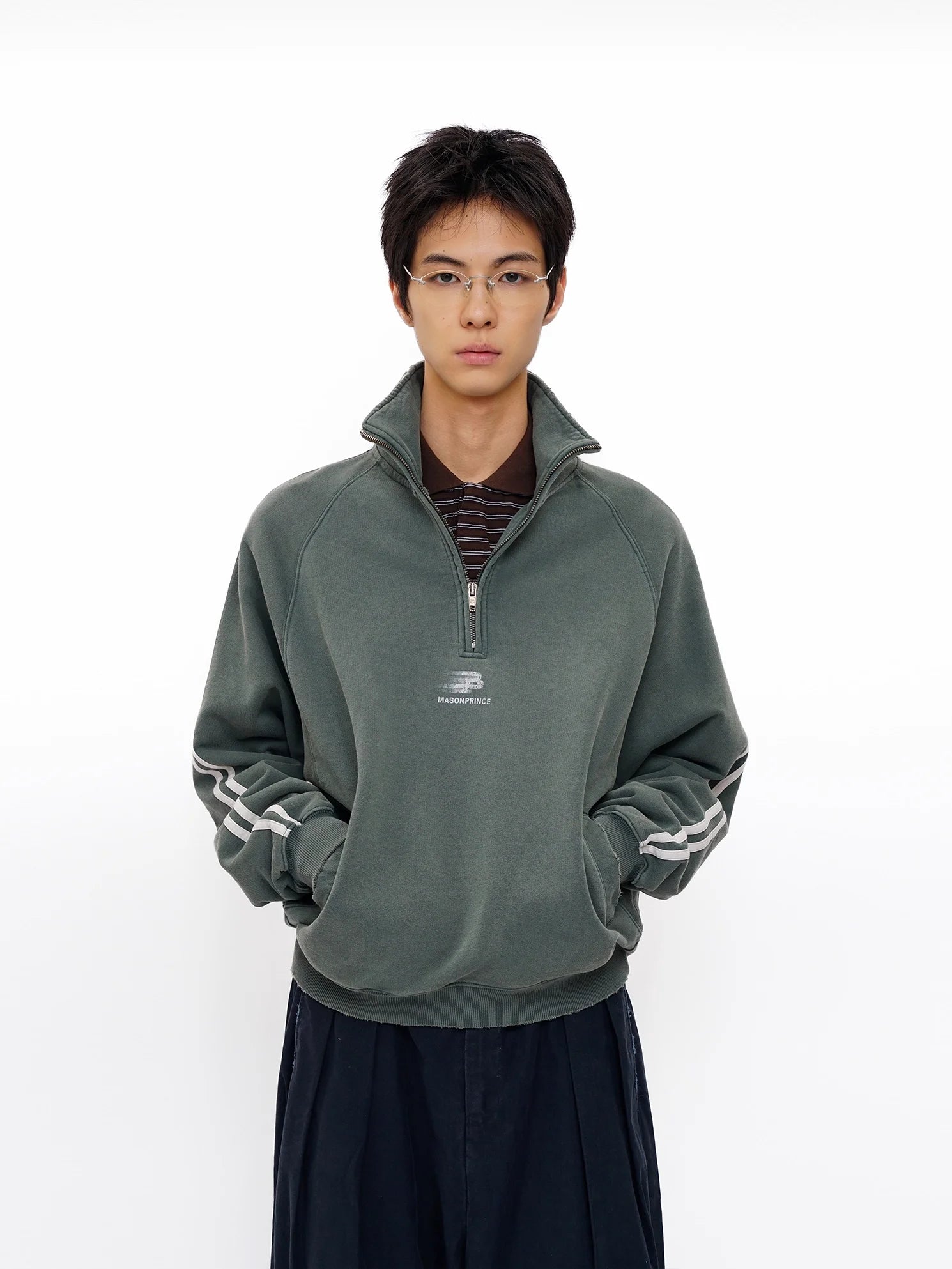 MASONPRINCE Men's Vintage Green High Collar Half-Zip Sweatshirt