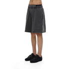 These men's knee-length shorts are crafted from a soft, 380G washed cotton fabric, offering both comfort and casual style. Designed with a relaxed fit that sits just above the knee, they feature an elastic waistband with subtle branding and side pockets for everyday functionality. An embossed logo near the left hem adds a refined finishing touch. Perfect for laid-back, warm-weather wear.
