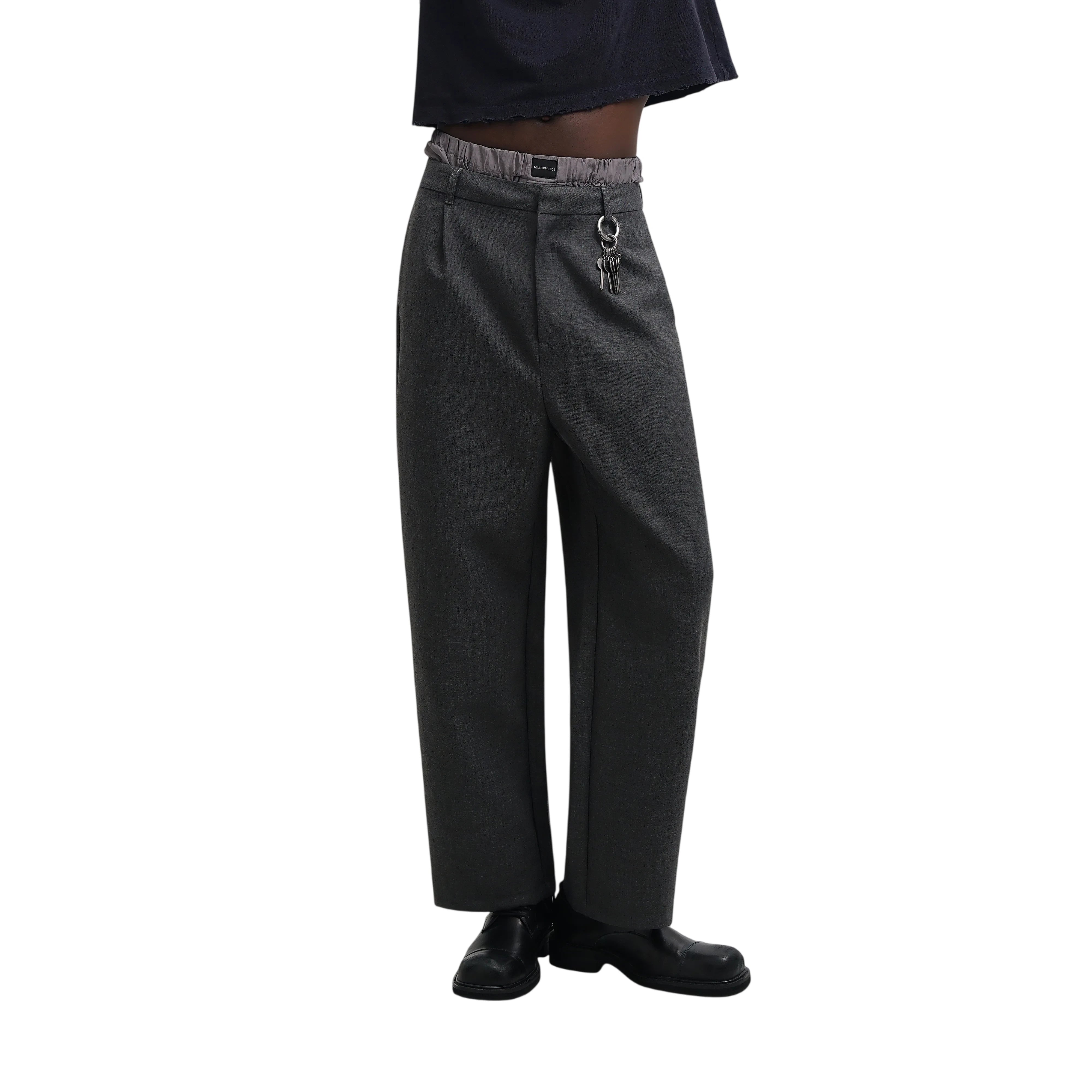 MASONPRINCE Men's Wide-Leg Wool Dress Pants with Keychain Accent