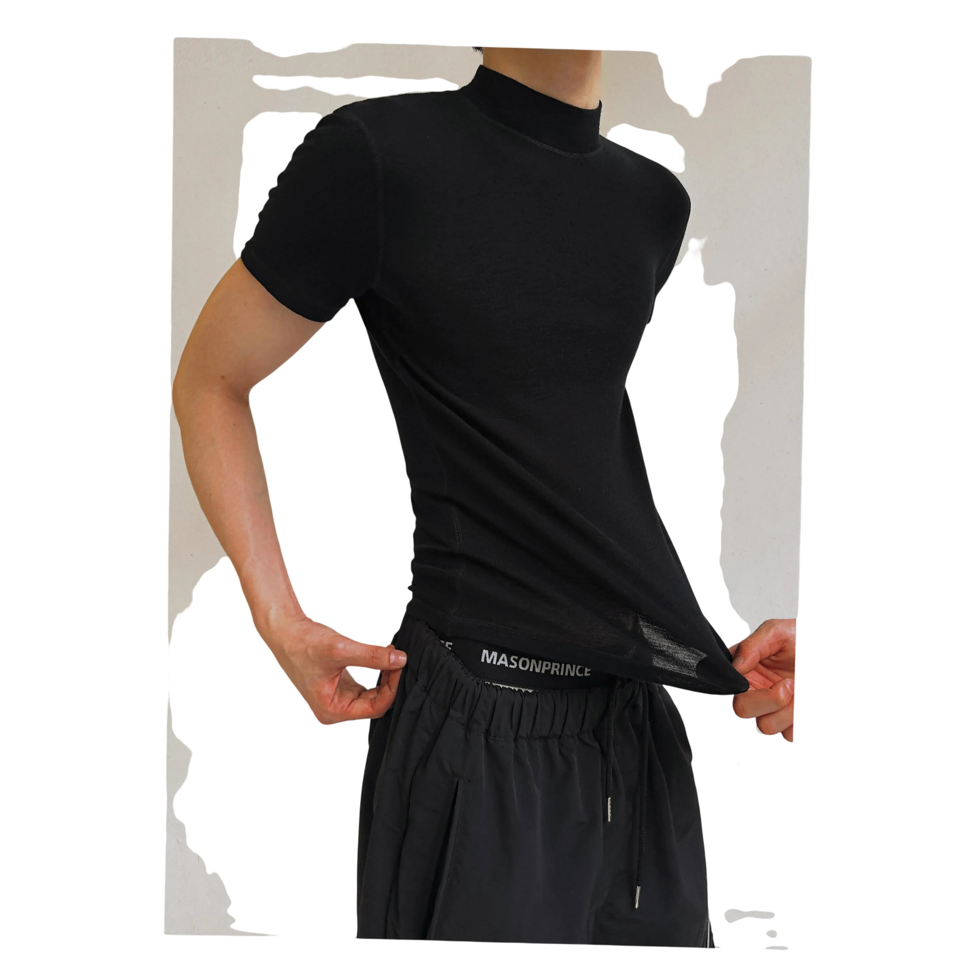 MASONPRINCE Men's Wool Stretch Base Layer Mock Neck T-Shirt