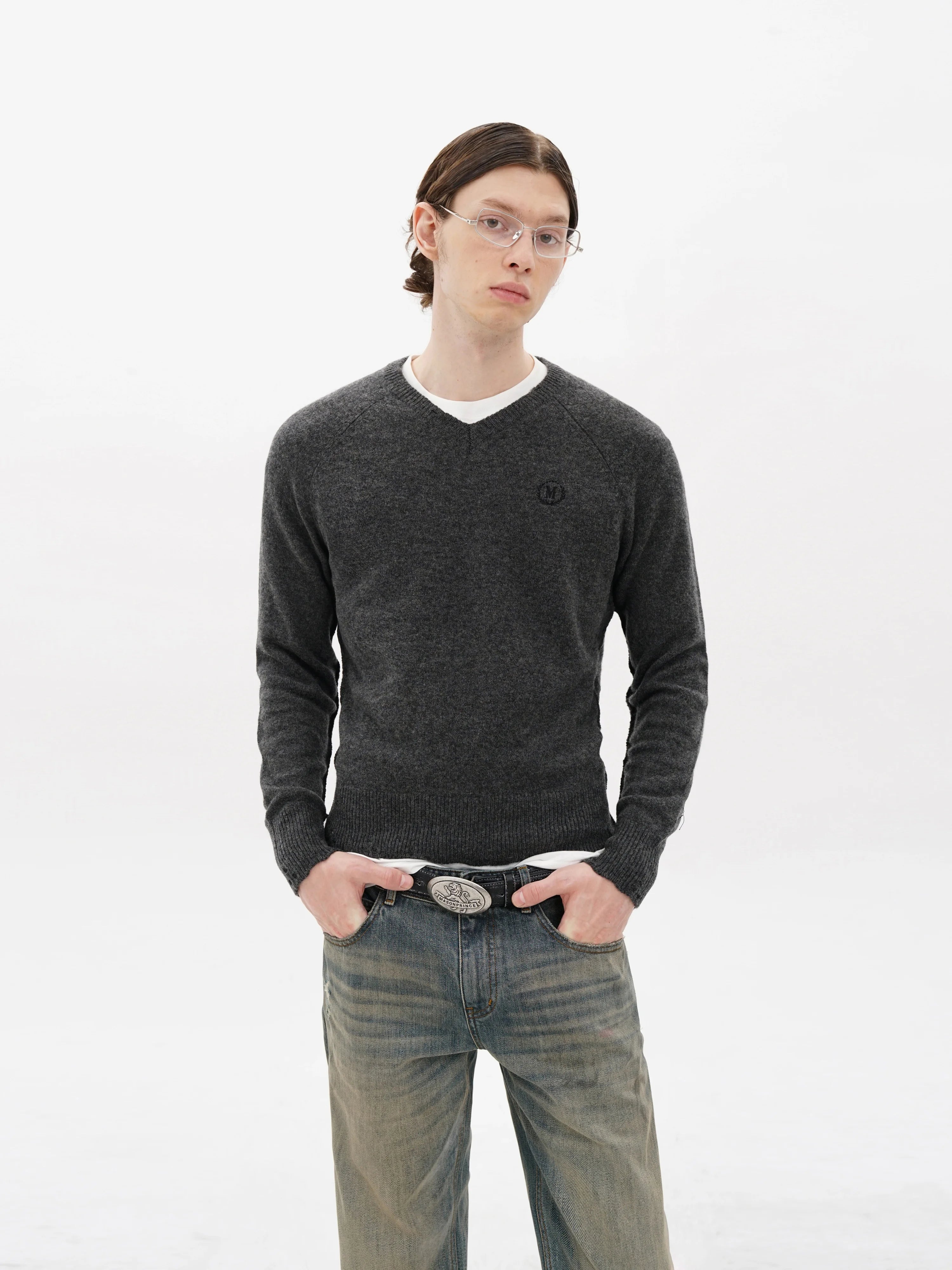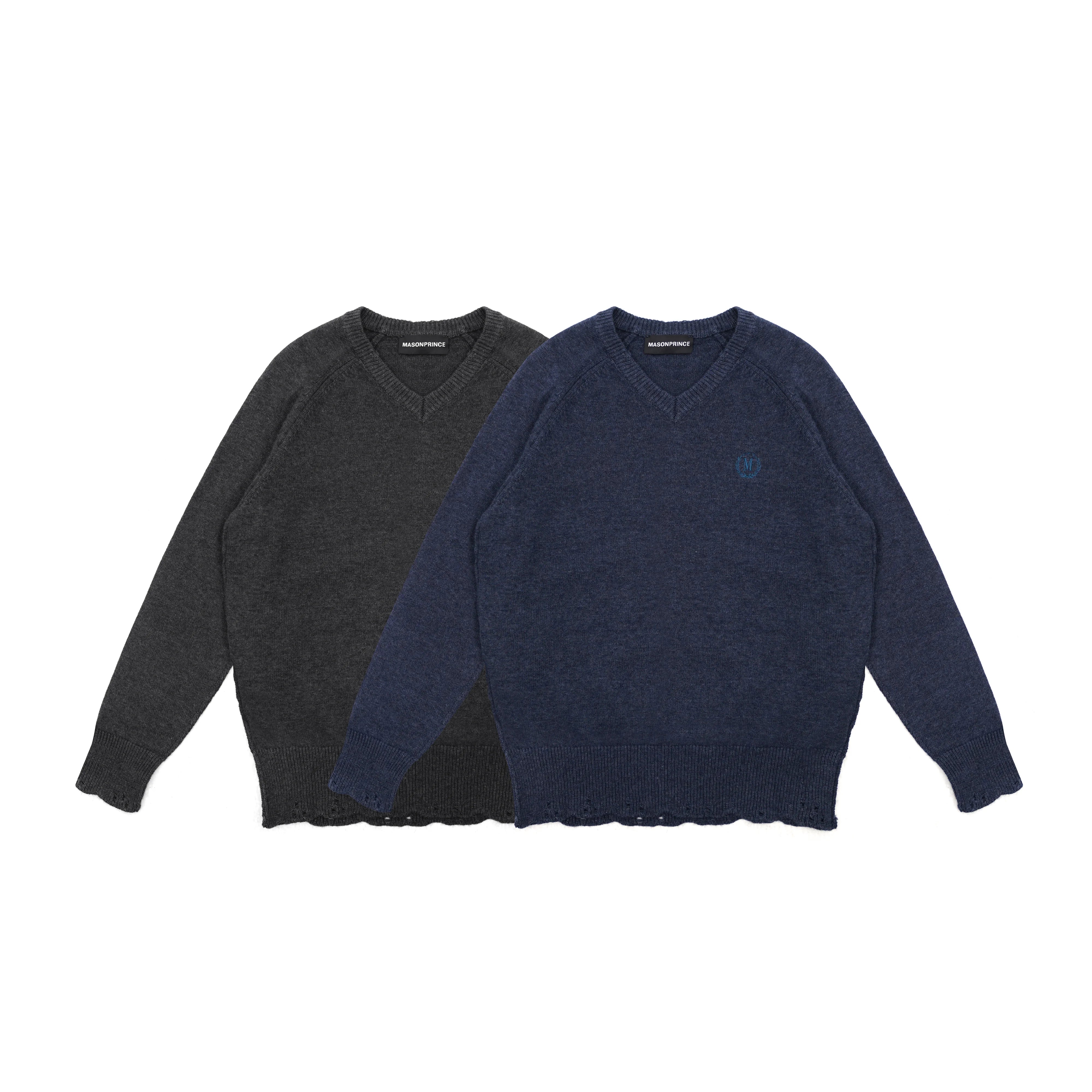 MASONPRINCE Men's Wool V-Neck Distressed Sweater