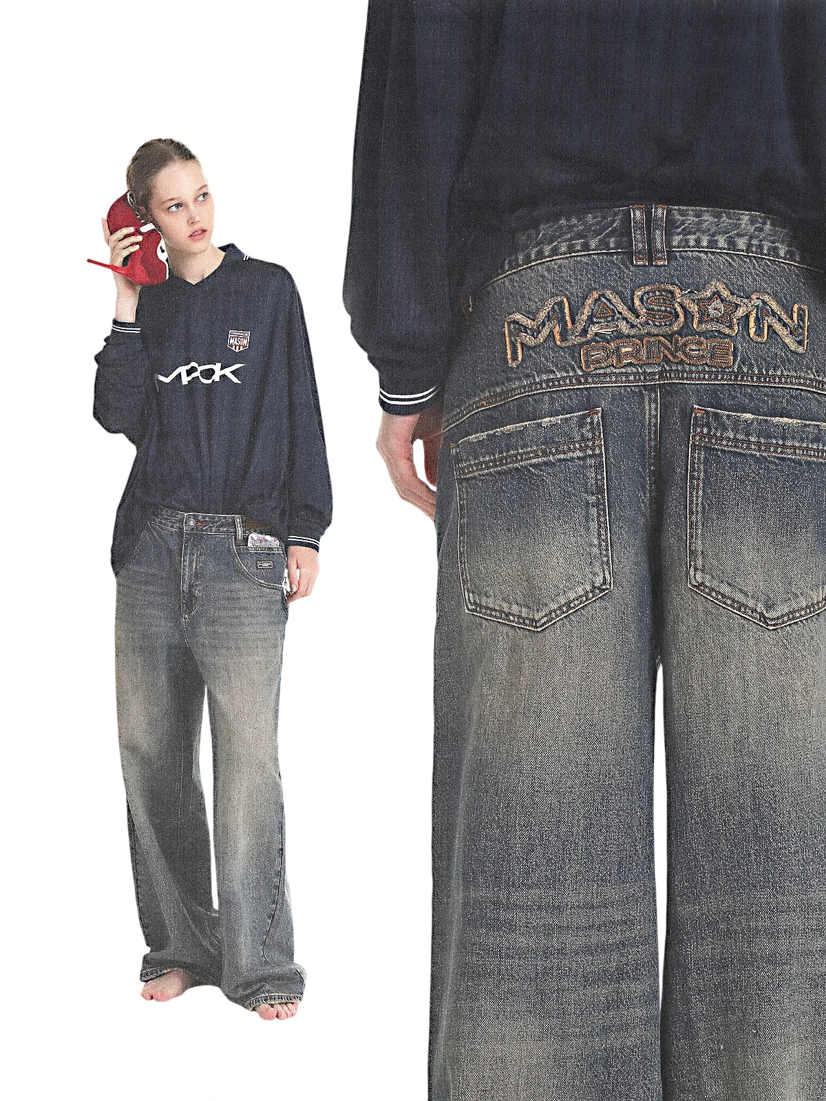 MASONPRINCE Men's Y2K Distressed Baggy Wide-Leg Jeans