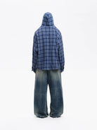 MASONPRINCE Navy Plaid Zip-Up Hooded Shirt Jacket