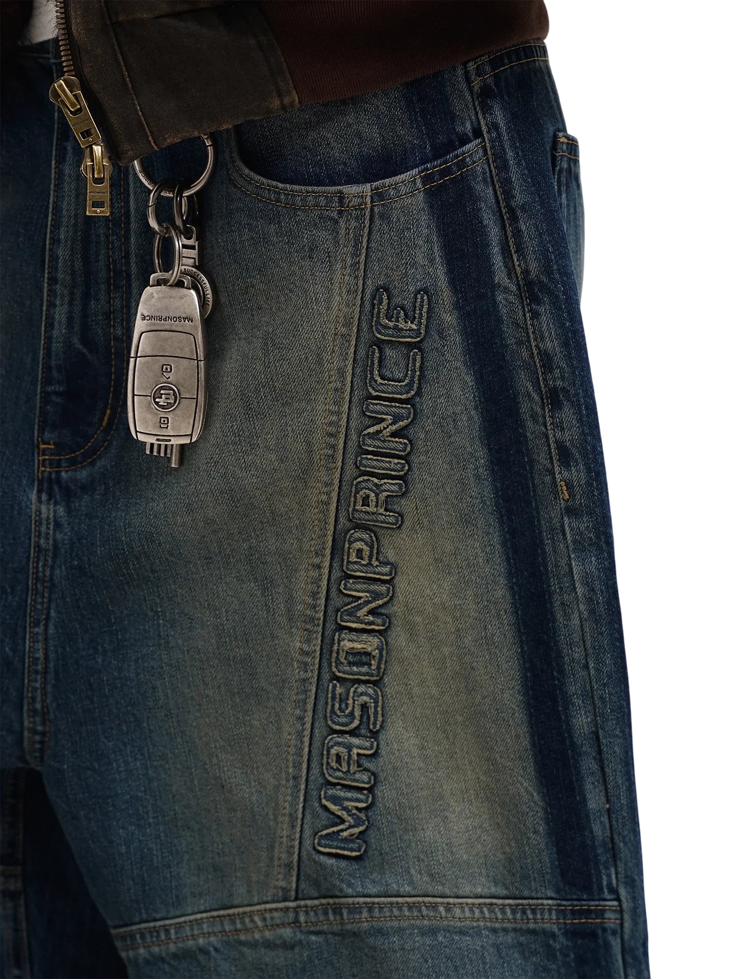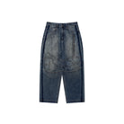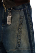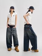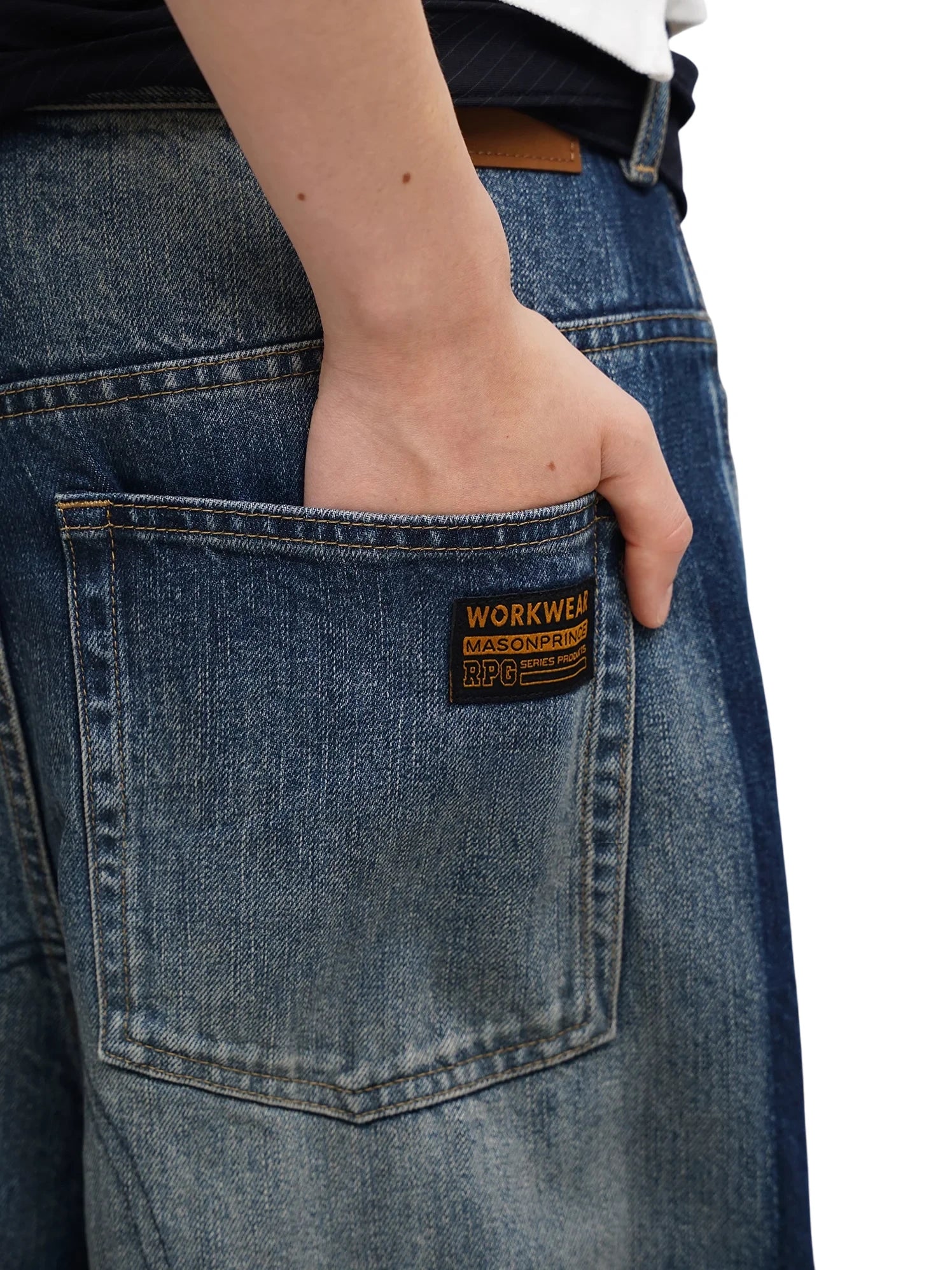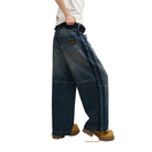 These structured denim shorts and pants feature a modern workwear-inspired design, perfect for casual and streetwear looks. Crafted in a durable, dark-wash denim, the wide-leg silhouette includes panelled construction and bold stitch detailing to enhance the rugged aesthetic. The men's design is finished with a visible back-pocket patch and intentional fading for added character. Ideal for pairing with minimal basics and boots for a relaxed, urban vibe.