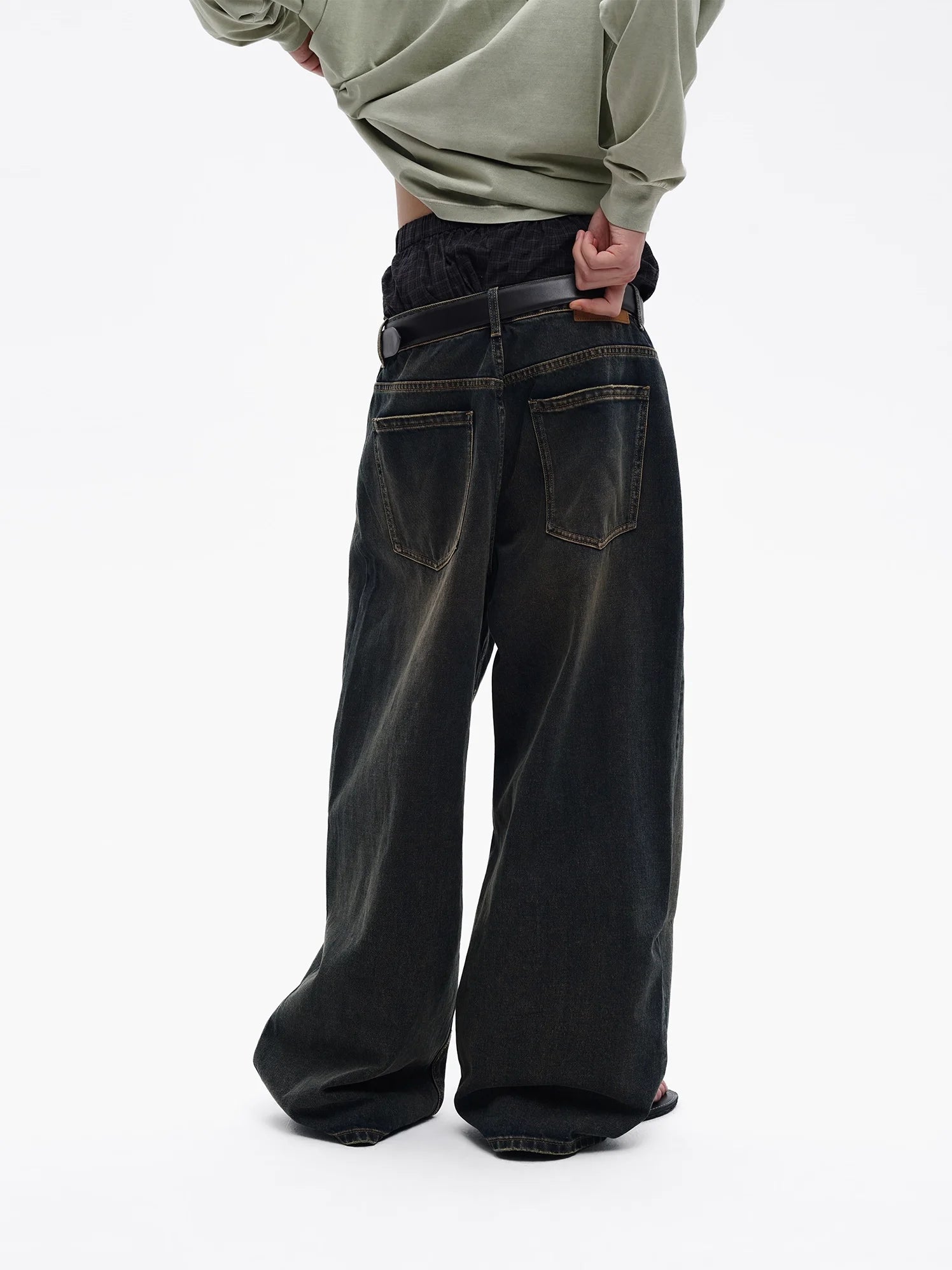 MASONPRINCE Vintage Washed Wide-Leg Loose Fit Denim Jeans