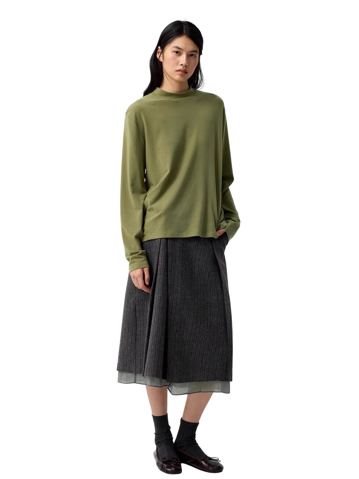 Simple Project Slim Fit Merino Wool Mock Neck Long Sleeve T-Shirt