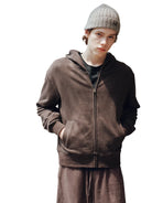 VLABMADE Retro Heathered Zip-Up Hoodie with Relaxed Fit