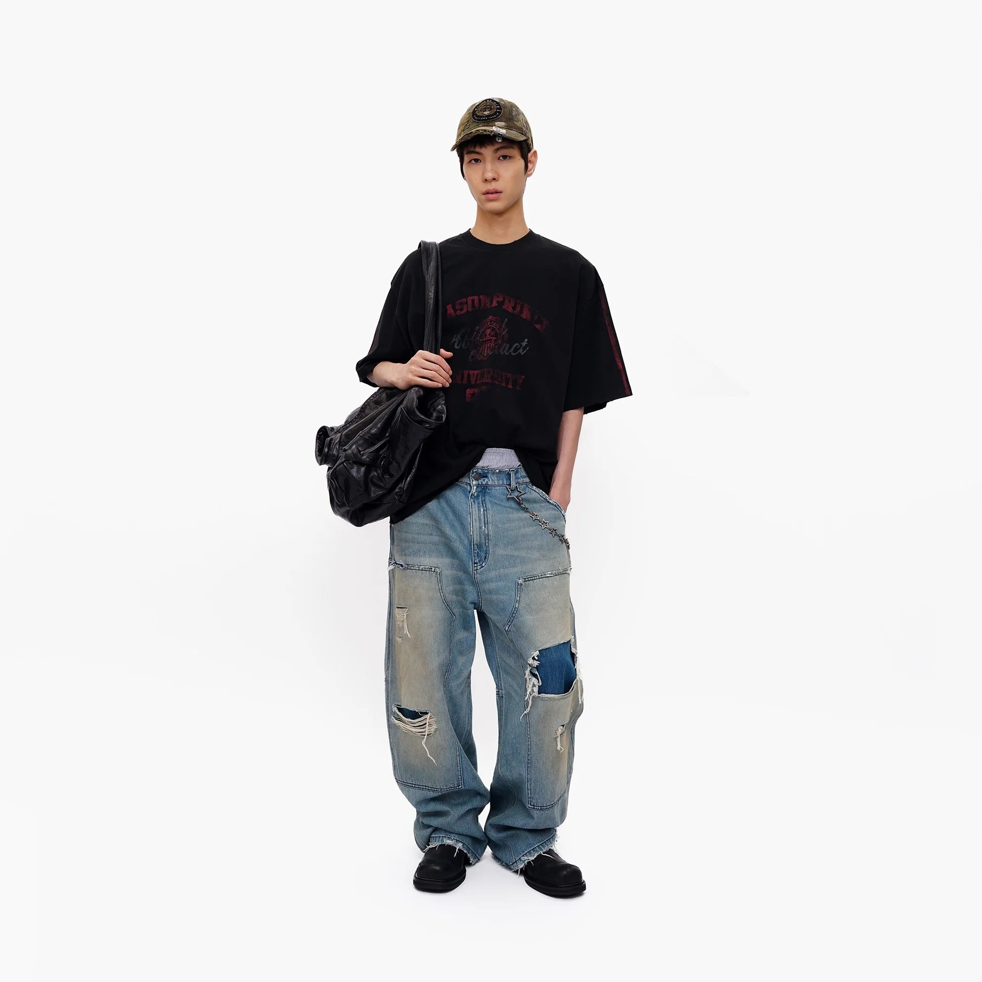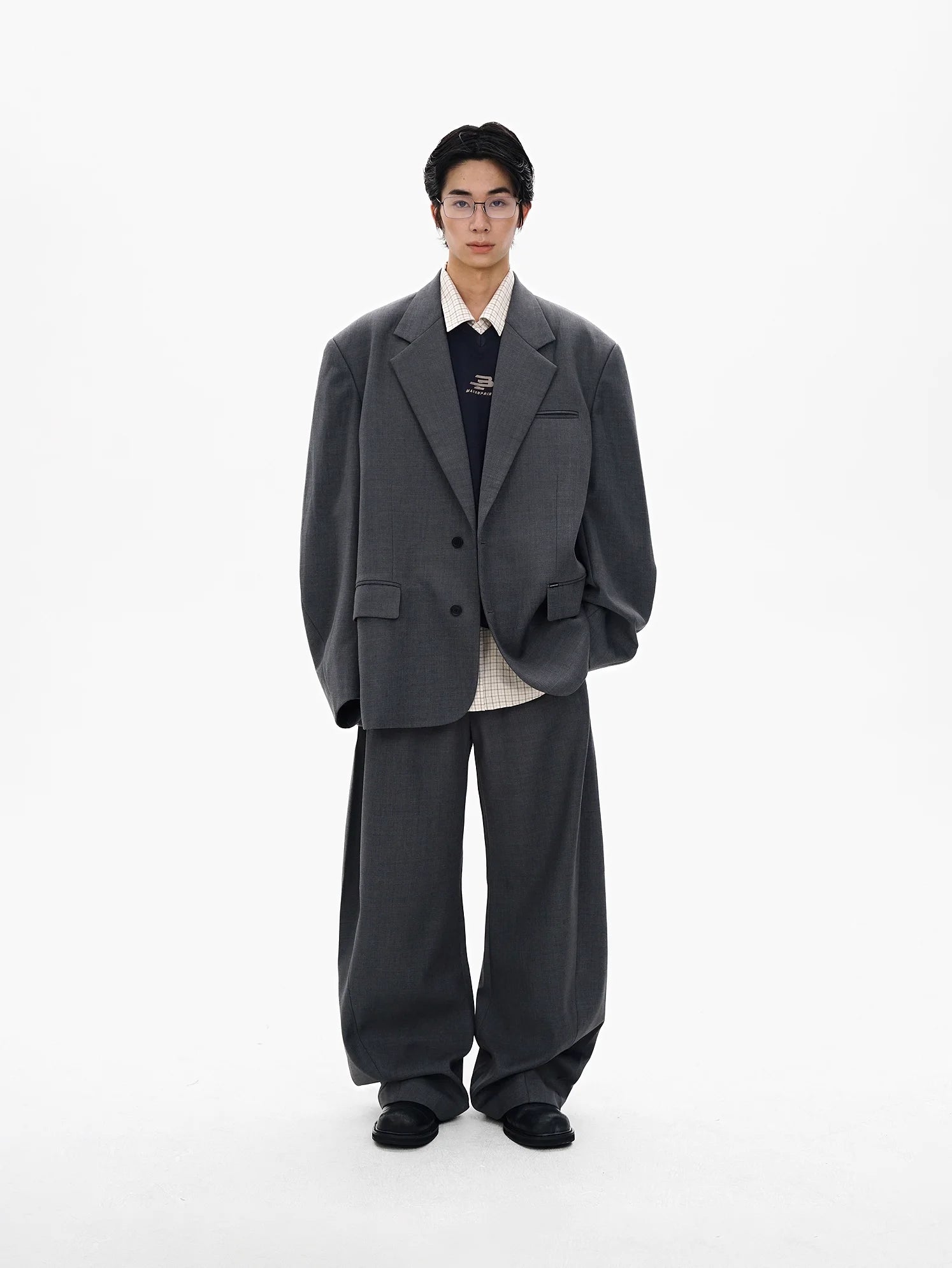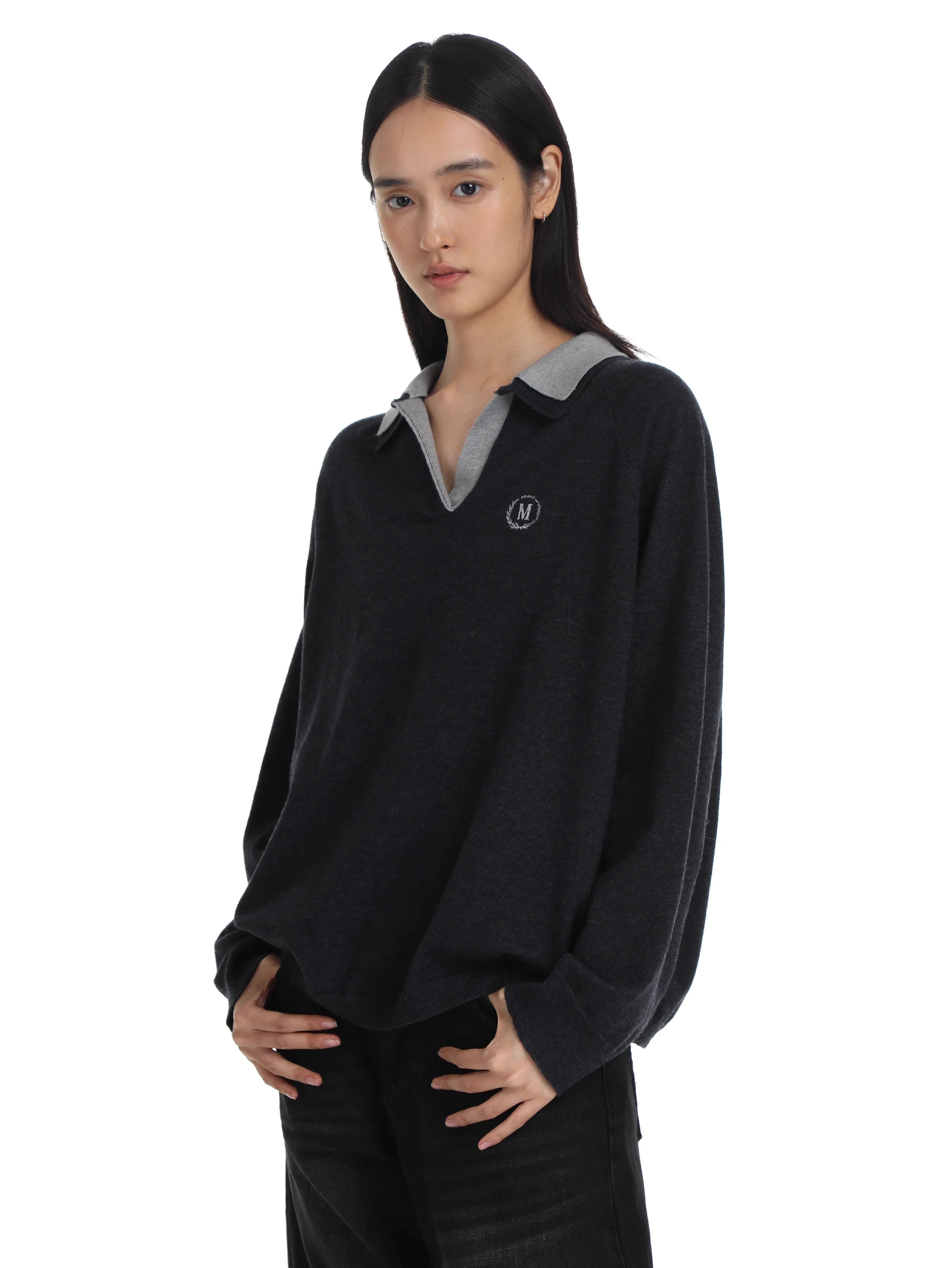 Black Contrast Dark Gray Short Sleeve Loose Fit
