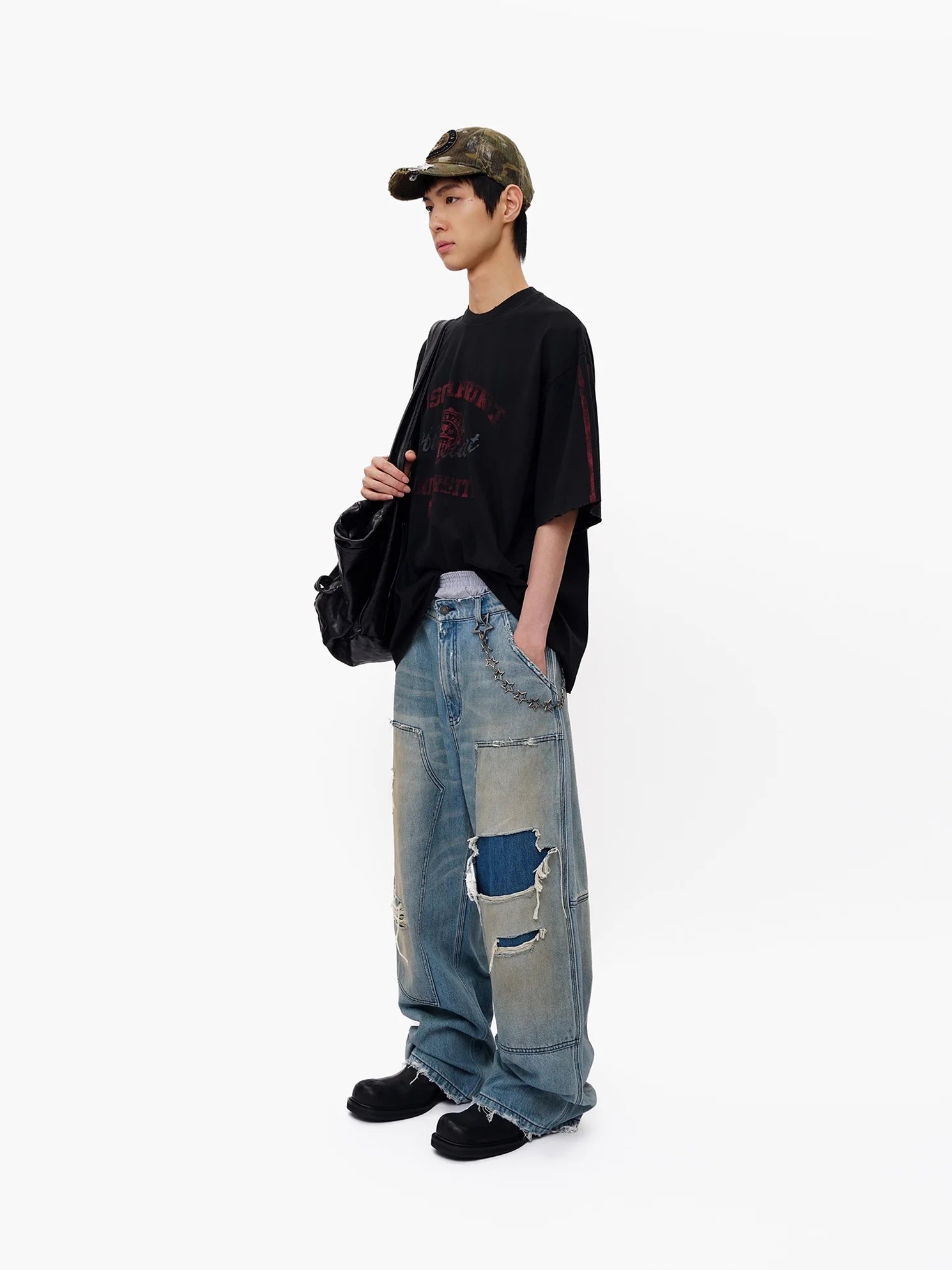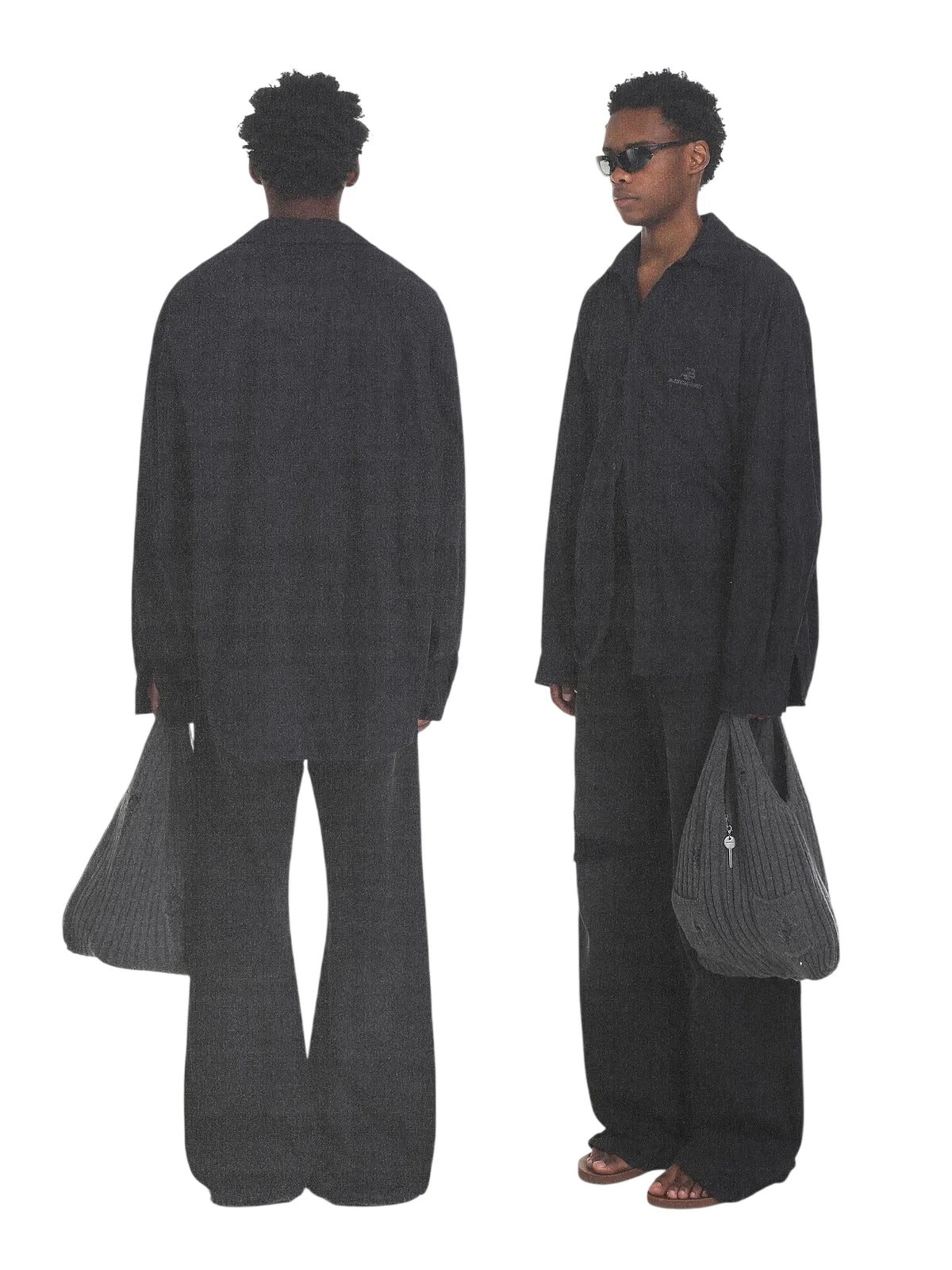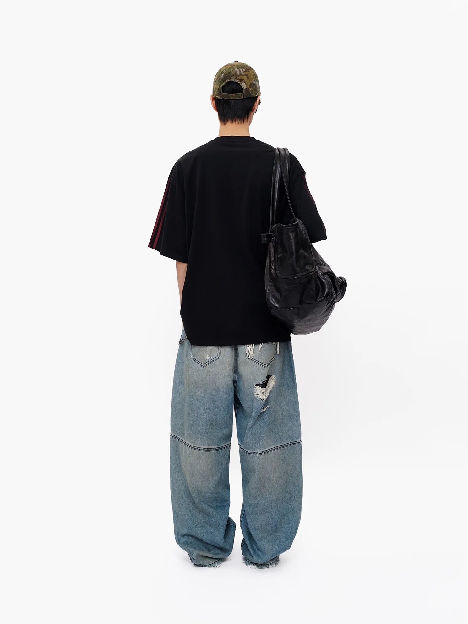 Black Contrast Dark Gray Short Sleeve Loose Fit