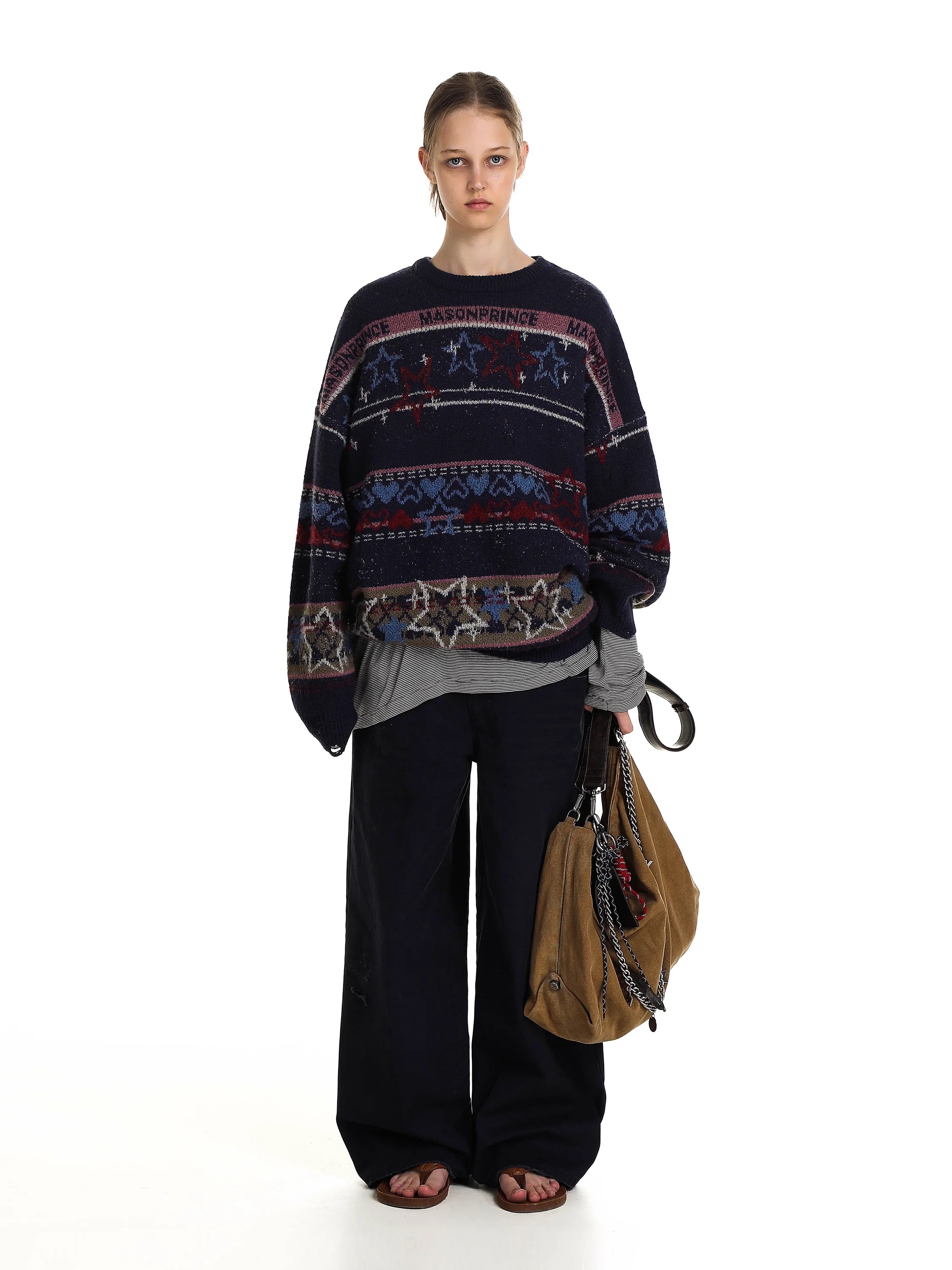 MASONPRINCE Men's Striped Knit Pullover Sweater