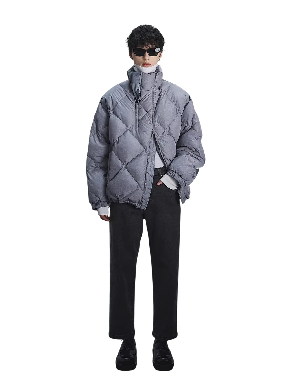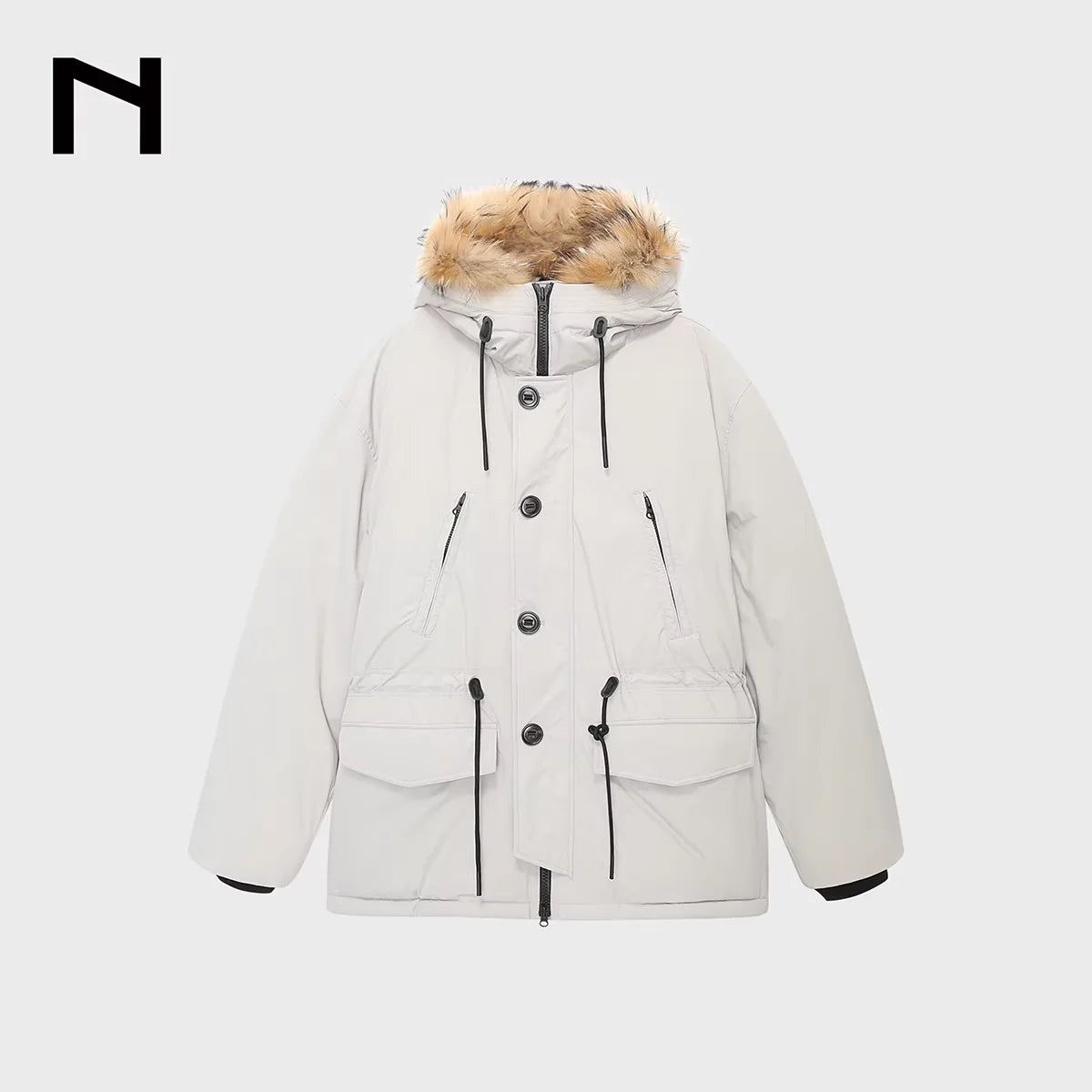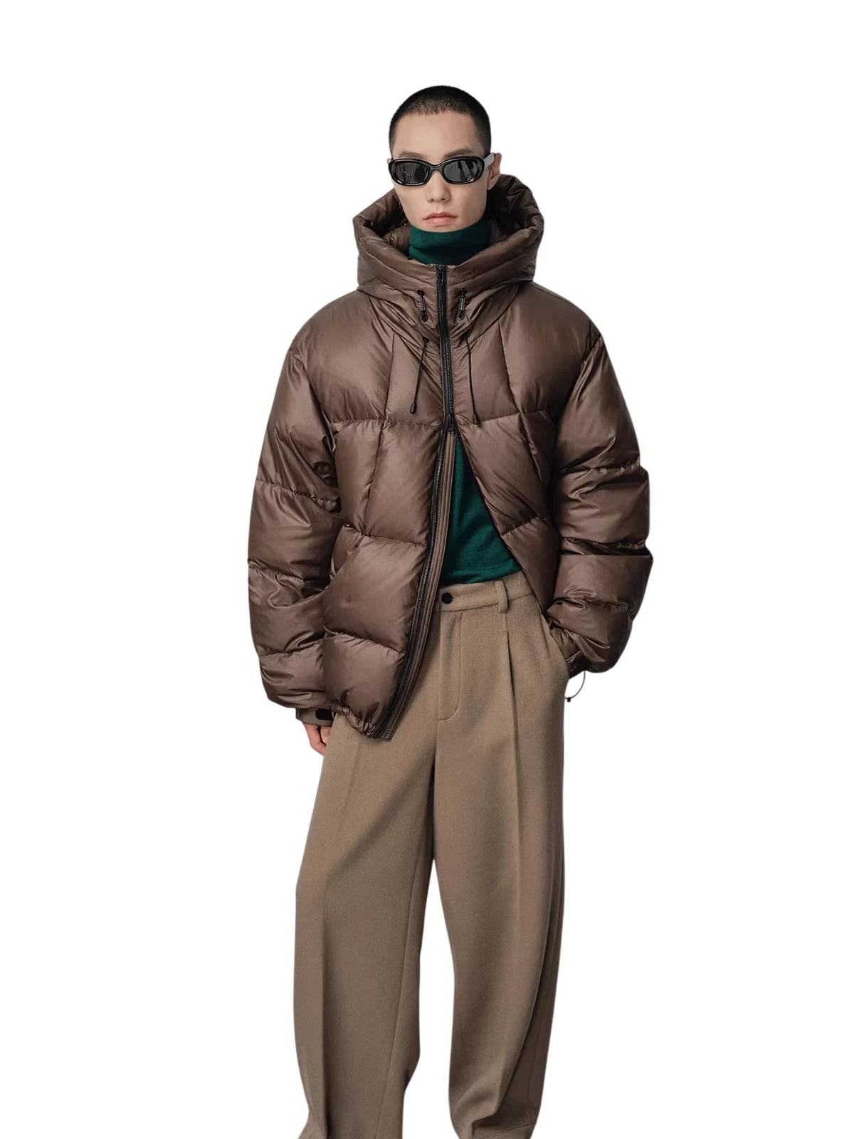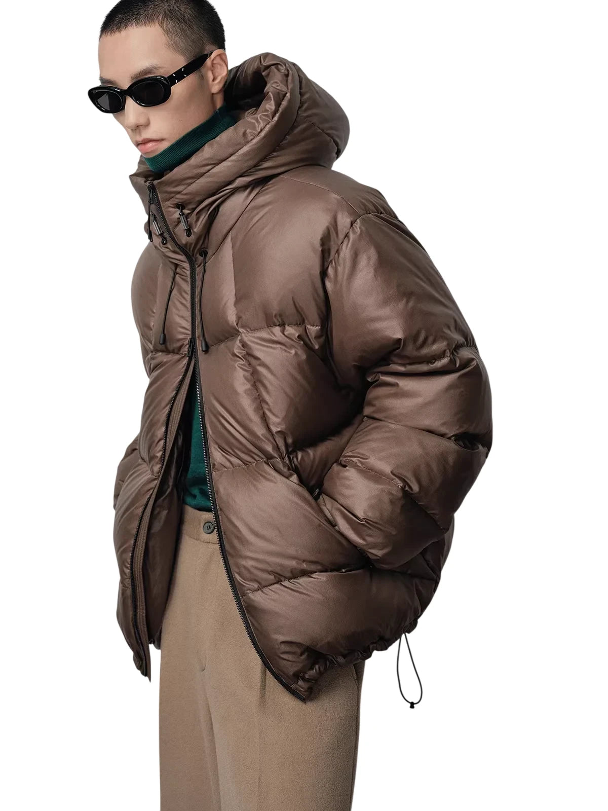 NANS Menswear Plaid High-Density Nylon Hooded Down Puffer Jacket