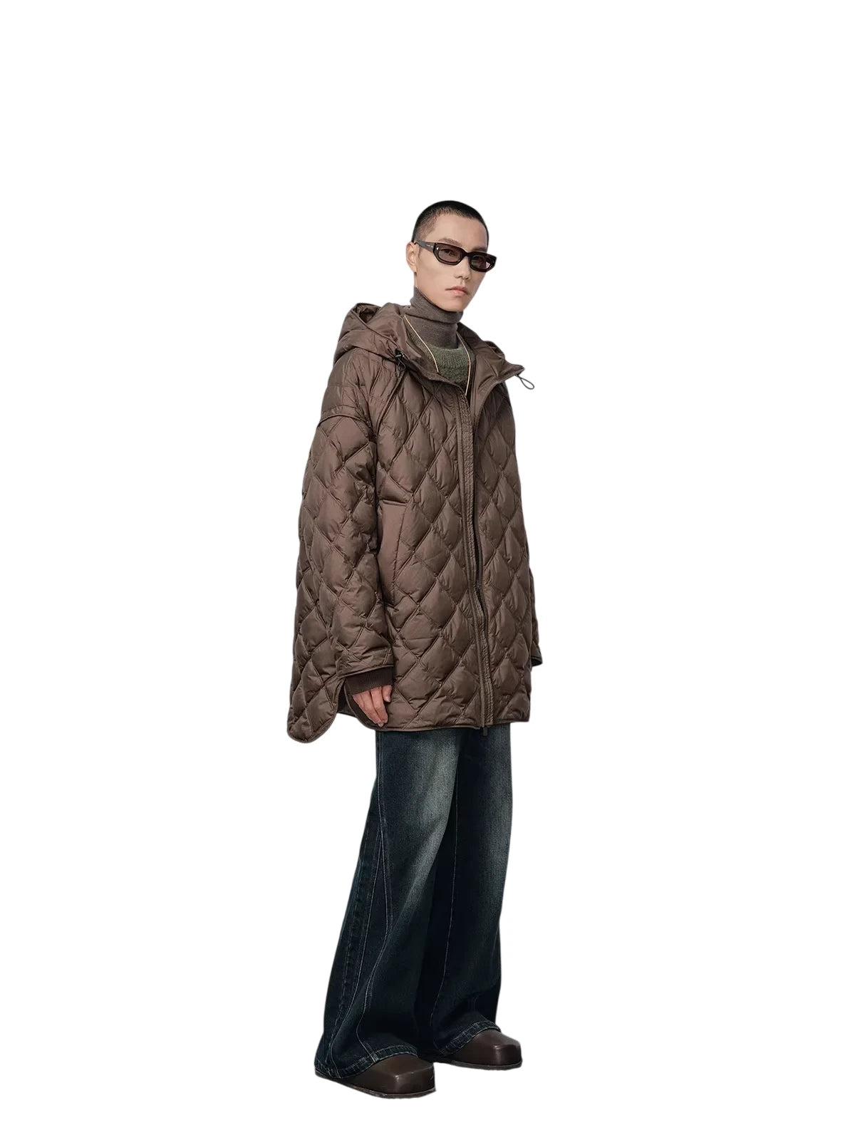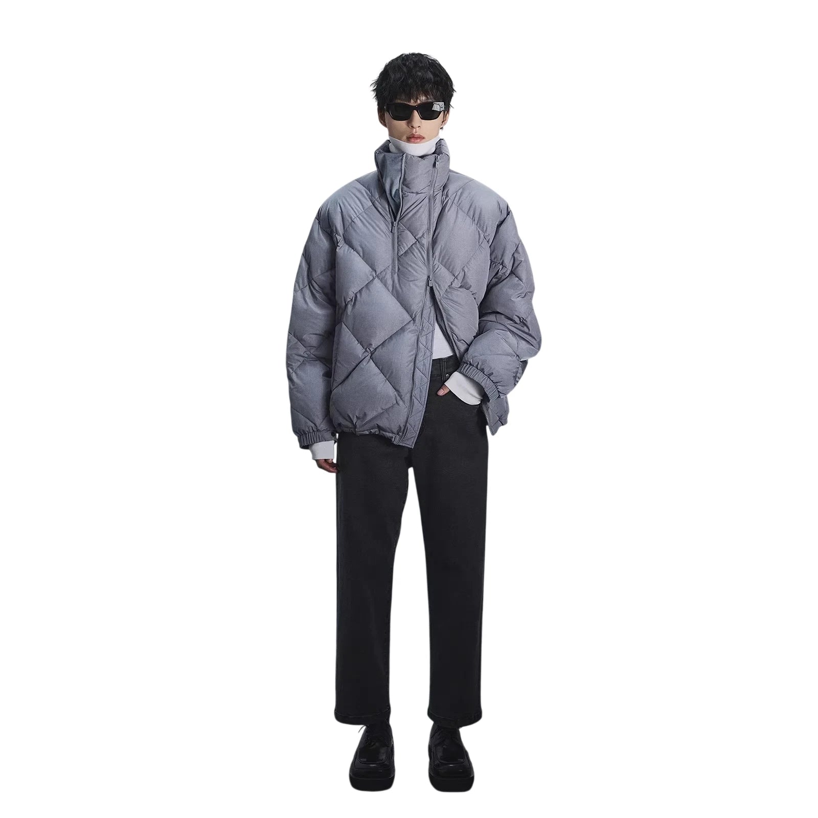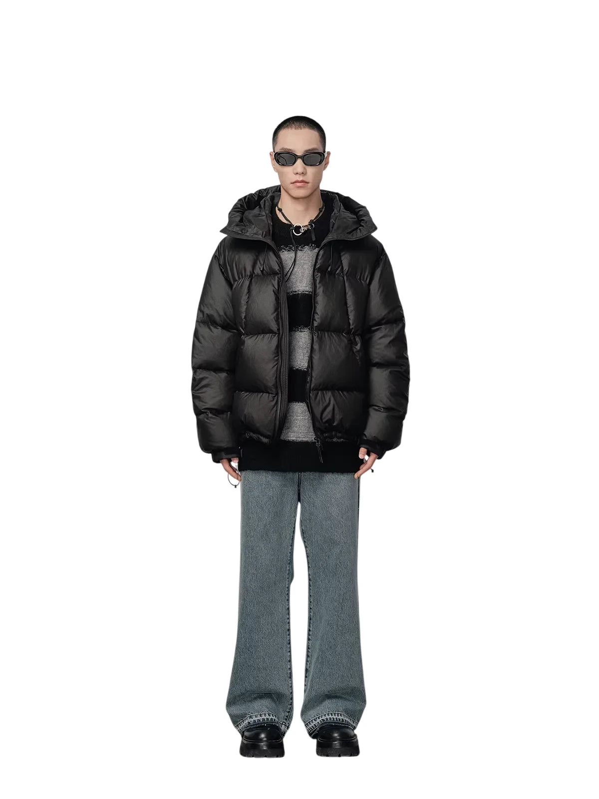 NANS Menswear Plaid High-Density Nylon Hooded Down Puffer Jacket