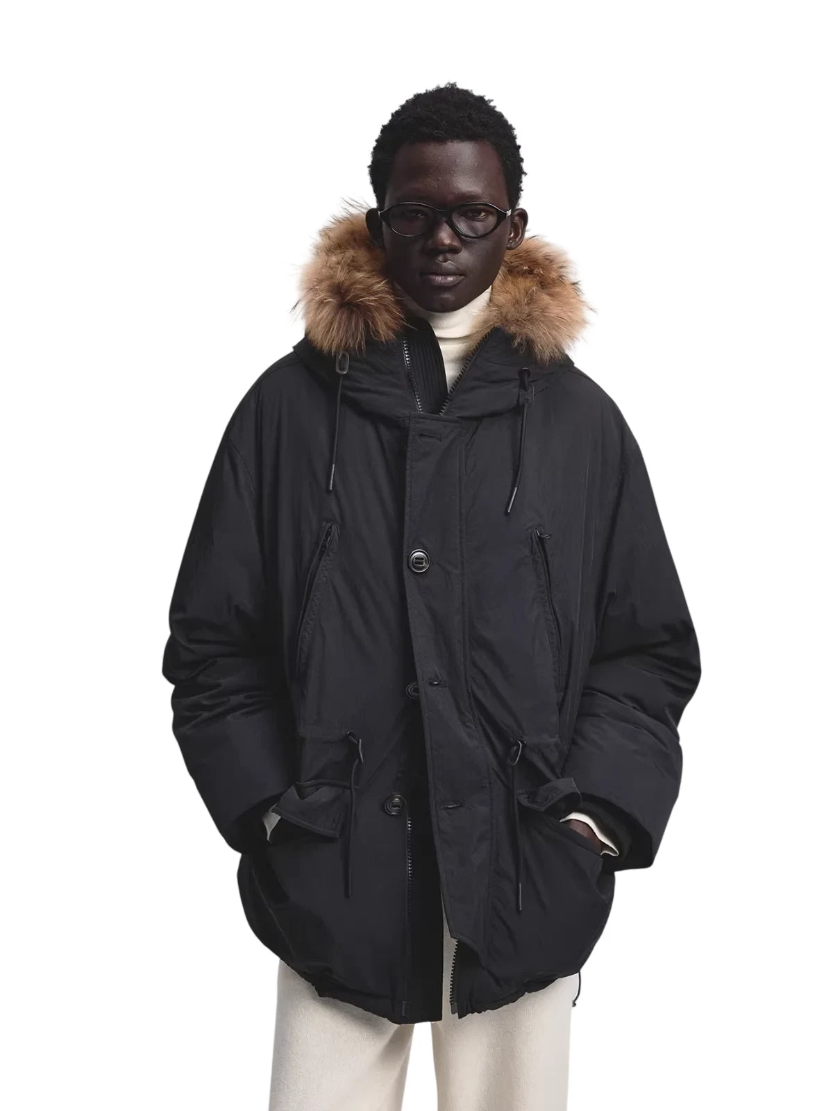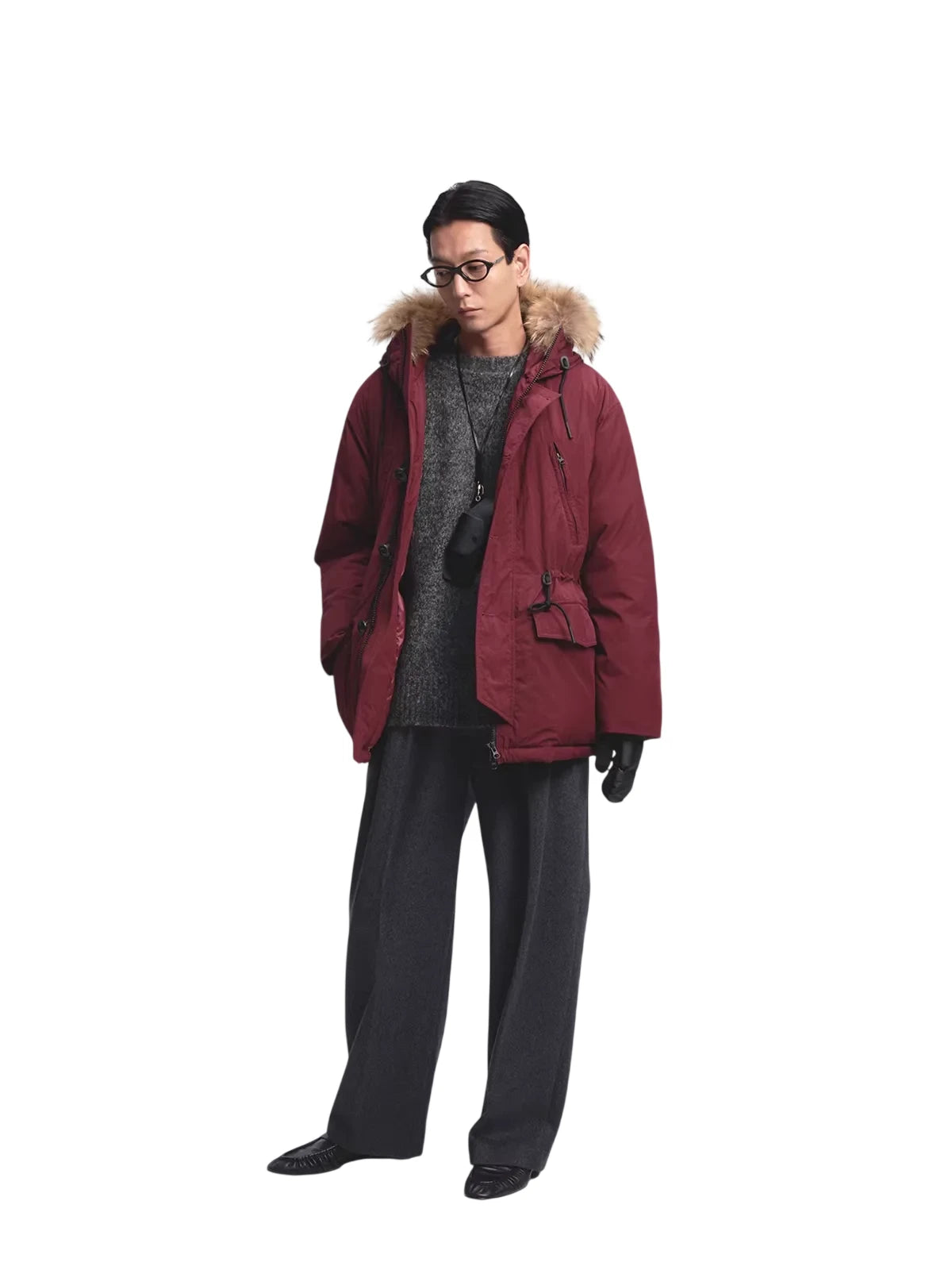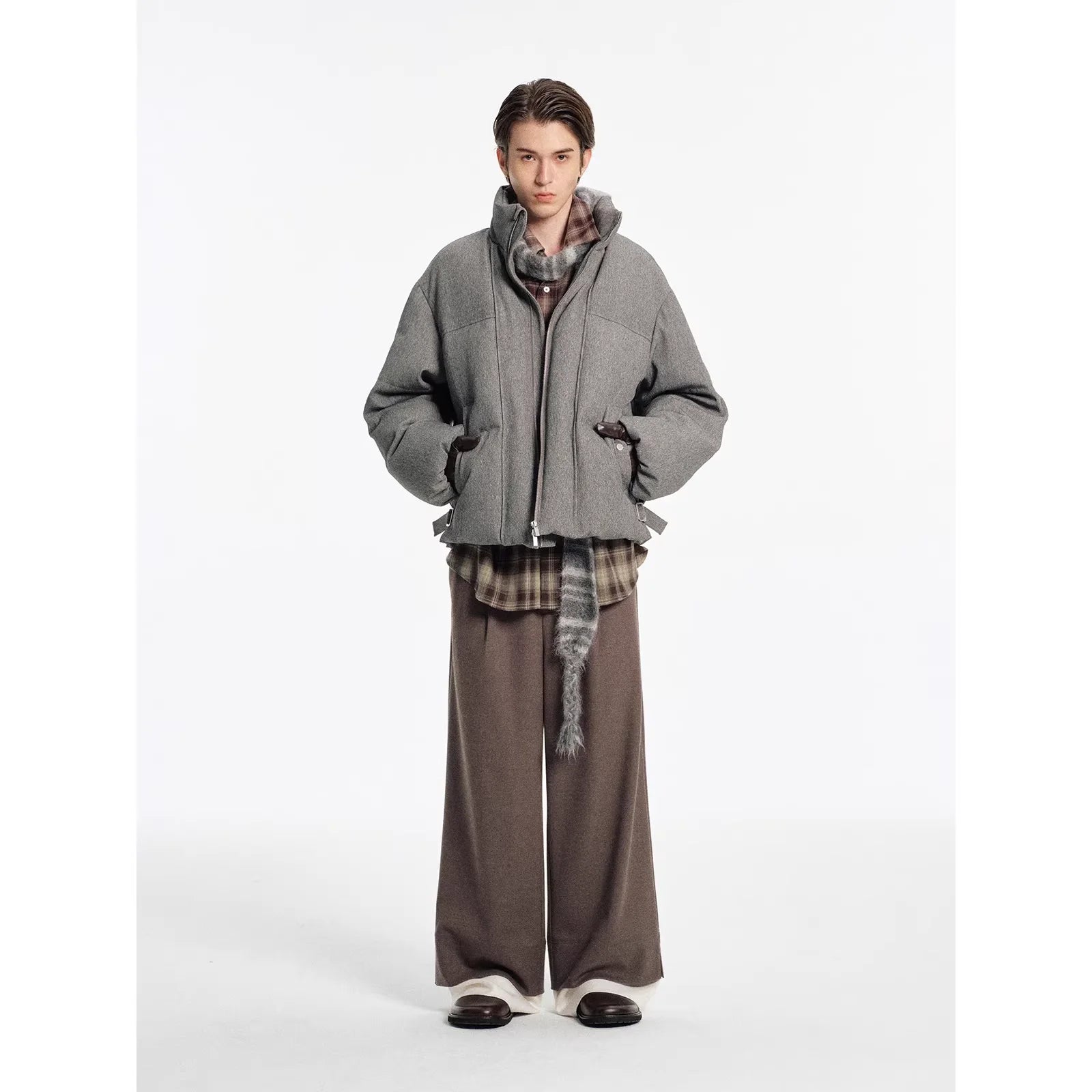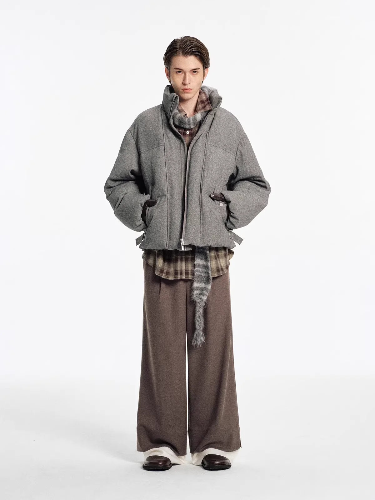 NANS Menswear Plaid High-Density Nylon Hooded Down Puffer Jacket