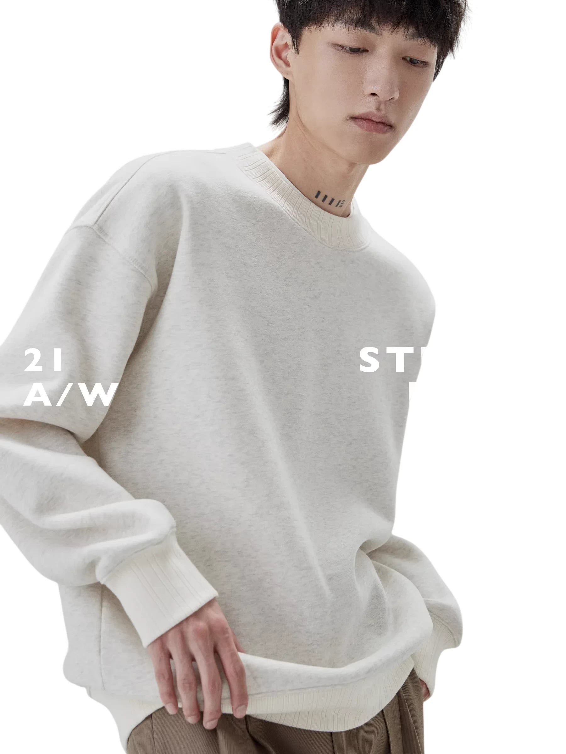 NANS Menswear Vintage Heavyweight Fleece-Lined Oversized Crewneck Sweatshirt