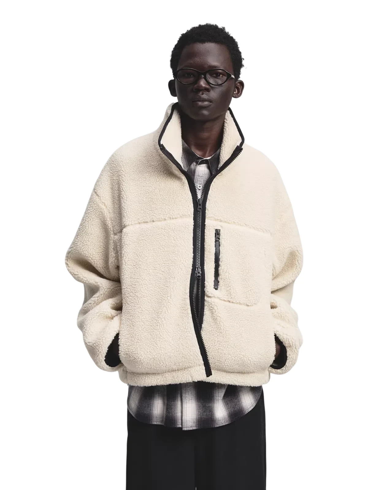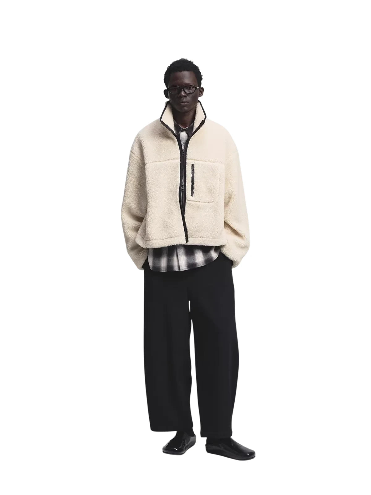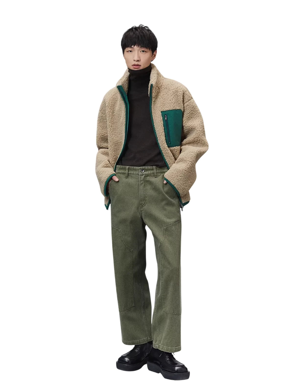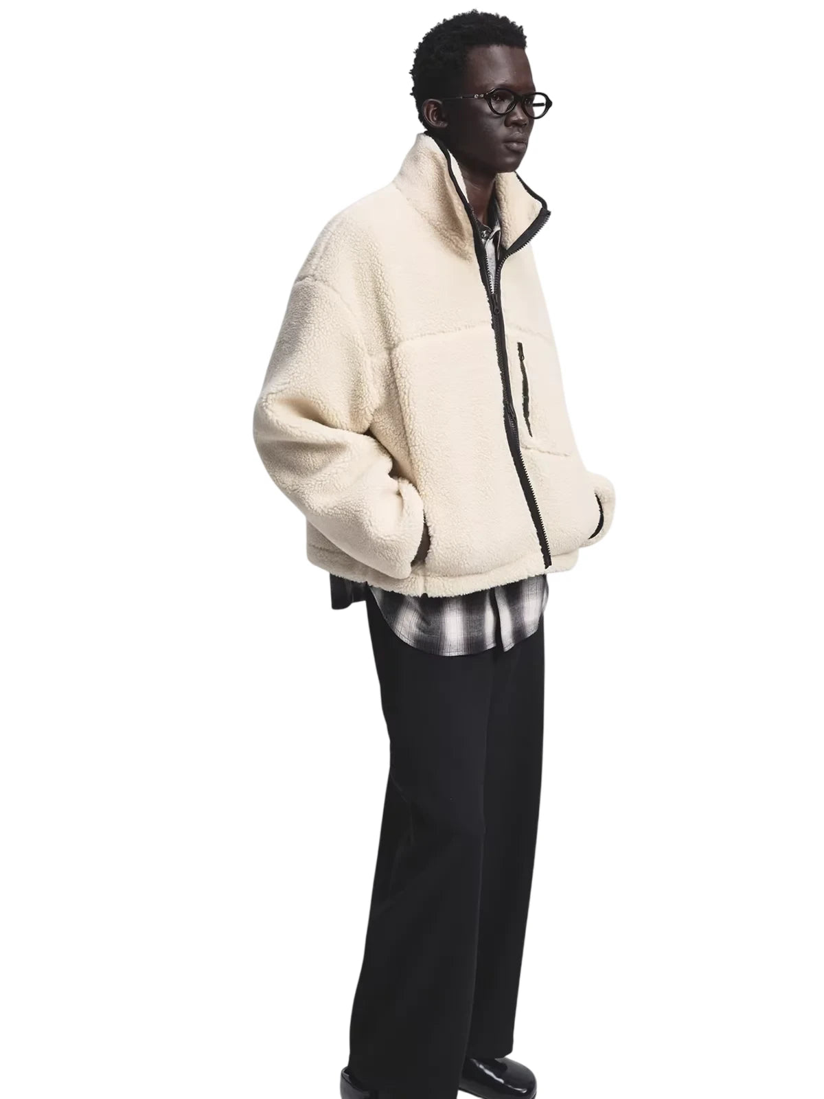 NANS Menswear Sherpa Fleece Contrast Patch Short Jacket