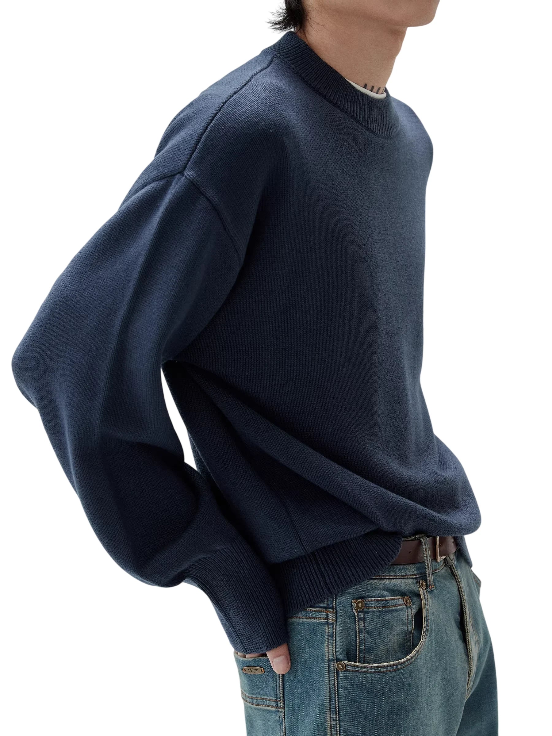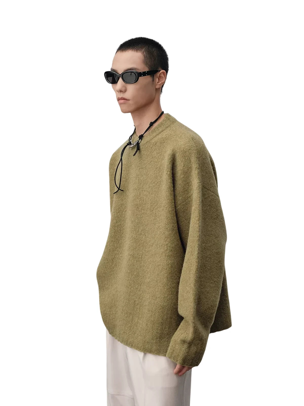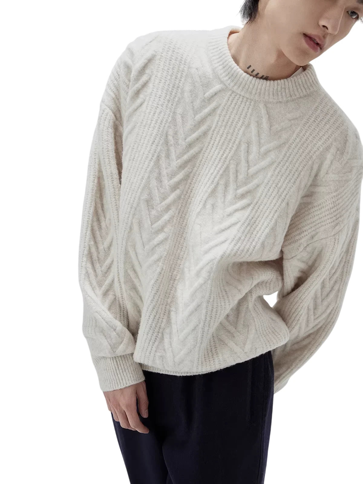 NANS Menswear Oversized Wool Blend Textured Crewneck Sweater