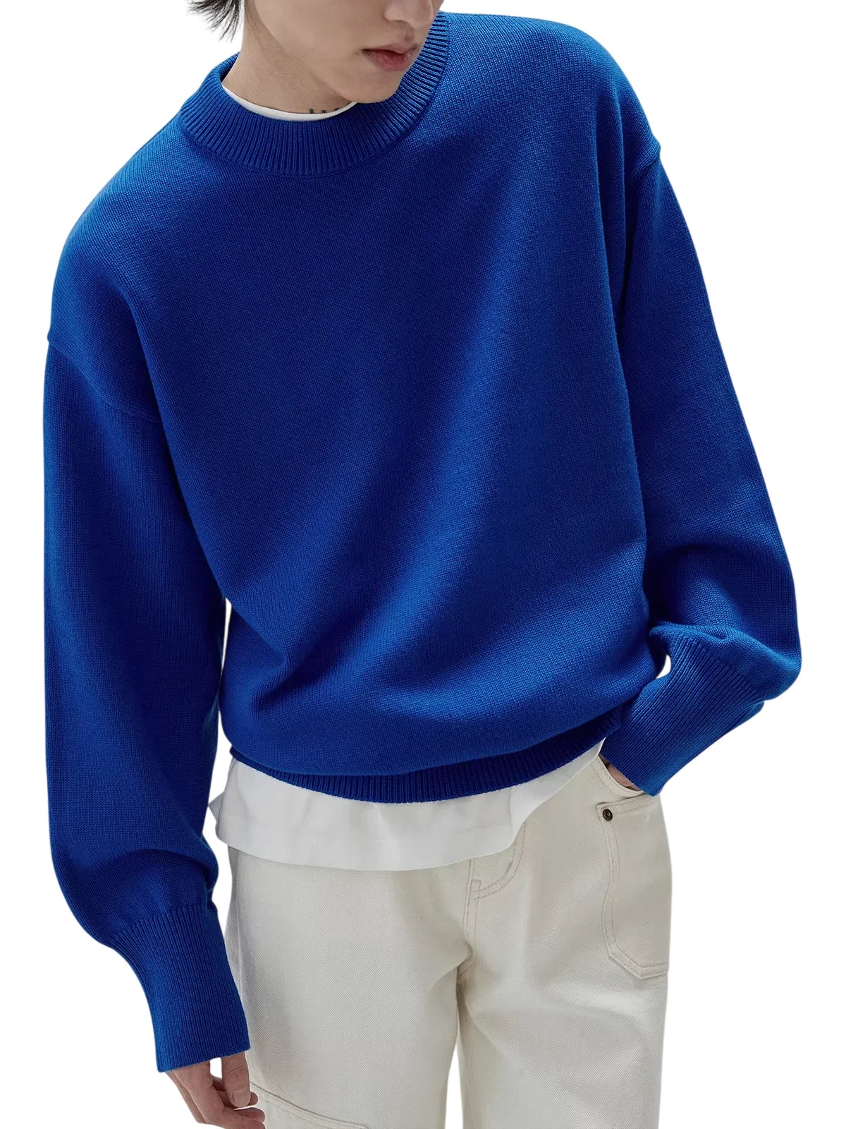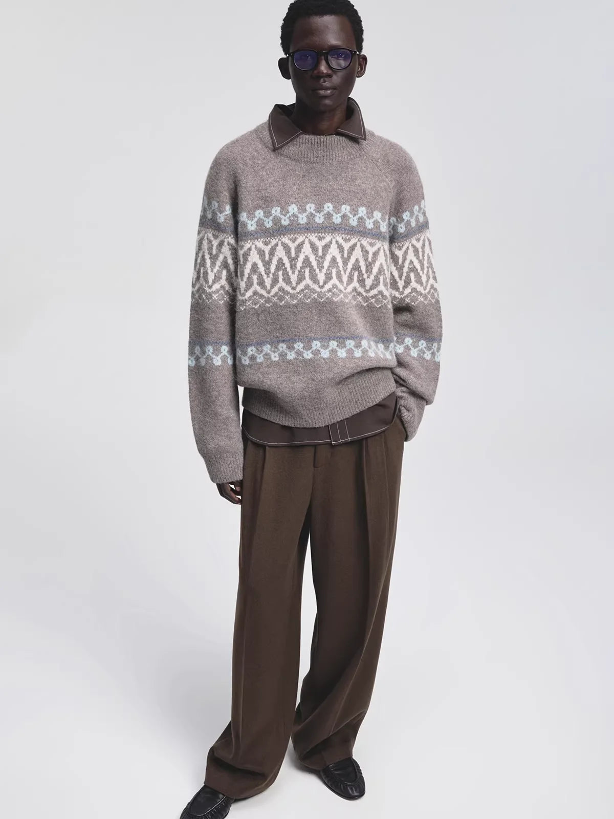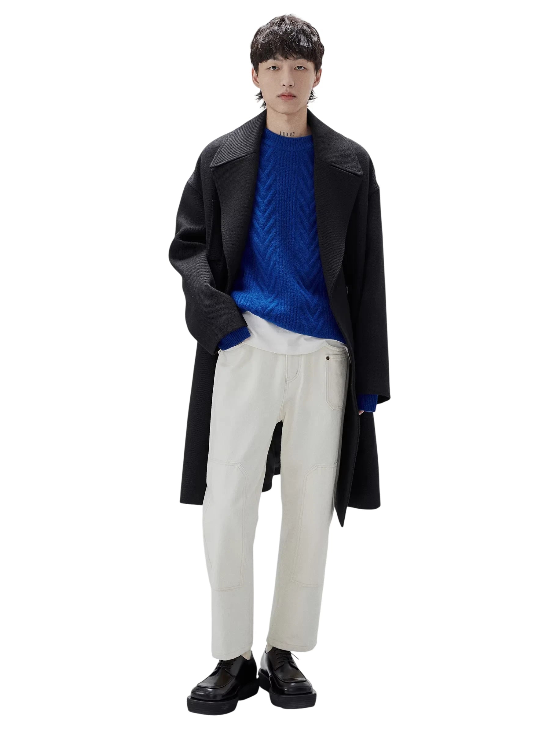 NANS Menswear Oversized Wool Blend Textured Crewneck Sweater