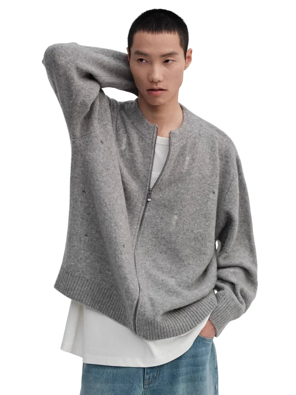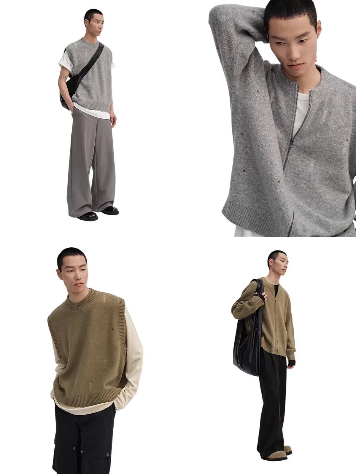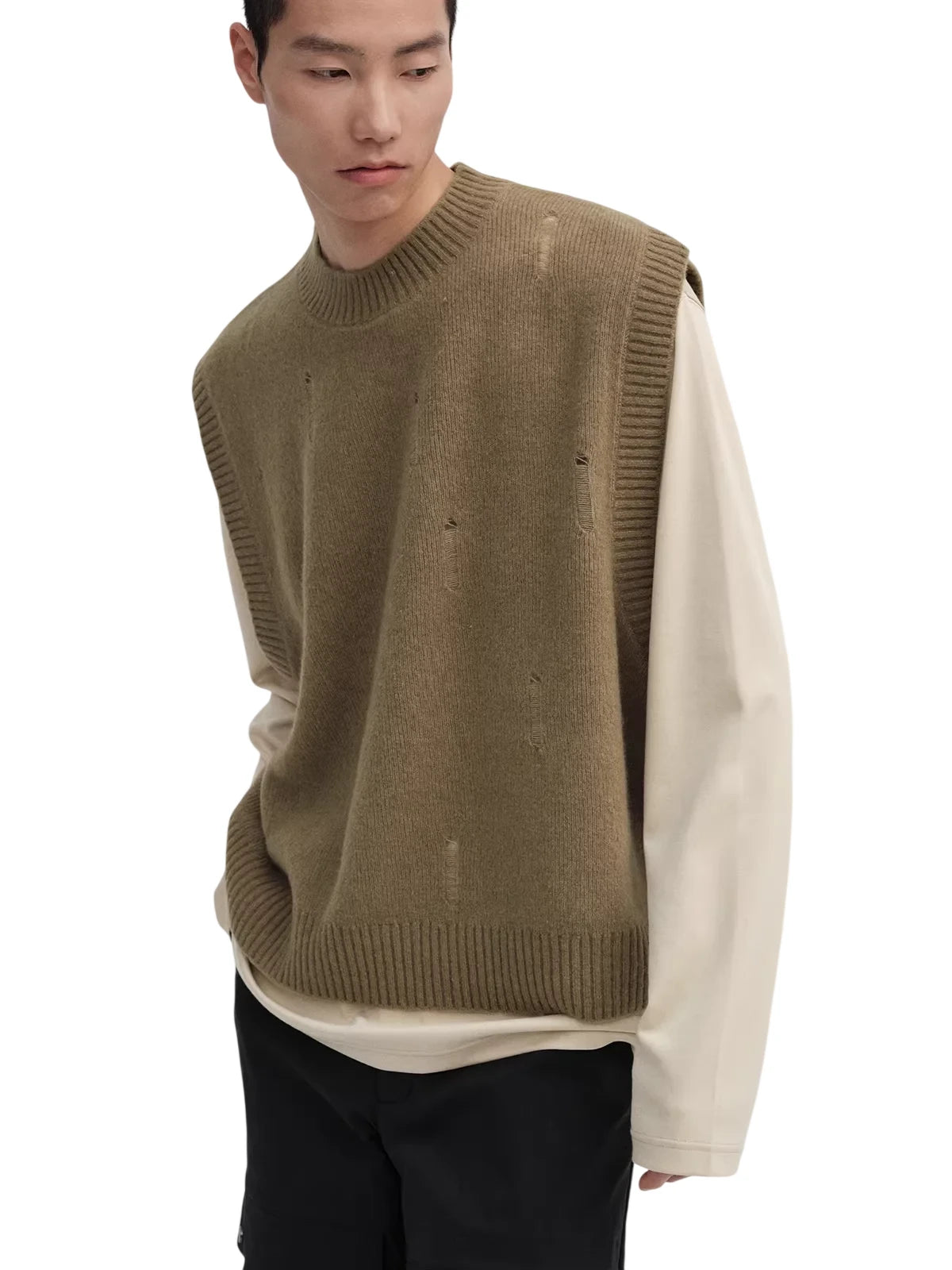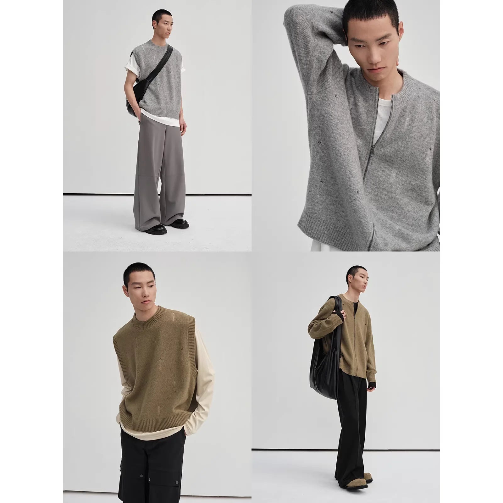 NANS Menswear Wool Blend Distressed Knit Cardigan and Vest