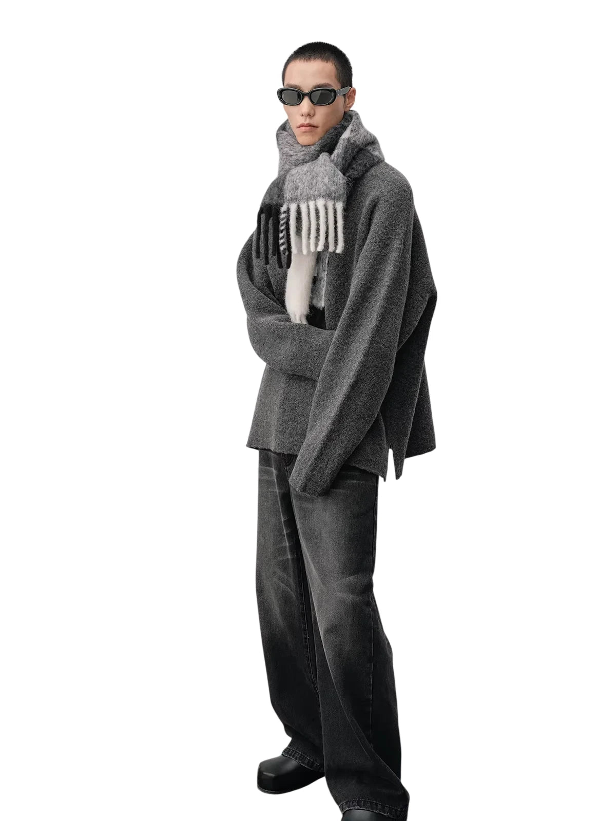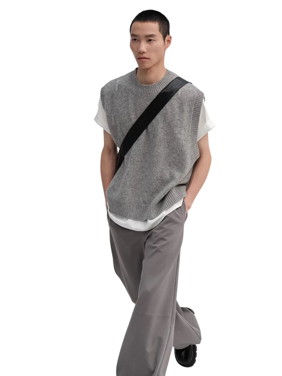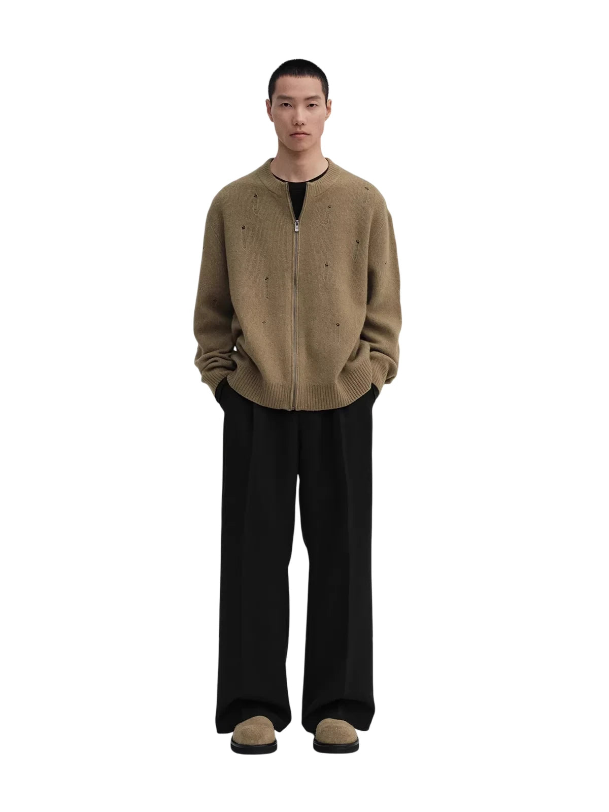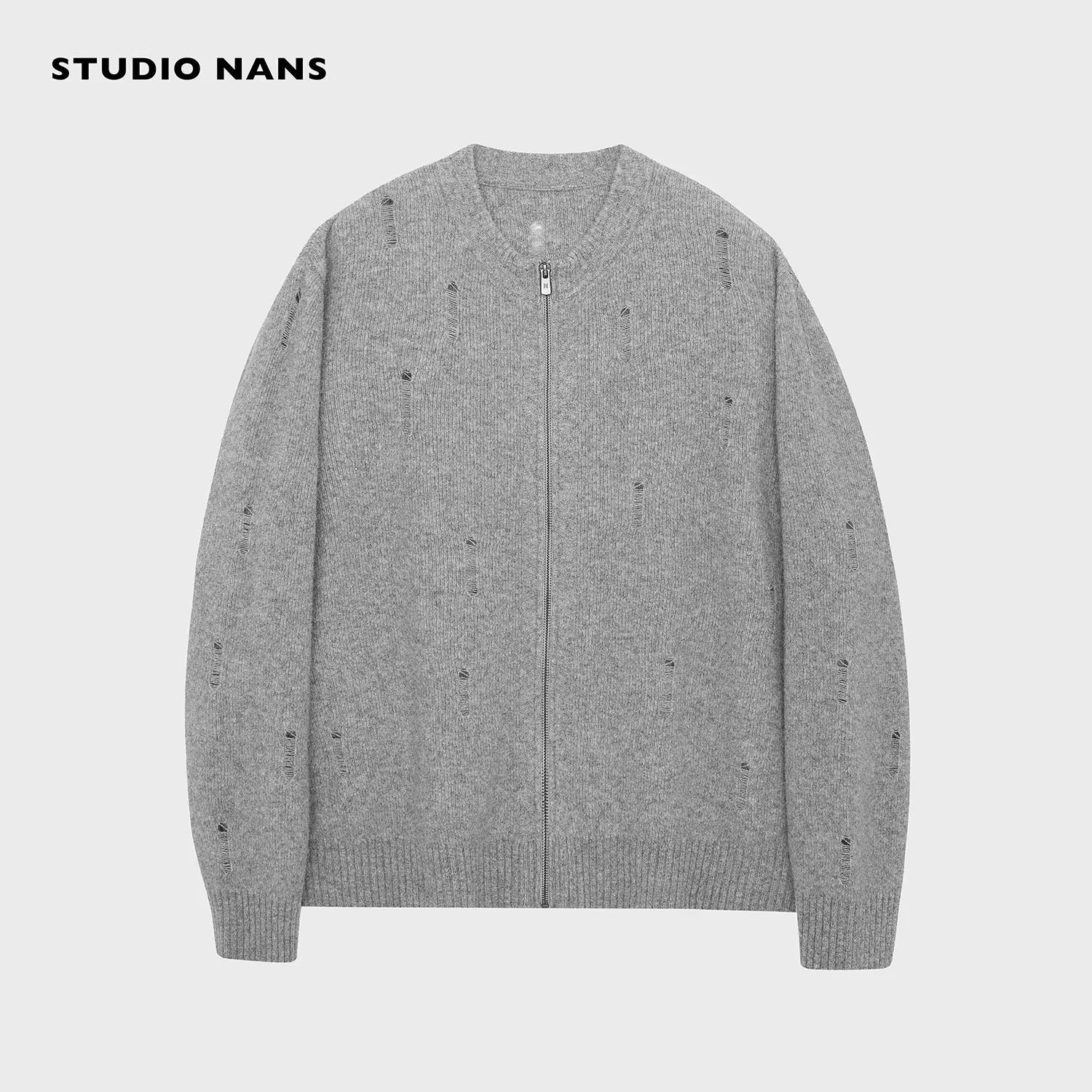 NANS Menswear Wool Blend Distressed Knit Cardigan and Vest