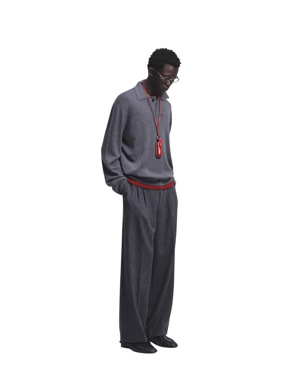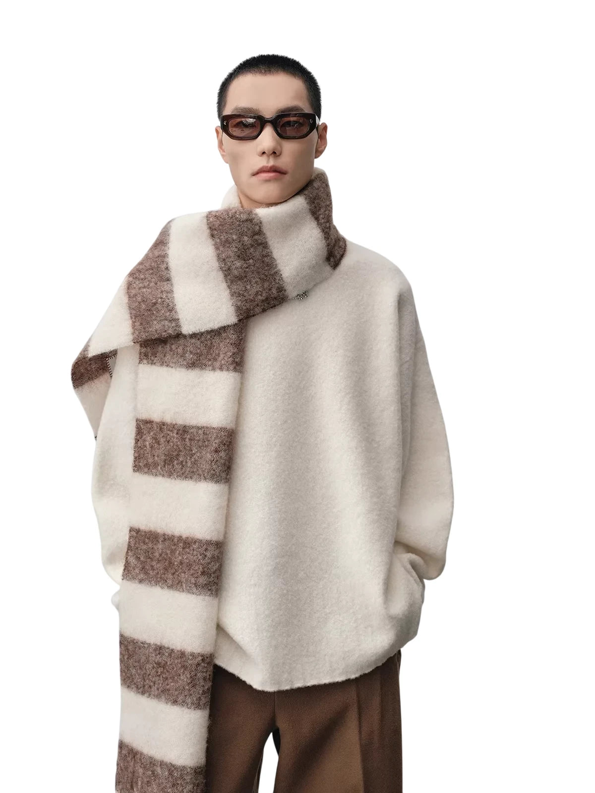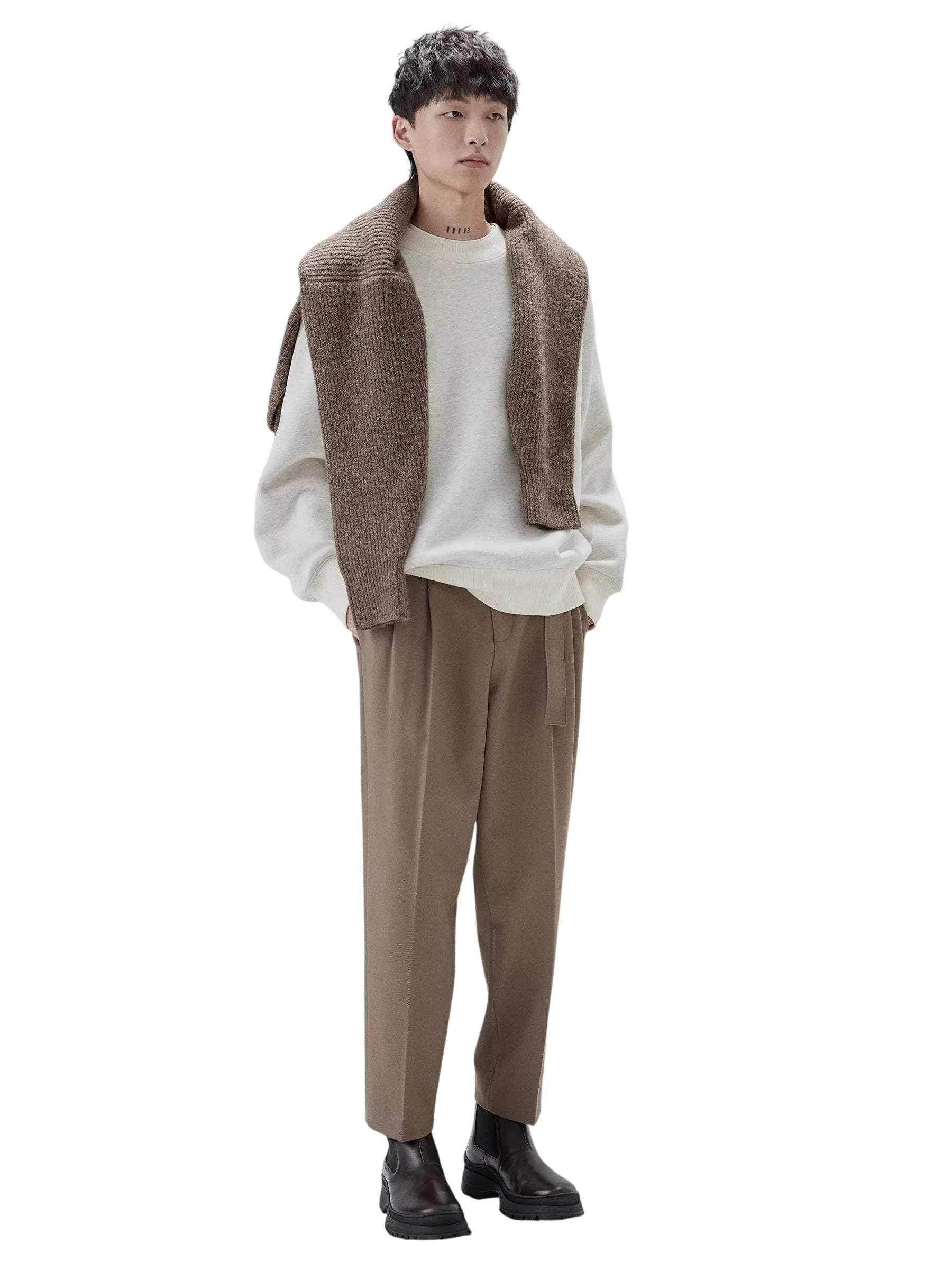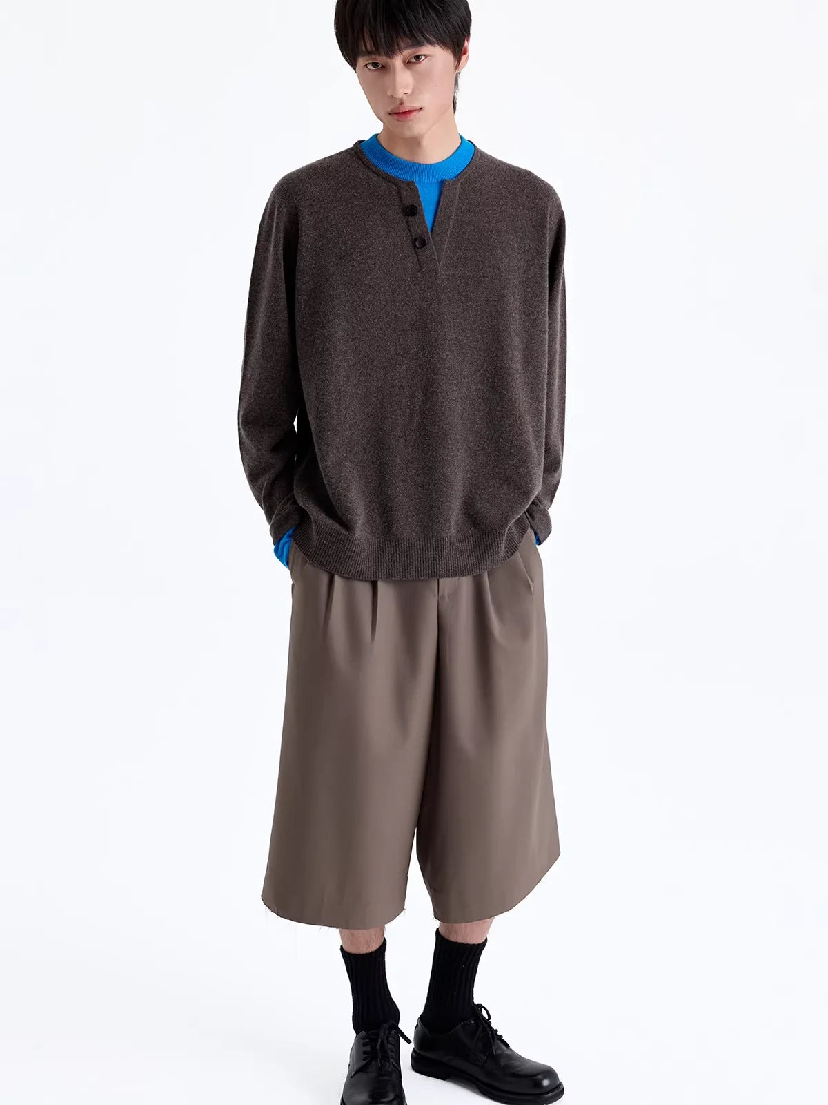 NANS Menswear Wool Cashmere Contrast Layered Collar Knit Sweater