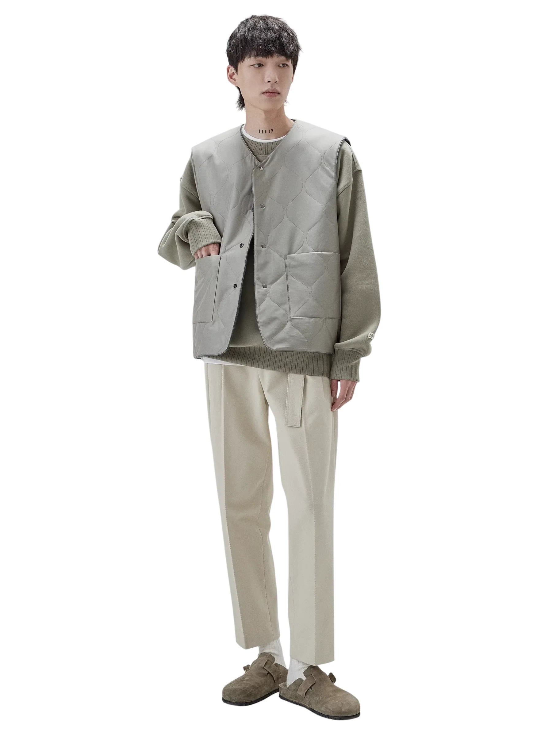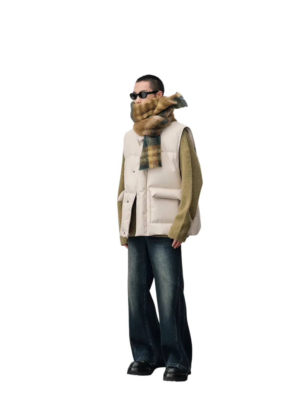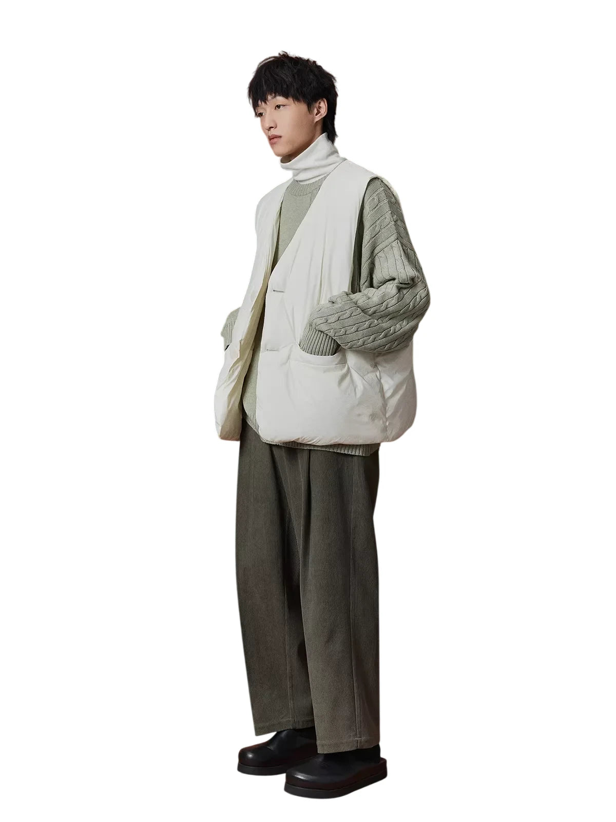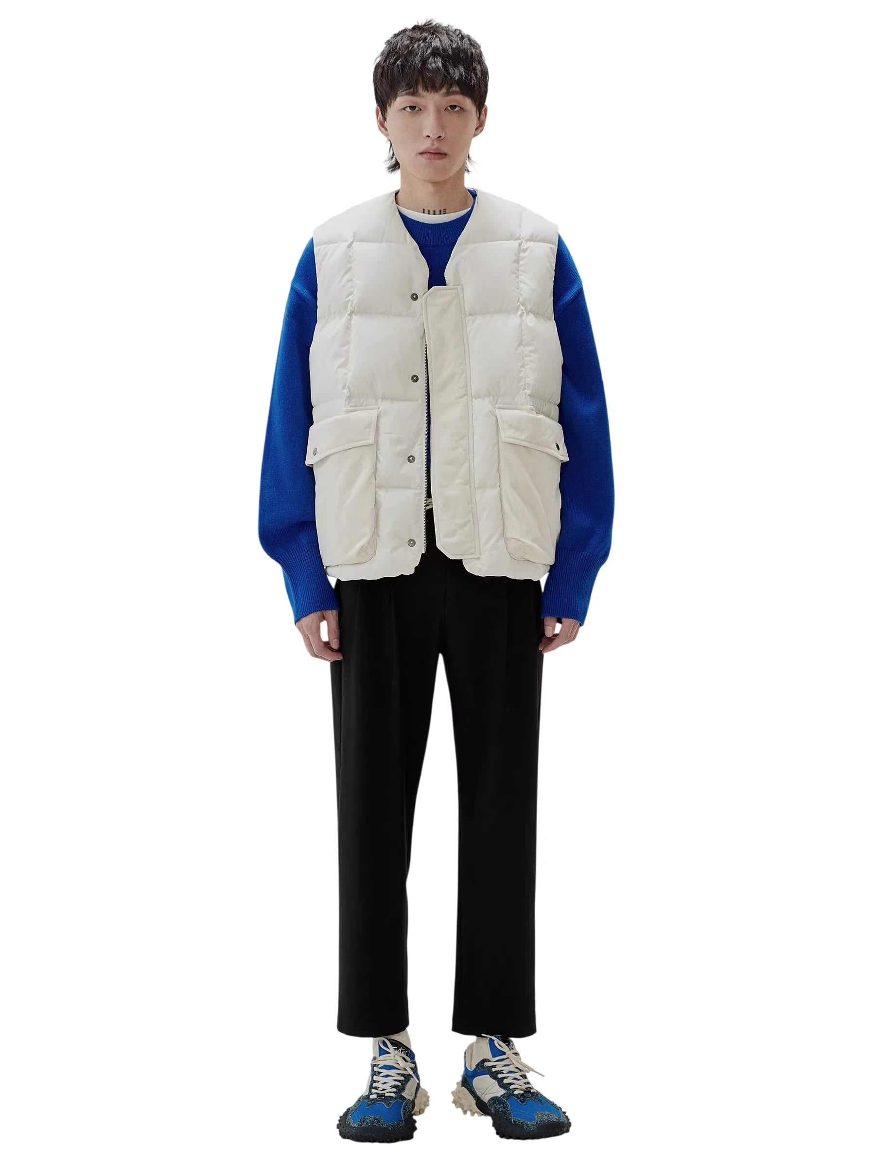 NANS Menswear Mens White Duck Down Crinkled Ribbed Short Puffer Jacket Vest