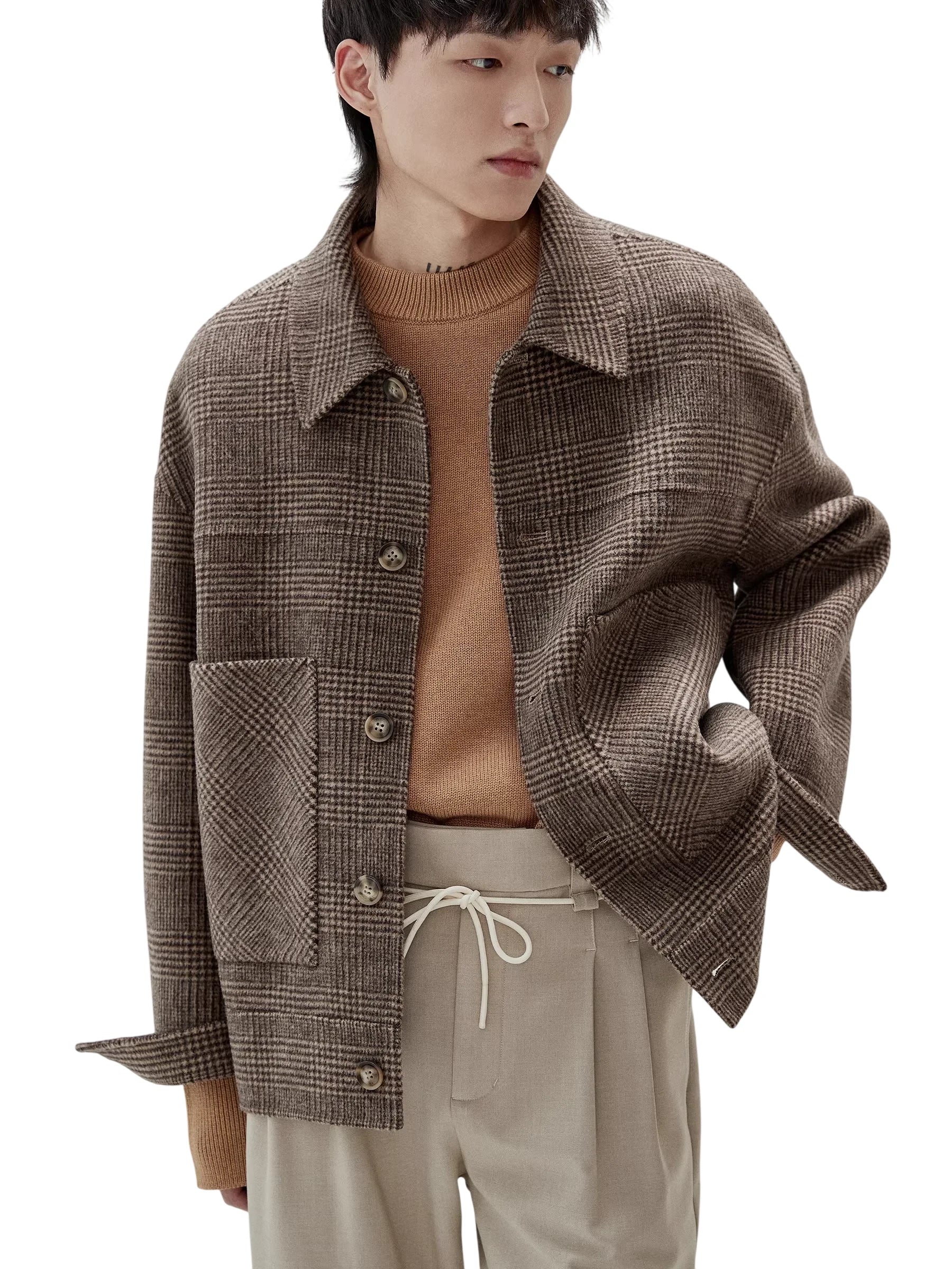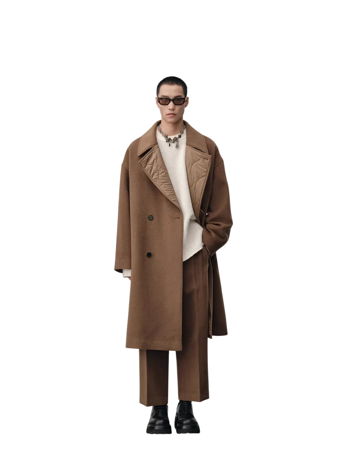 NANS Menswear Silk Camel Hair Double-Breasted Peak Lapel Overcoat