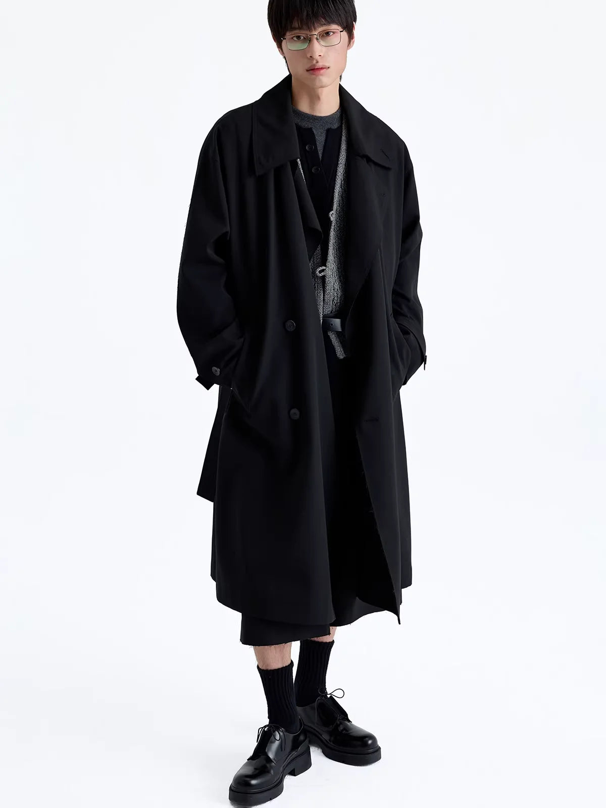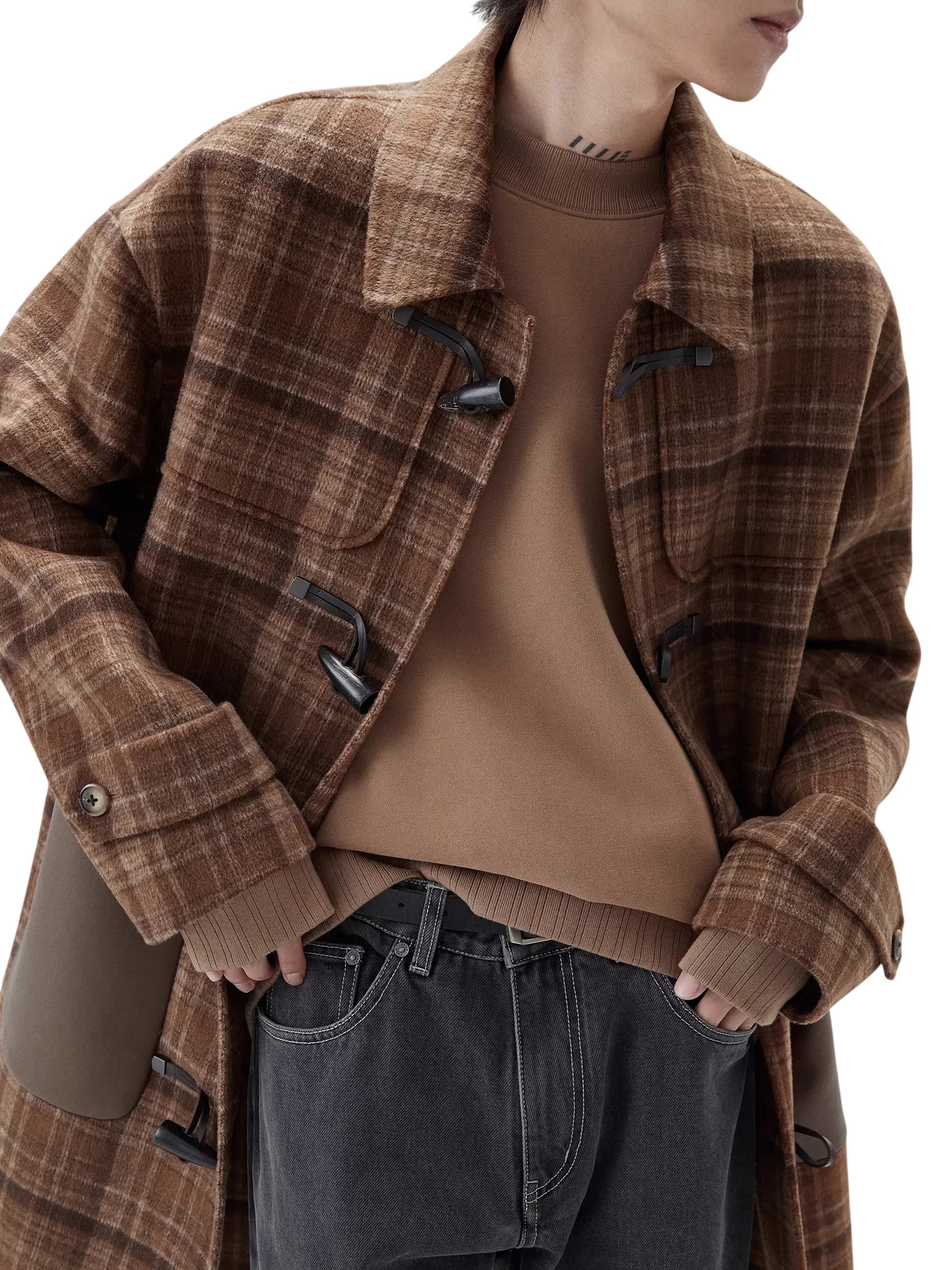 NANS Menswear Mixed Wool Double-Sided Balmacaan Coat with Buckle Placket