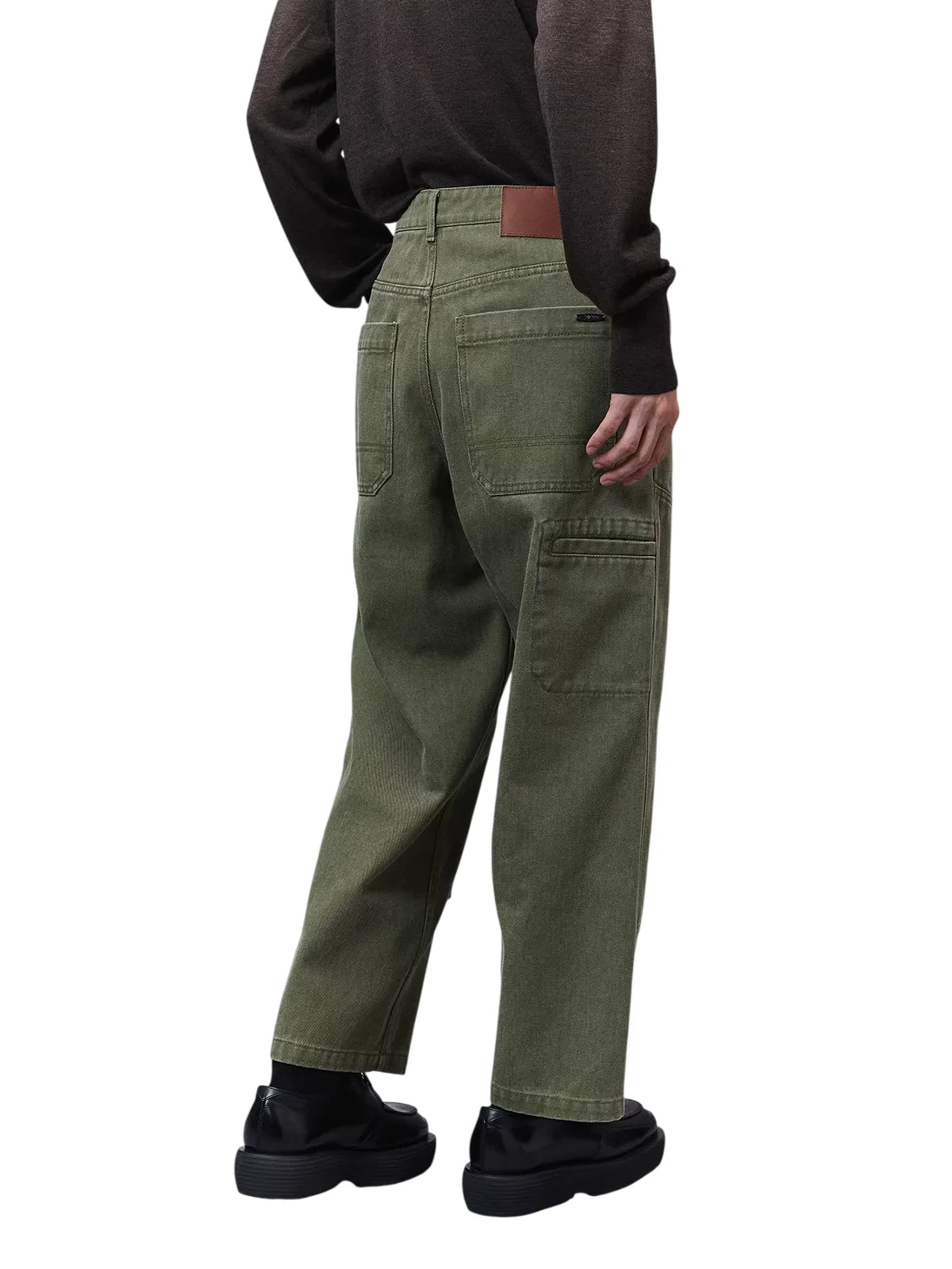 NANS Menswear Washed Cotton Piqué Cargo Trousers with Adjustable Waist