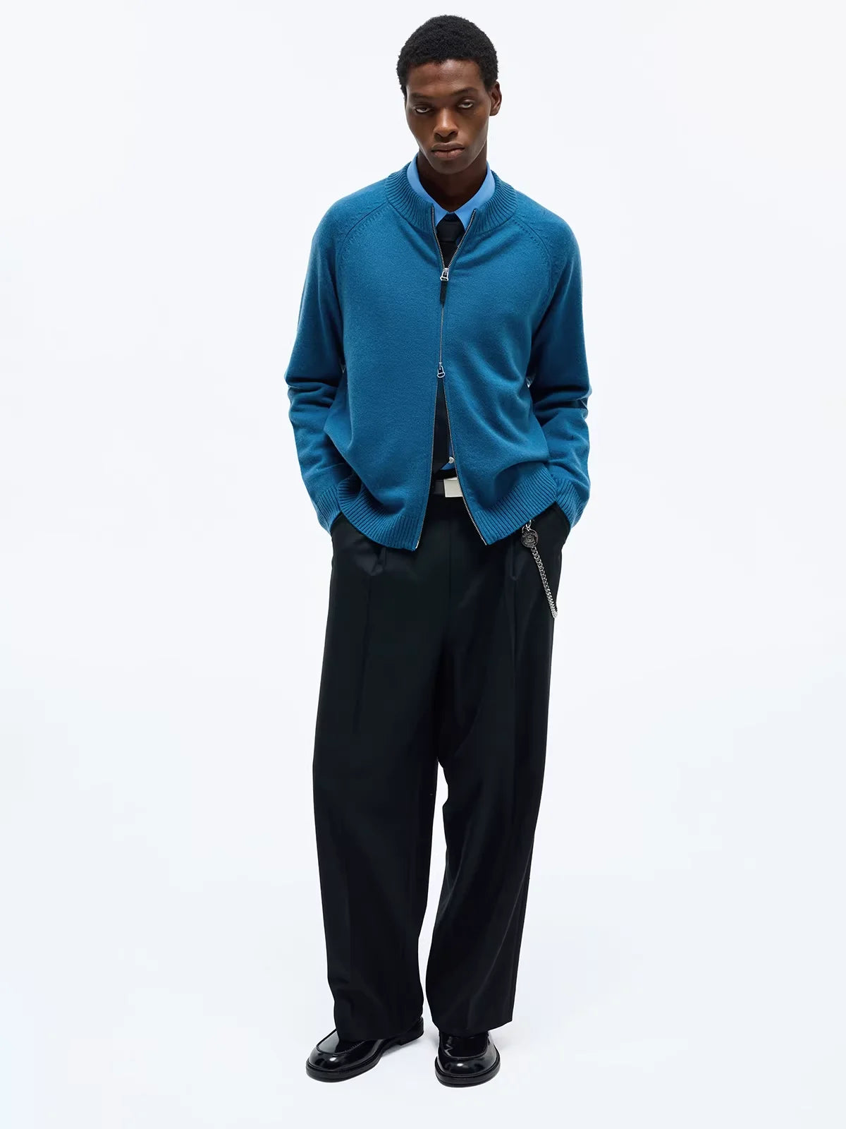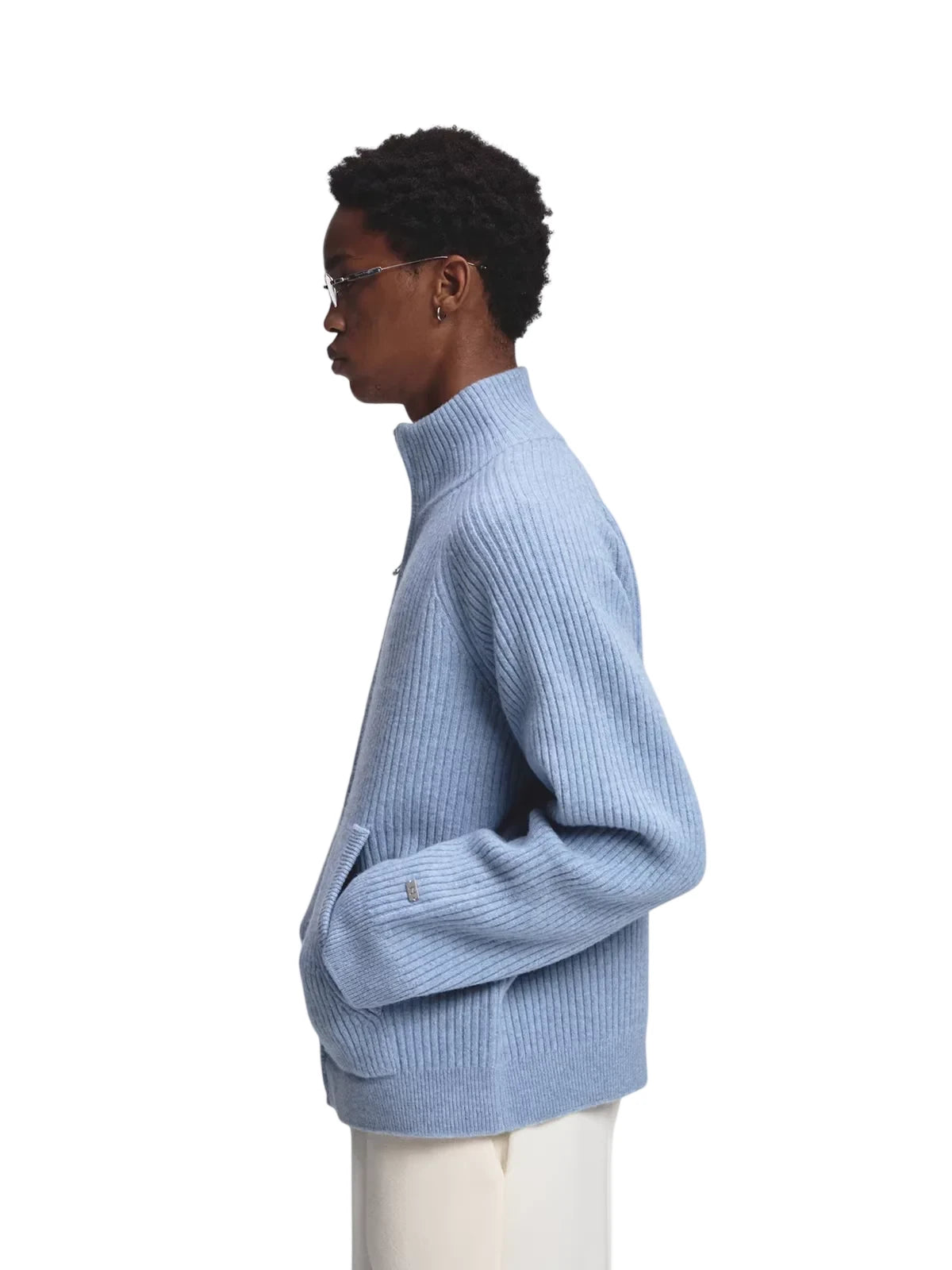 NANS Menswear Merino Wool Ribbed Turtleneck Zip Cardigan