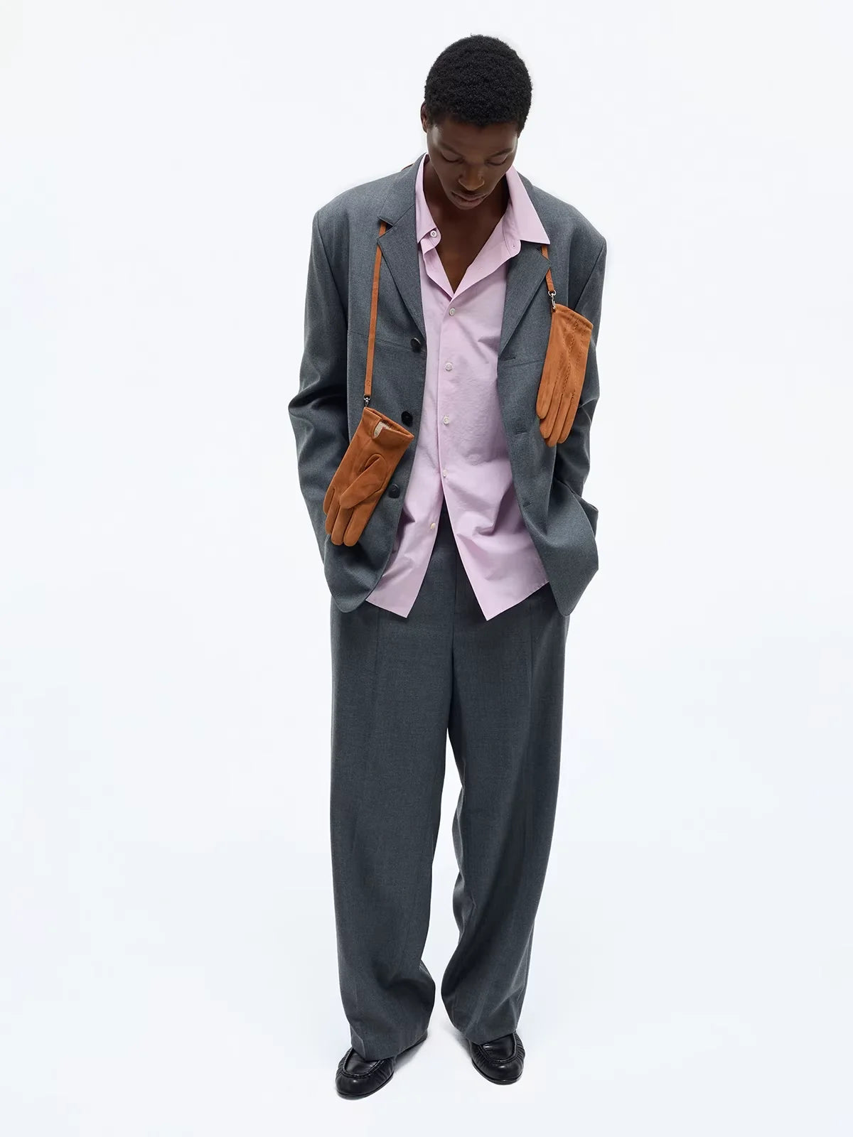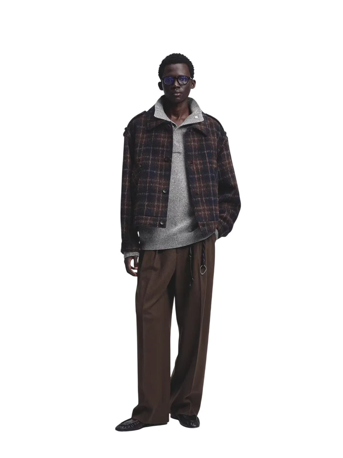 NANS Menswear Wool Blend Pleated Wide-Leg Suit Trousers