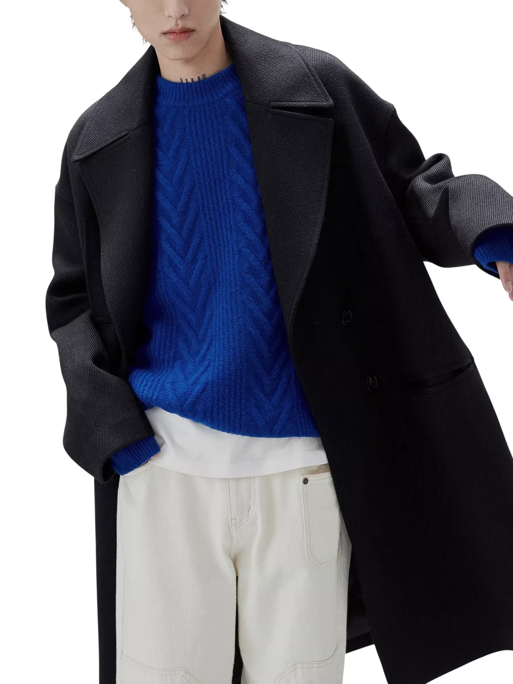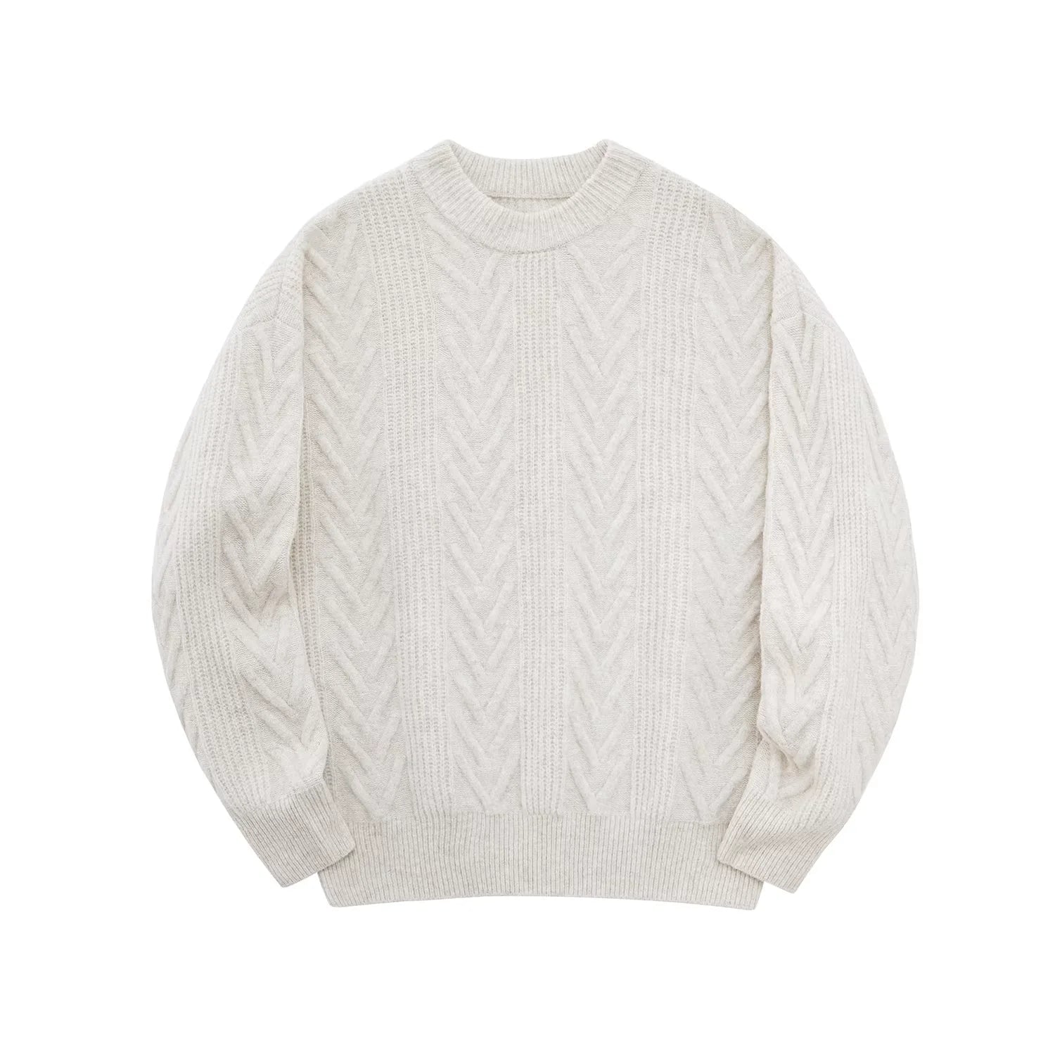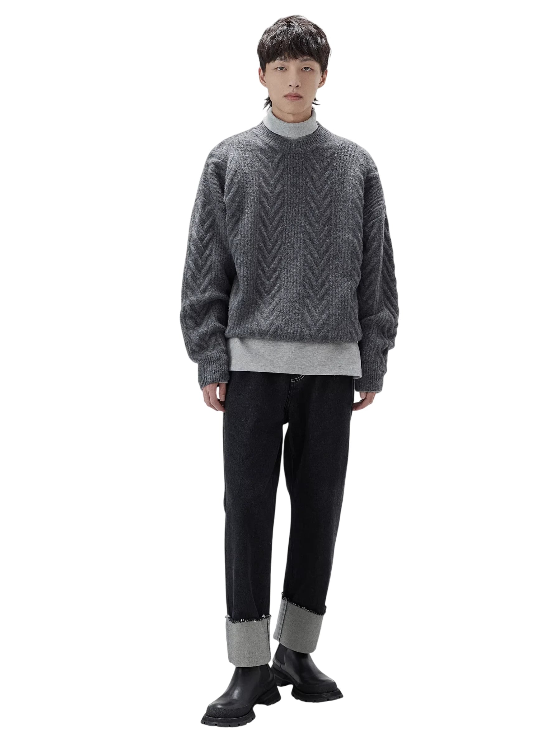 NANS Menswear Oversized Crew Neck Sweater with Cable and Plain Stitch Patchwork
